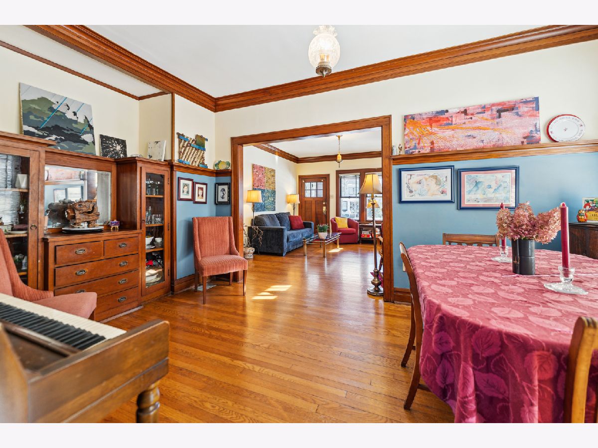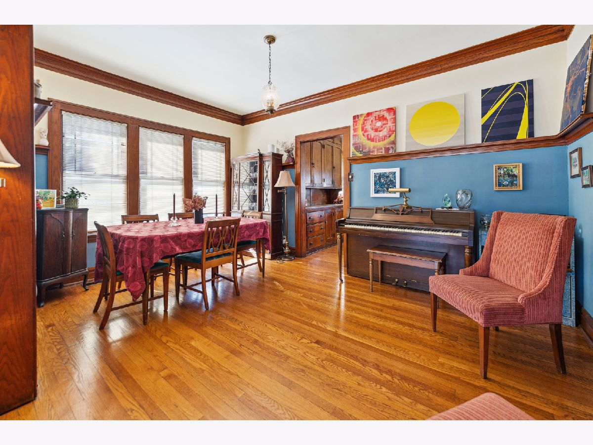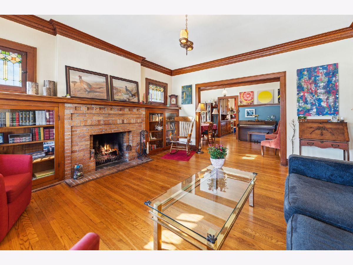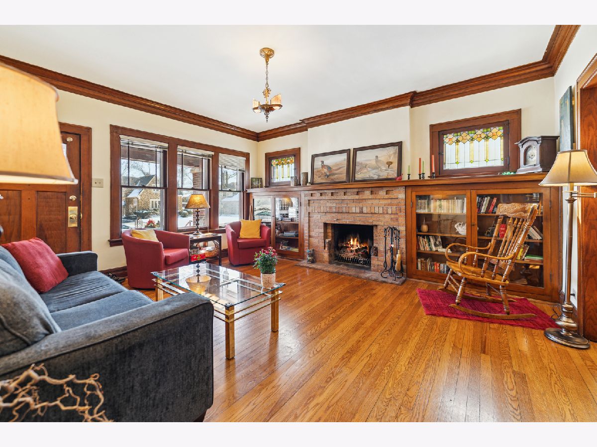 From the moment in walk in, you know this is home is the one! Home has amazing vintage charm galore. This four spacious bedrooms 2.5 baths has been well cared for, two bedrooms up/two on 1st level with den. Stunning hardwood floors through-out the home, elegant moldings, original oak trim around windows, doors and entry ways. Living room has brick gas fireplace with built-in oak book cases on both sides and stain glass windows. Formal dining room has built-in cabinet also. Kitchen with plenty of cabinet space and stainless steel appliances. Second floor has walk-in closets and second full bathroom with shower. So much closet space. Full basement with tons of storage areas and half bath. Overhead sewers. Spacious back yard with paver bricks. two car garage. Great for entertaining. This home is in a ideal location, near parks, steps to City of Elmhurst, Berens park. This lovely home is situated on a 75 x 170 lot size.