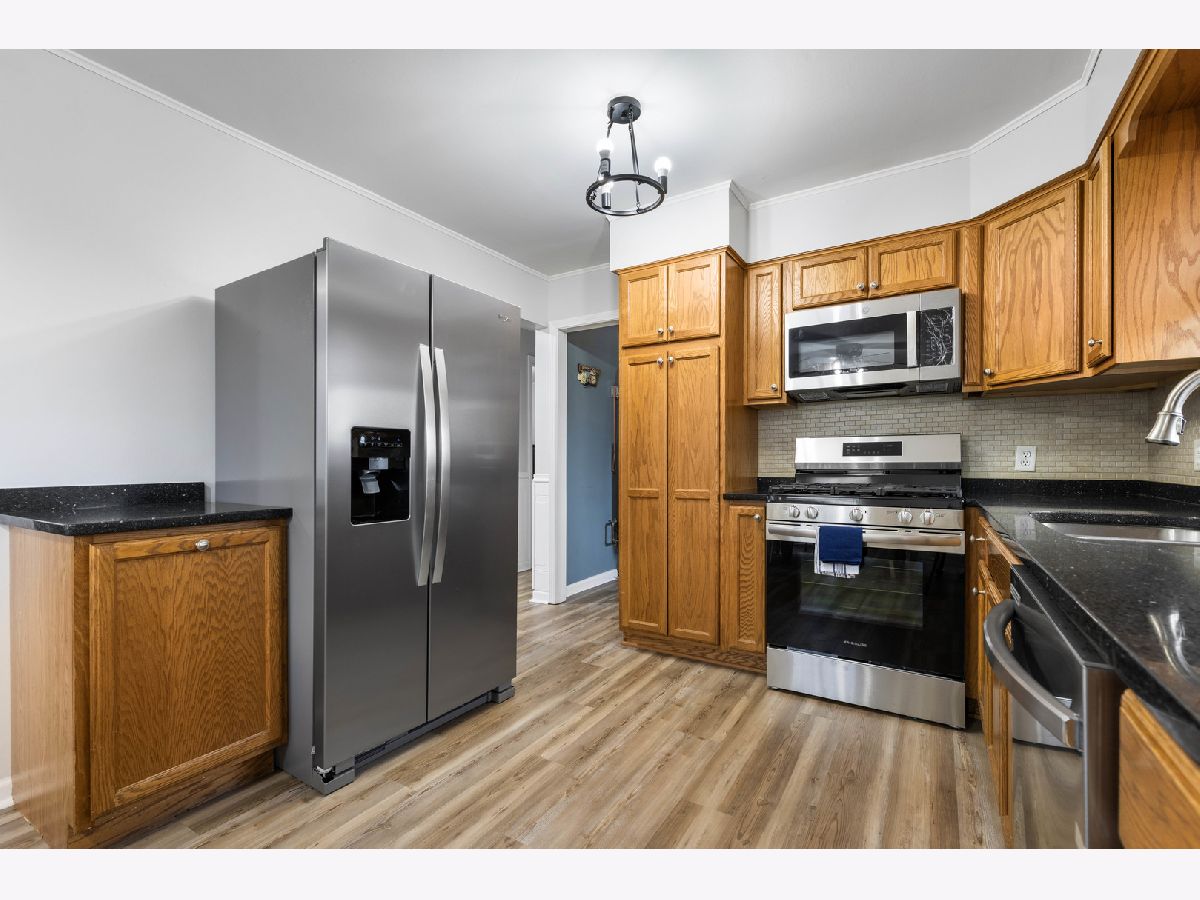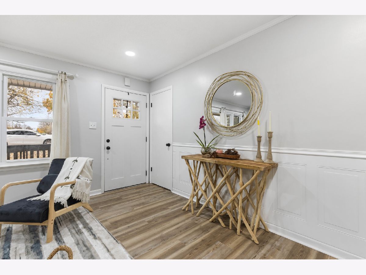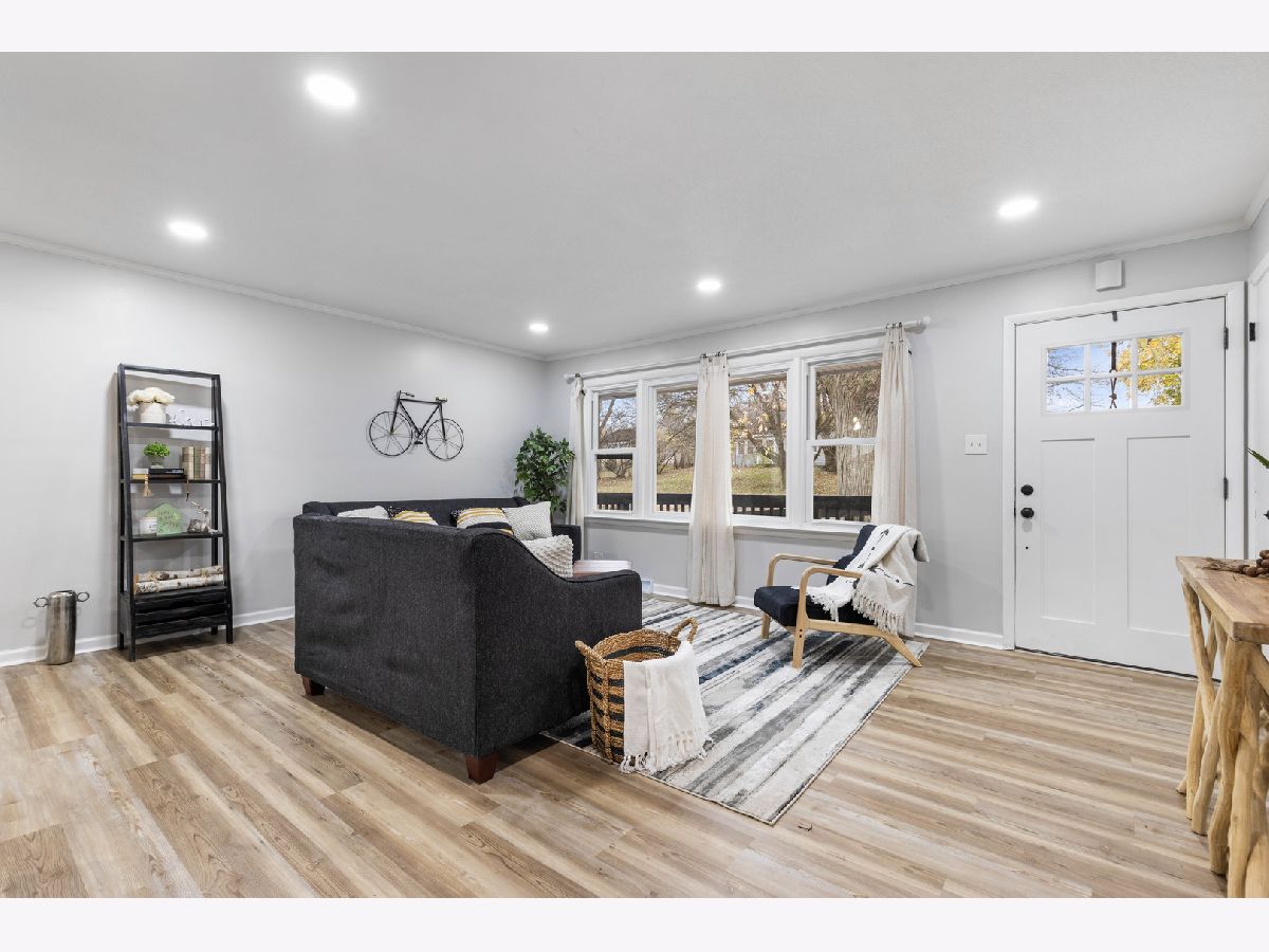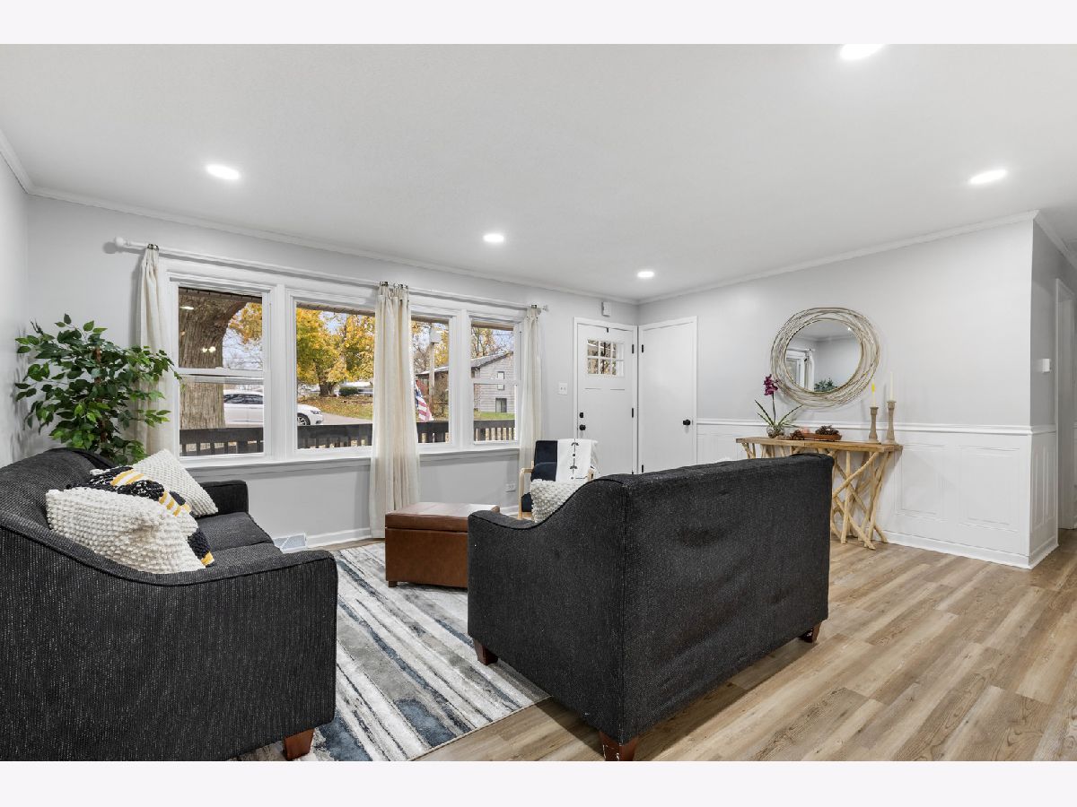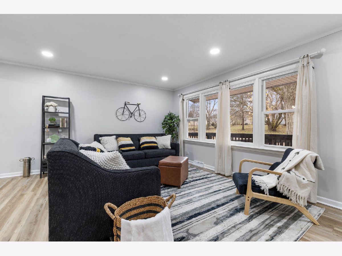 Beautifully updated ranch home in a great area close to shopping and easy access to highway. Spacious kitchen with real wood cabinetry, quartz countertops and new stainless steel appliances that stay. Freshly painted with new front door, new light fixtures, new waterproof vinyl flooring and new carpet throughout entire home. Enjoy the peace of no backyard neighbors with yard backing into forest preserve (yard extends back beyond the chain link fence). New ac & furnace 2018. Almost all of the windows were replaced in 2015. All Rm measurements are estimates. Broker owned