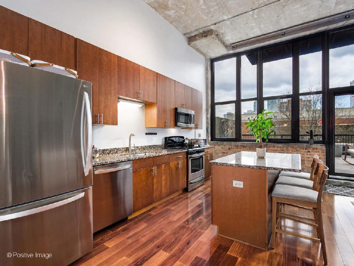 Get ready for true indoor-outdoor living in this move-in ready concrete loft with HUGE private terrace! This unbeatable outdoor space features plenty of room for multiple seating and lounge areas, plus protected views of the historic Wheeler Mansion. Accessible via a full wall of windows and doors in the living area, you cannot beat this combination of size and accessibility! Waste no time with repairs or upgrades - drop your bags and start enjoying Chicago summer on the massive terrace. Inside find 14-foot ceilings, huge windows and hardwood floors. The showstopper eat-in kitchen, which overlooks the spacious living area truly has it all with bar seating for 3, stainless steel appliances and plentiful cabinet storage. In the primary bedroom find room for a king bed, night stands and work from home setup. Residents of Chess 320 Lofts enjoy amenities including elevator access, exercise studio, sun deck, package room and bike storage. Incredible South Loop location in the heart of it across from Prairie District Park/dog park, and close to Lake Michigan, Soldier Field, McCormick Place, Museum Park and Northerly Island, plus easy access to Mariano's, Green Line, I-90/94, I-55 and Lake Shore Drive. 1 garage parking space available for an additional $35K.