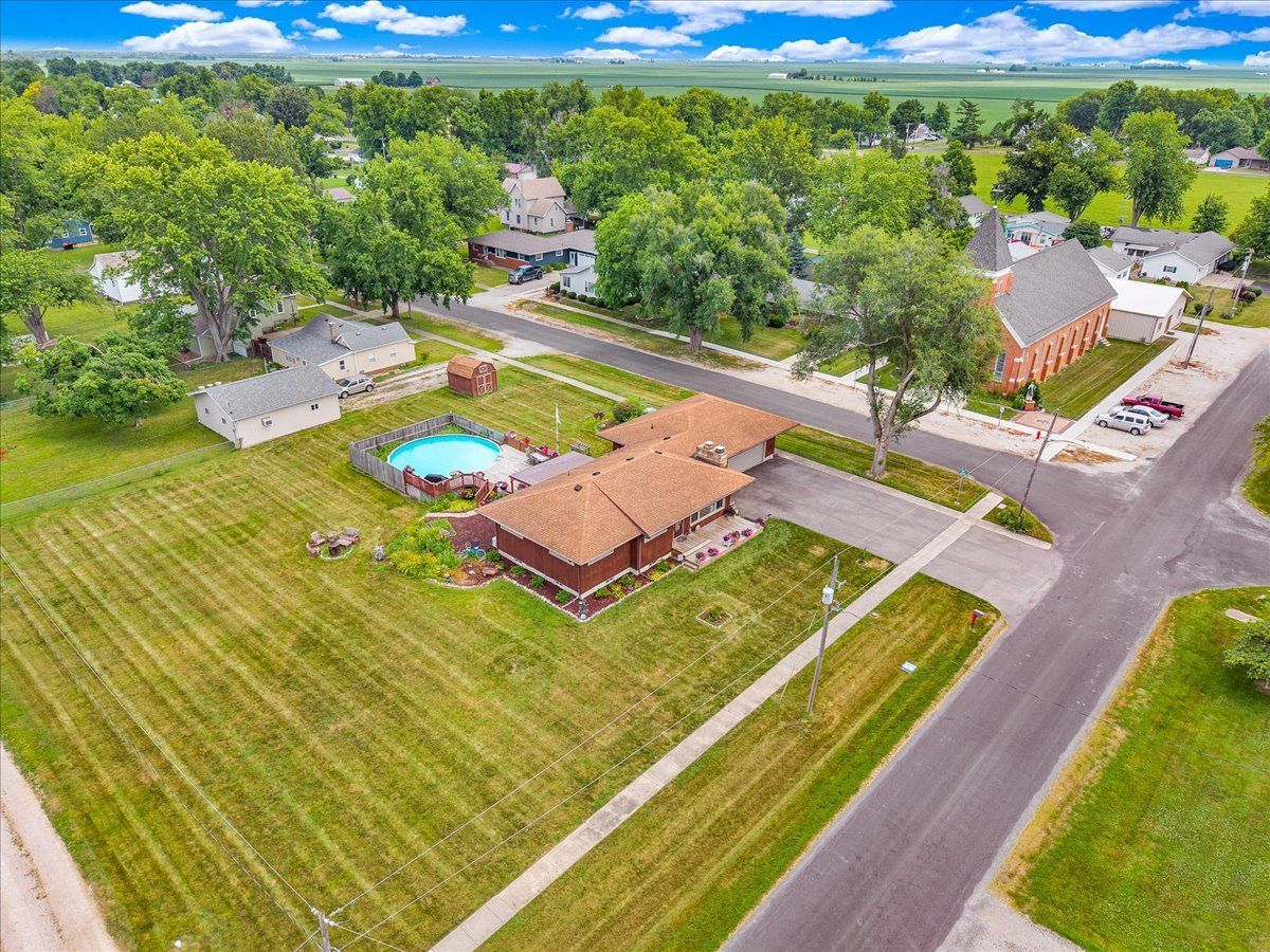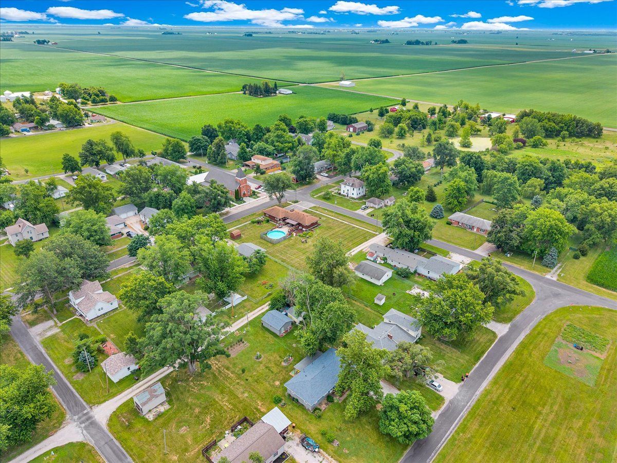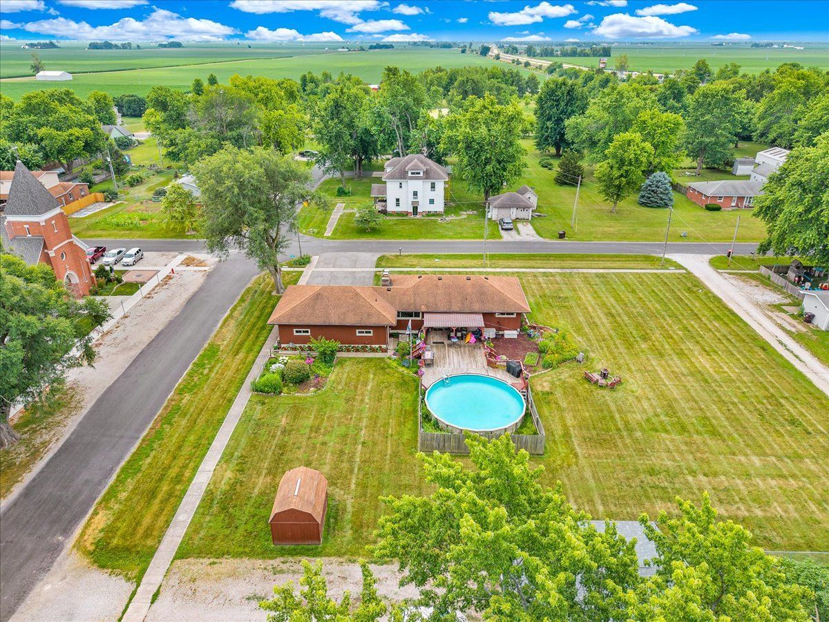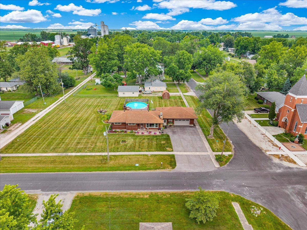 This spacious ranch home sits on a corner double lot in the quiet town of Wapella, IL, offering both comfort and functionality inside and out. The property features eye-catching landscaping, a well-maintained 28' above-ground pool with a party deck, an updated roof over the back deck, a storage shed, and a 2-car attached garage for added convenience. Inside, the home offers a warm and inviting layout with three bedrooms plus a flexible fourth room, currently used as a guest bedroom. You'll also find a separate laundry room and a finished basement complete with a bar-great for entertaining. The basement is protected by a waterproofing system with a transferrable warranty, and the attic has been upgraded with all-new insulation for improved energy efficiency. New furnace 2024. Situated just off Route 51, this home is ideal for anyone commuting to Rivian or the Bloomington-Normal area. If you're looking for small-town charm with space to spread out and easy access to larger communities, this property is a must-see.