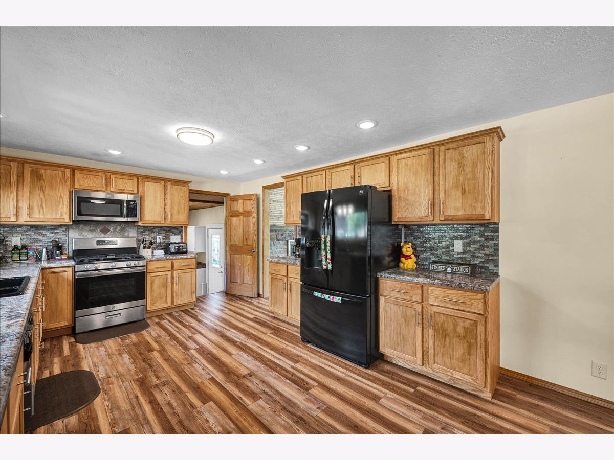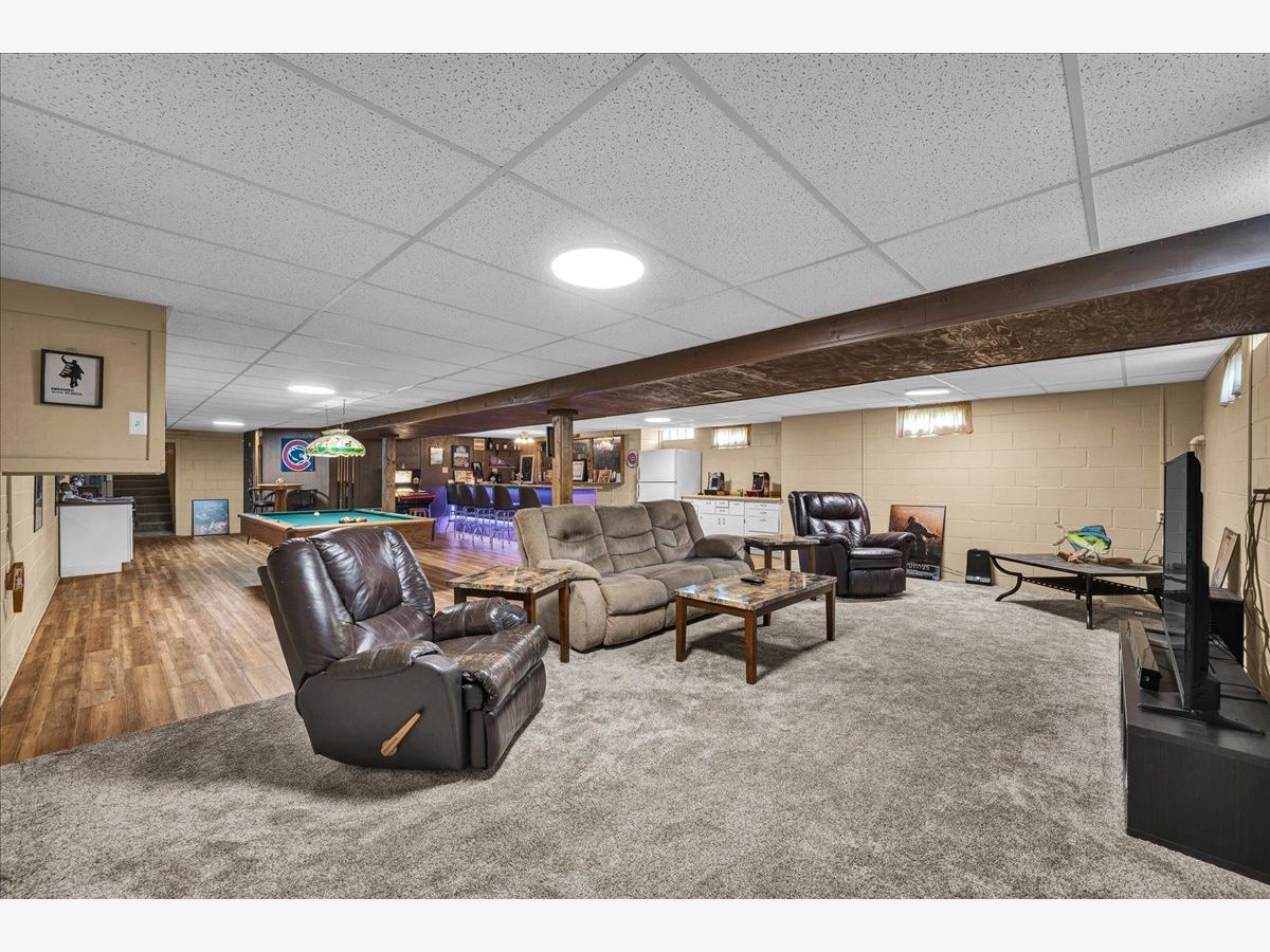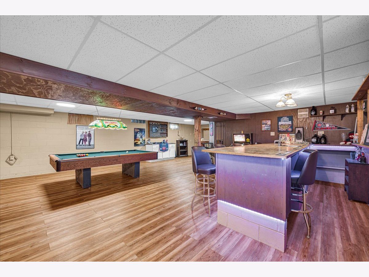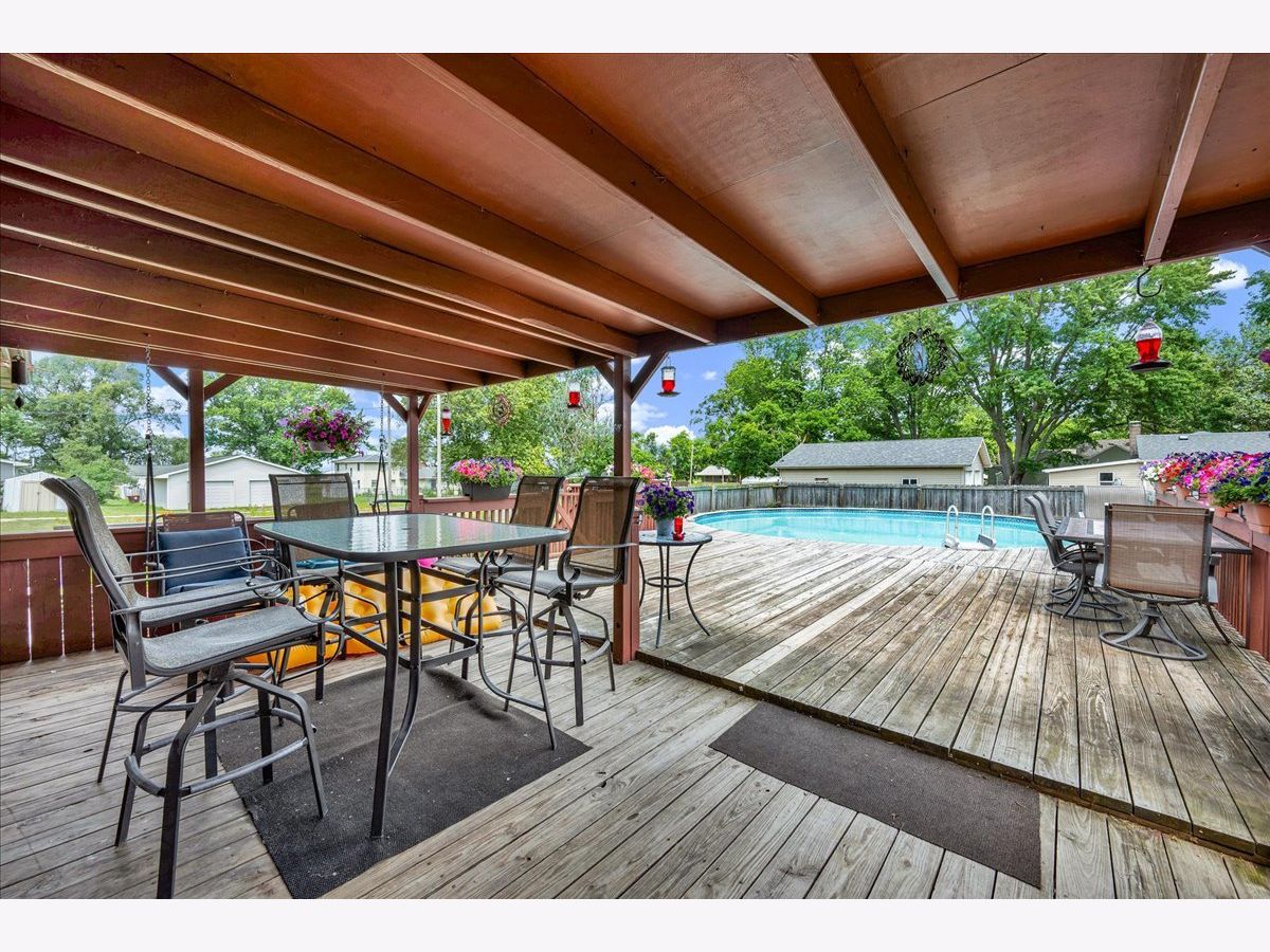 This spacious ranch home sits on a corner double lot in the quiet town of Wapella, IL, offering both comfort and functionality inside and out. The property features eye-catching landscaping, a well-maintained 28' above-ground pool with a party deck, an updated roof over the back deck, a storage shed, and a 2-car attached garage for added convenience. Inside, the home offers a warm and inviting layout with three bedrooms plus a flexible fourth room, currently used as a guest bedroom. You'll also find a separate laundry room and a finished basement complete with a bar-great for entertaining. The basement is protected by a waterproofing system with a transferrable warranty, and the attic has been upgraded with all-new insulation for improved energy efficiency. New furnace 2024. Situated just off Route 51, this home is ideal for anyone commuting to Rivian or the Bloomington-Normal area. If you're looking for small-town charm with space to spread out and easy access to larger communities, this property is a must-see.