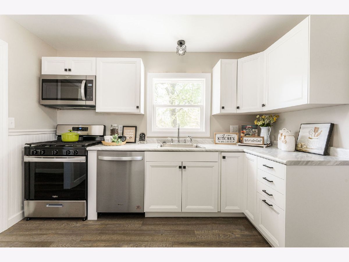 Perfect starter home or turn key rental? You decide. This completely updated, ranch home features 2 Bedrooms, 1 Bath, finished attic and 1 Car Garage. Home features spacious living room with built-ins, dining room, and kitchen with new soft close cabinets, countertops and appliances. Laundry room doubles as a spacious mudroom and pull down stairs to 14x42 finished attic. Large yard and close to town. Sold as-is. Updates include new A/C, flooring, soft close kitchen cabinets, countertops, windows, water heater, roof, siding, gutters, outlets, lights fixtures, doors, trim, and professionally painted throughout. New furnace in 2021. This home is move in ready and ready for your finishing decorating touches.
