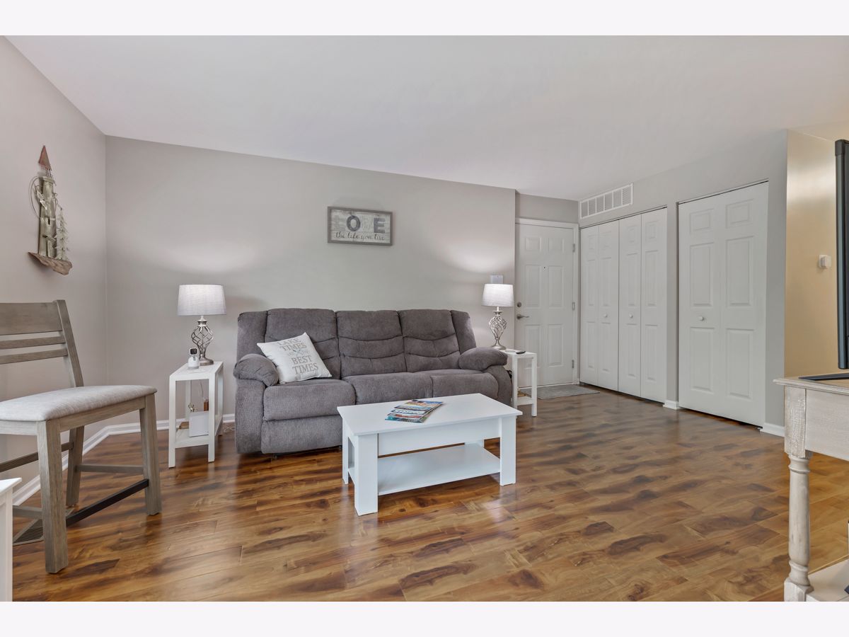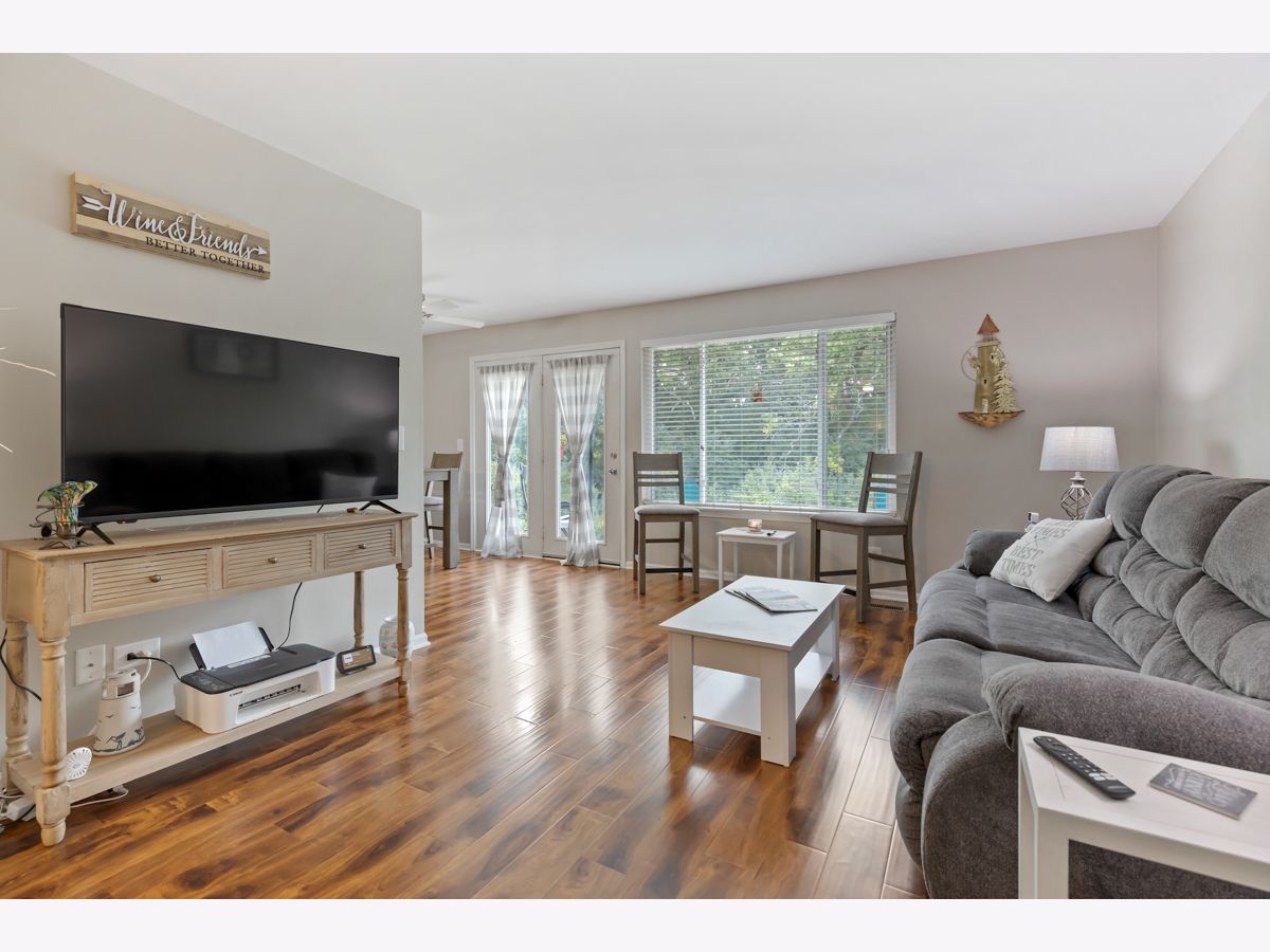 2 bed, 2 bath updated ranch with a beautiful nature view! 1st floor unit in Crestview Estates cul-de-sac away from traffic noise backs to Lakewood Forest Preserve. Wood laminate & flooring & carpet throughout (2022), painted top to bottom (2022) and new AC unit (2022). Kitchen opens to dining area with door to patio to enjoy the peaceful views - new faucet & light fixtures (2023). Laundry space right off kitchen doubles as a walk-in pantry for some extra storage. Primary bedroom has walk-in closet & ensuite with new toilet & fixture (2023). Other updates include Smart thermostat & Door Hardware throughout (both 2023). 1 car garage has interior access and additional storage. Extra-long driveway fits 3 additional cars plus additional guest parking right out front of building. Close to downtown - restaurants, shopping & entertainment - Bangs Lake, Phils Beach, Millennial Trail, Forest Preserve, Dog Park - so much to enjoy! Pets allowed. Rentals allowed. Low HOA fee.