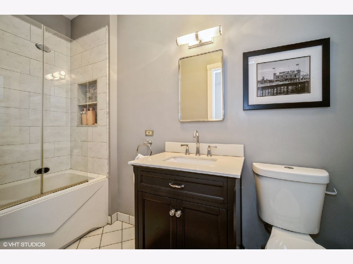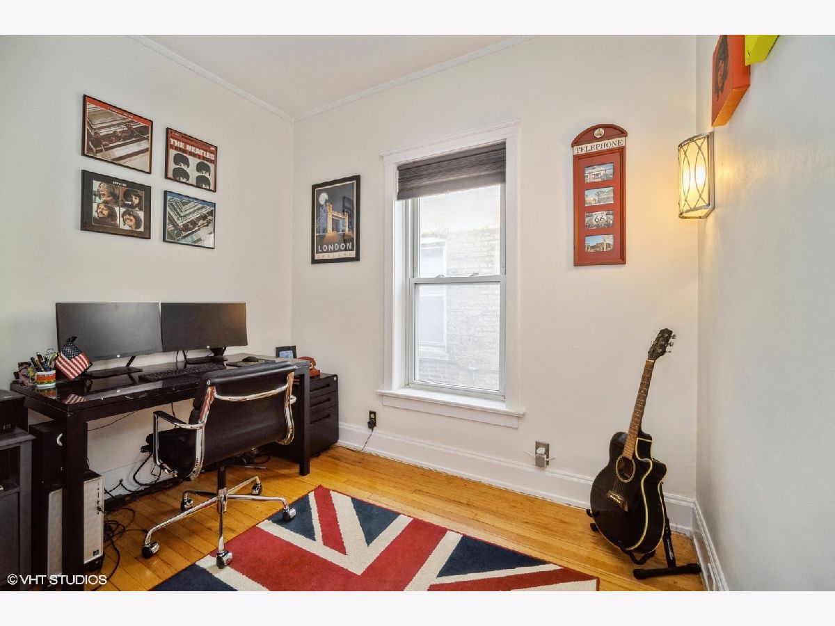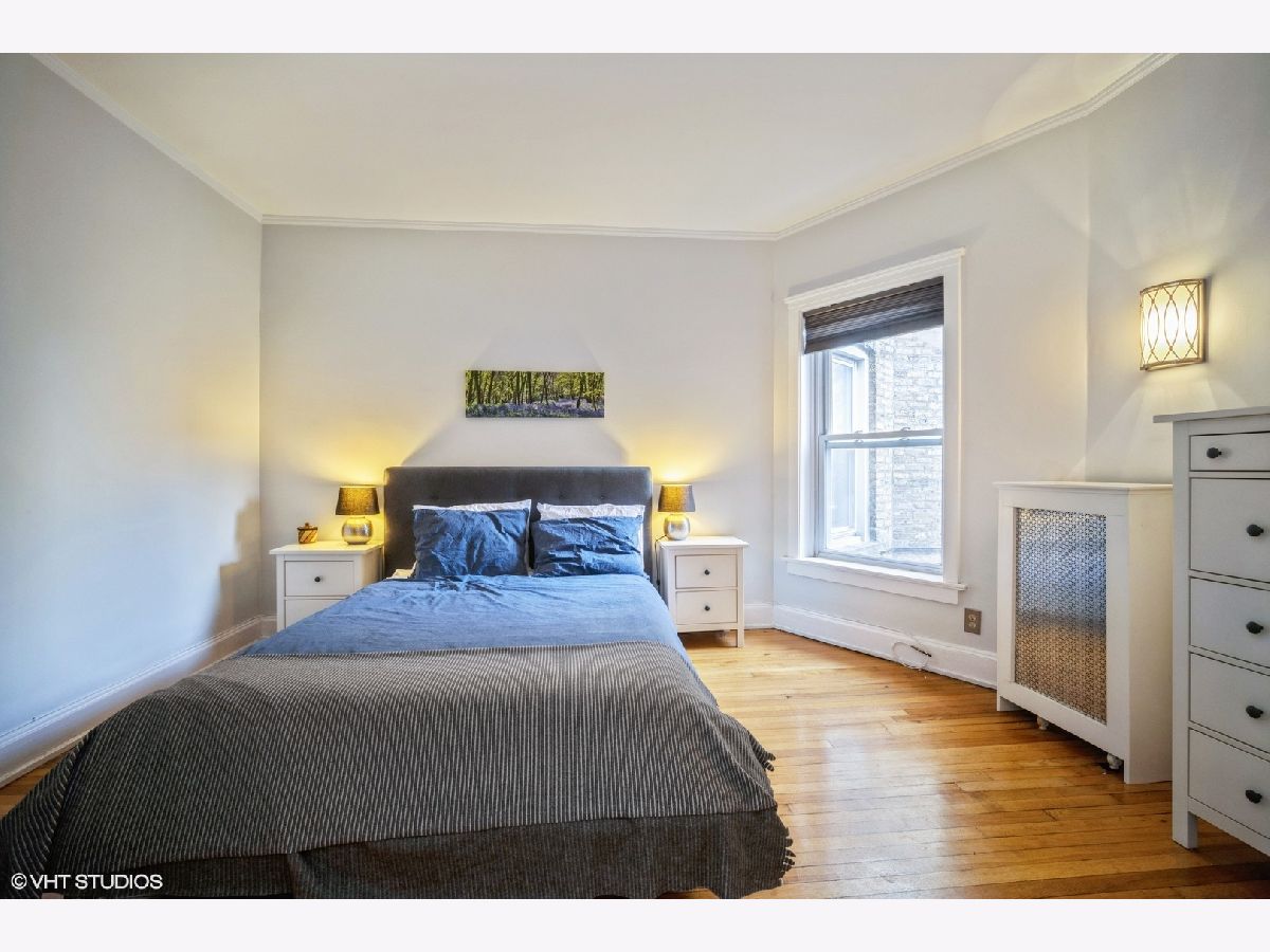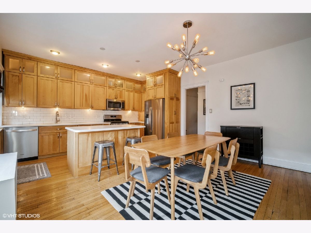 Light and bright well maintained 3 Bedroom top floor condominium is perfectly located just blocks from Lake Michigan beaches and parks and across the street from highly ranked Lincoln Elementary School! Large Living Room with lots of light, hardwood floors and decorative fireplace with chevron patterned carrara marble surround (2017) and bright floor and ceiling trim welcomes you as you enter the home. 3 bedrooms with hardwood floors and large closet spaces. Beautifully remodeled extra large open Kitchen and dining area with a wall of floor to ceiling wood cabinets, corian countertops, newer stainless steel appliances side-by-side refrigerator/freezer, microwave, gas oven/range, and dishwasher, (new in 2021), center island with a wine fridge/beverage cooler, (new in 2019) is perfect for entertaining. Exterior Kitchen door (with newer "Larson" full view back storm door with stowaway screen) leads to back patio deck for outdoor nights. Upgraded bathroom with tub and shower, newer toilet, sink/vanity, fixtures, mirrors, lighting and tile surround with glass door (2017). There is also a large extra deep hall closet for ample storage. Newer neutral paint. Hardwood floors through out. Large 10 x 10 basement storage for this unit included. 3 window air conditioners included. Close to restaurants, shopping, Trader Joe's, Starbucks. Easy access to both CTA El, Metra, and Pace Bus routes. A walker's dream! Don't miss this one!