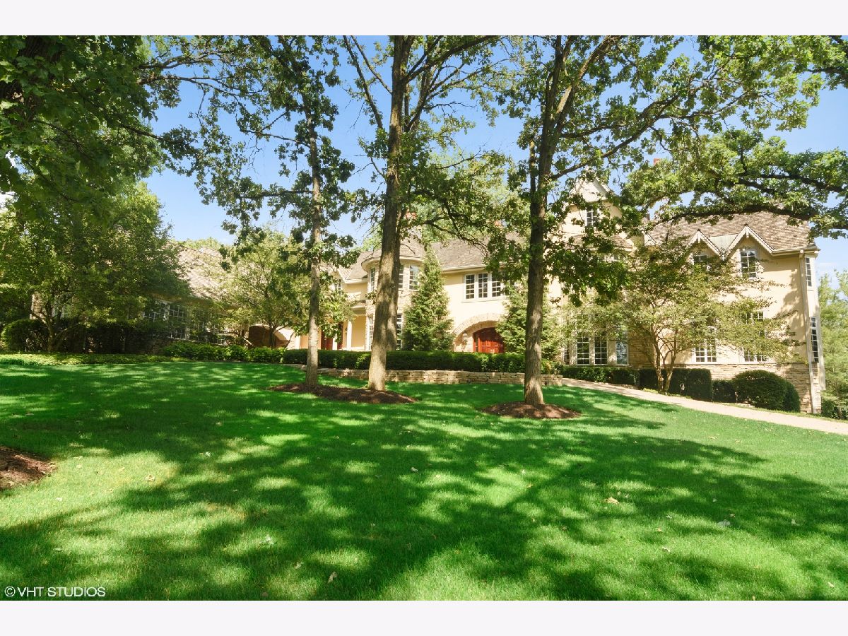 A winding lane and brick drive past a private pond is your first introduction to this beautiful English Country Manor home set on 5.4 lush acres in the heart of Barrington Hills. This prime setting on Oak Knoll Road offers a peaceful setting, manicured gardens, towering trees and magnificent views of nature, seasonal views of BHCC golf course and moon lit nights. Custom built home will impress you with over 10,000 SF on three levels including 5 Ensuite Bedrooms, 6.2 Bathrooms, 5 Fireplaces, light filled rooms with soaring ceilings, exquisite architectural details, Porte Cochere, garage spaces for up to 8 cars plus a charming Guest House. The home exudes character, elegance and warmth throughout and was designed to provide exceptional property views from every room and a floor plan with oversized doorways to facilitate connection and flow enhancing both everyday living and entertaining alike. The grand Foyer with sweeping staircase flows into the Family Room boasting 22 foot ceilings with custom beamed millwork and fireplace. Gracious Living Room features a piano niche and a two-sided fireplace shared with the private Library of mahogany which overlooks the landscaped grounds. The stunning white kitchen features two islands, high end appliances, two pantries, Butler's pantry, quartz countertops. The Kitchen offers easy service to the spacious formal Dining Room as well as to the adjacent patio with grill. The upper level hosts a gracious Primary Suite with fireplace, sitting room, spa-like bathroom and huge walk-in closet. There are 4 additional ensuite bedrooms plus a back staircase and a walk-up attic. Everyone will enjoy the 2,700 square foot walk out Lower level with 11 ft. ceilings featuring two fireplaces, a large Media Room, a REC Room, Billiards Room, three flat screen TV's, wet bar, full bathroom plus a large storage room. French doors lead to the 20 x 40 pool and patio. Another cozy patio is set in the lower yard and is perfect to enjoy a fire pit. Original to the property, the charming Stone & Log Guest House includes 2 bedrooms (1 bedroom ensuite), a Den, full Kitchen, 2 bathrooms, beamed ceilings, a stone fireplace and 2 car garage and offers wonderful possibilities as an in-law suite or work from home office space. An enchanting home and property will take your breath away and provide years of enjoyment and cherished memories!