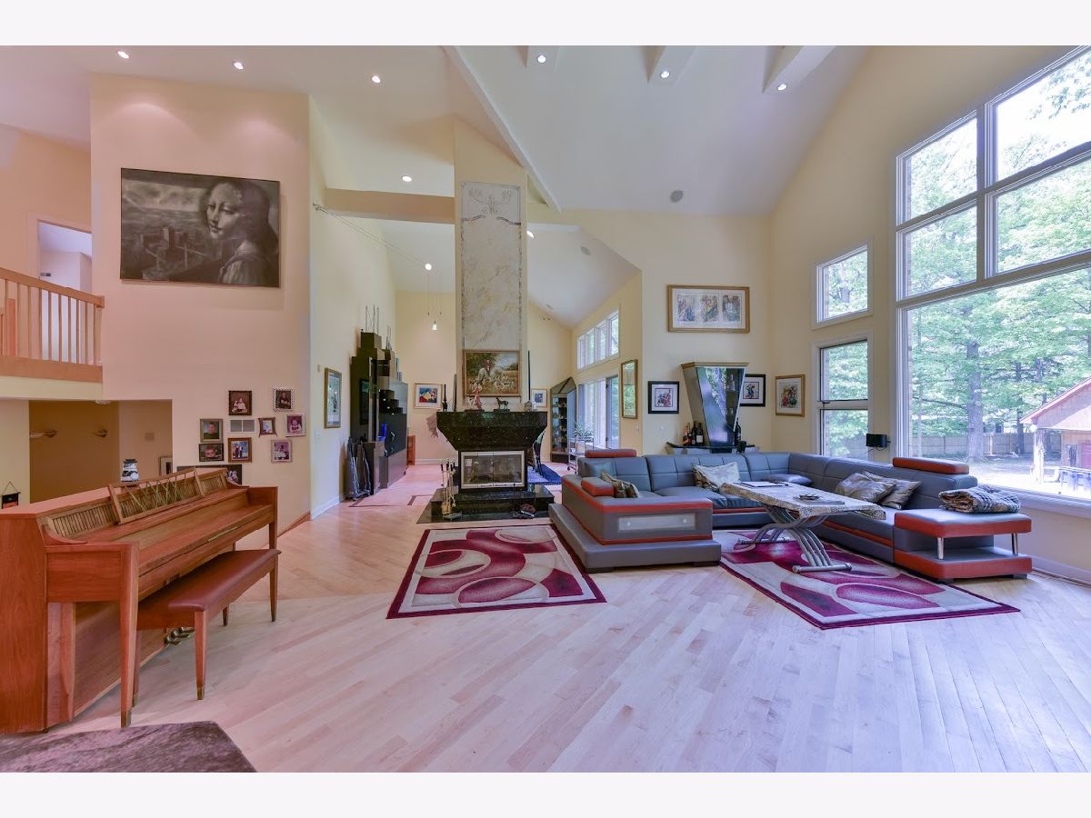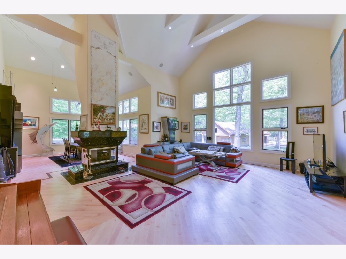 Come see this one-of-a-kind custom-built home sitting on just under a 2-acre picturesque lot with fencing and a gate around the entire property. As you enter the home, you are immediately wowed by the 30-foot ceilings in the home and all the custom millwork throughout. Natural lights pour in through all the oversized windows and gleam off the hardwood floors throughout the home. The open layout gives you a magnificent view of the private wooded yard and direct views of the two horse barns and horse trails on the premises. The interior of the home boasts 4 large bedrooms and is highlighted by a primary suite on the main level and another en suite on the second level with its own private balcony. The open layout throughout the 3 levels of living space(and sub-basement), gives the home a lot of flexibility for all your wants and desires. Outdoor access is available from the main level and lower level and flows nicely to the oversized deck and gazebo. The lower level also boasts a spa-like dry sauna and bathroom area. Sub basement also has lots of open space for extra living space or a great area for storage. BRAND NEW 2023 ROOF. This oasis is conveniently located within the top-rated Deerfield High School district and has easy access to highways, shopping, restaurants and so much more. Don't miss your opportunity to purchase this incredible home for an amazing price!