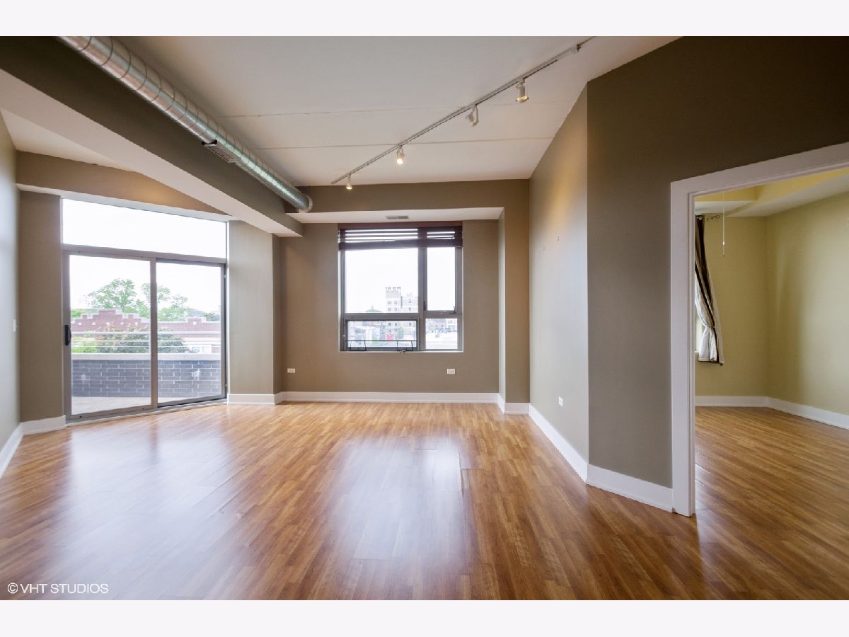Amazing loft style 2 bedroom 2 bath condo with unique upgrades in all brick elevator building! This unit is on the opposite side from the L so you can't hear the train. This spacious condo features 10' exposed concrete ceilings, custom closets throughout, upgraded washer and dryer and 2 private balconies. Fantastic spacious kitchen with a large island that is great for entertaining, stainless steel appliances, granite counter-tops, and custom shelving in pantry. Master bedroom has a private balcony, custom closets, en suite bathroom with granite dual vanities and plenty of cabinet space. Great heated garage space included or take the Kedzie brown line which you are steps away from with easy access to downtown. Additional storage included on the same floor as unit.