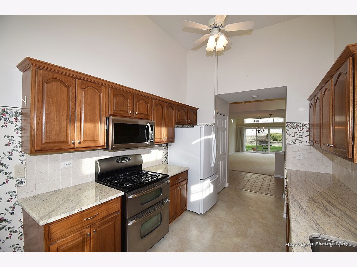 Bright, Spacious and Clean! This warm end unit offers an open floor plan and hard to find first floor master bedroom. The master bath features a double bowl vanity and separate shower and tub. The living space has upper and lower windows providing an abundance of natural light. The sliding glass door from the living room opens to a private patio (does not back to any road). The second level is perfect for guests with a spacious loft and the second full bath. Bedroom two has a huge walk in closet. The kitchen is equipped with stainless steel slide in stove with double oven, granite countertops, cherry cabinets and a bright area for the kitchen table. First floor laundry room and a nice size two car garage. Convenient to Costco, Randall Rd shopping and just minutes from historic downtown St Charles.