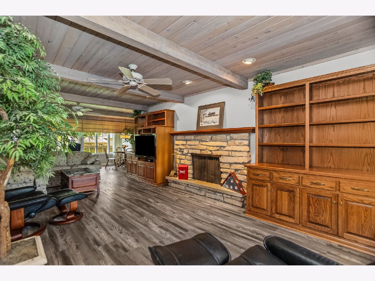 Welcome to this incredibly spacious 2,400 sq ft 4-bedroom, 3-bathroom brick ranch located in the rarely available and highly desirable Twin Oaks community of West Joliet, within the top-rated Troy School District. This home offers the perfect blend of comfort and functionality with a large 2-car garage and an expansive fully fenced backyard featuring a private patio area-ideal for entertaining or relaxing in peace. Inside, the main level boasts new flooring throughout the living room, dining room, kitchen, breakfast bar, hallway, and primary bedroom. The beautifully remodeled bathrooms (both primary and guest) feature modern finishes that add a fresh, updated feel. Cozy up in the spacious family room with beautiful wood beam ceilings, a gas fireplace complete with custom stonework, and built-in wooden shelving on both sides-creating a warm and inviting centerpiece. Natural light pours throughout, creating a bright and airy atmosphere in every corner. Downstairs, the finished 1,650 sq ft basement offers a huge living area ready your design ideas, complete with a bar, additional 4th bedroom, and a full bathroom. The current owners have invested significant time, care, and pride into maintaining this home, which is being offered in as-is condition. Don't miss the opportunity to own this rare gem in one of Joliet's most desirable areas!