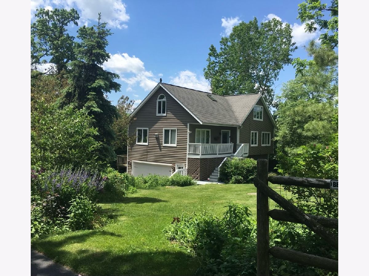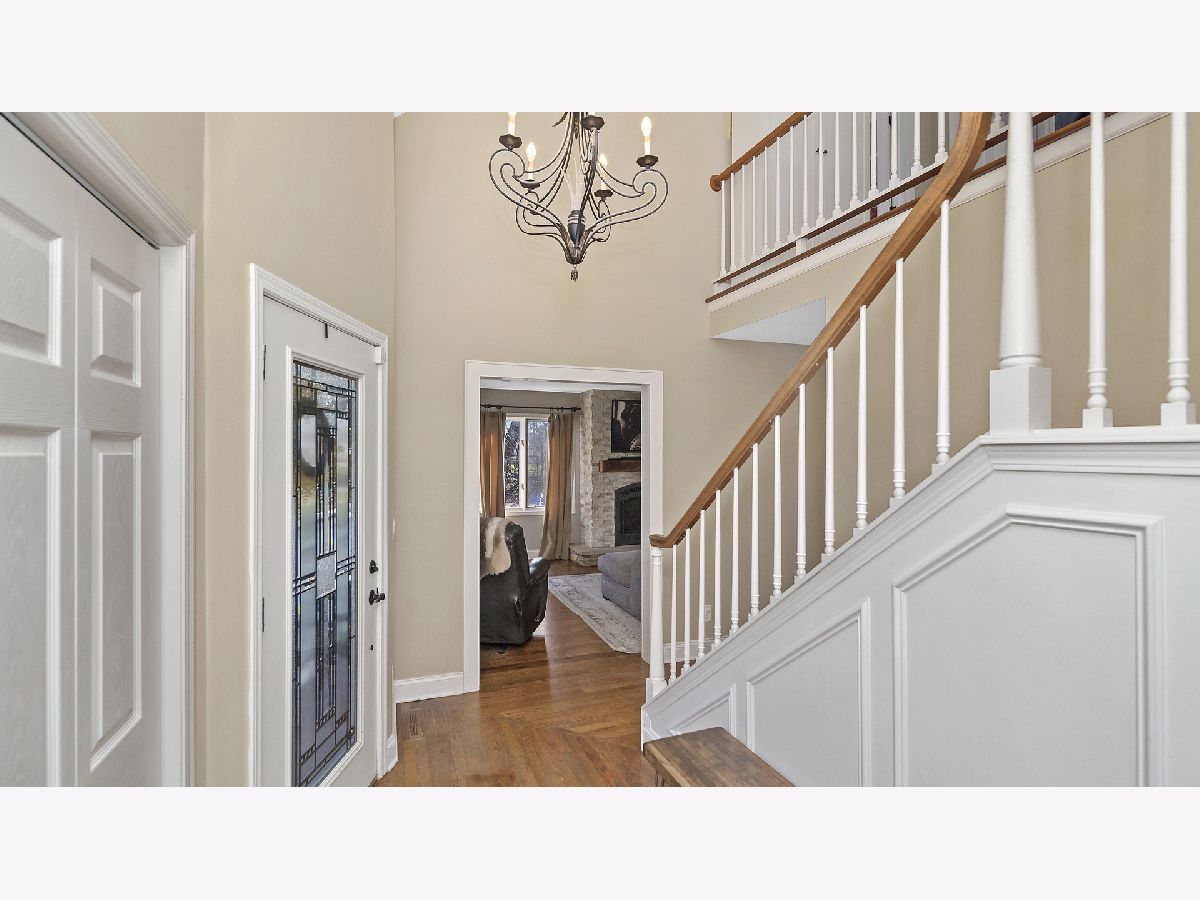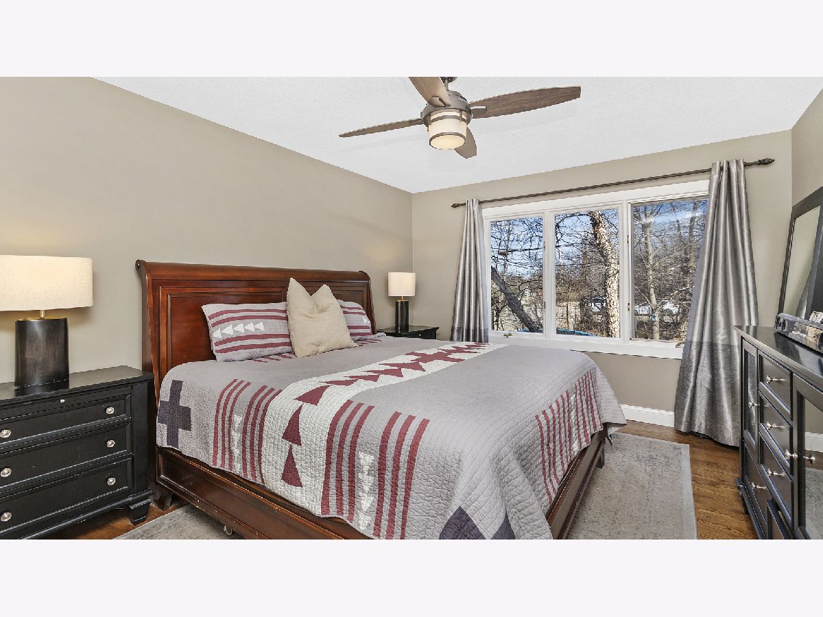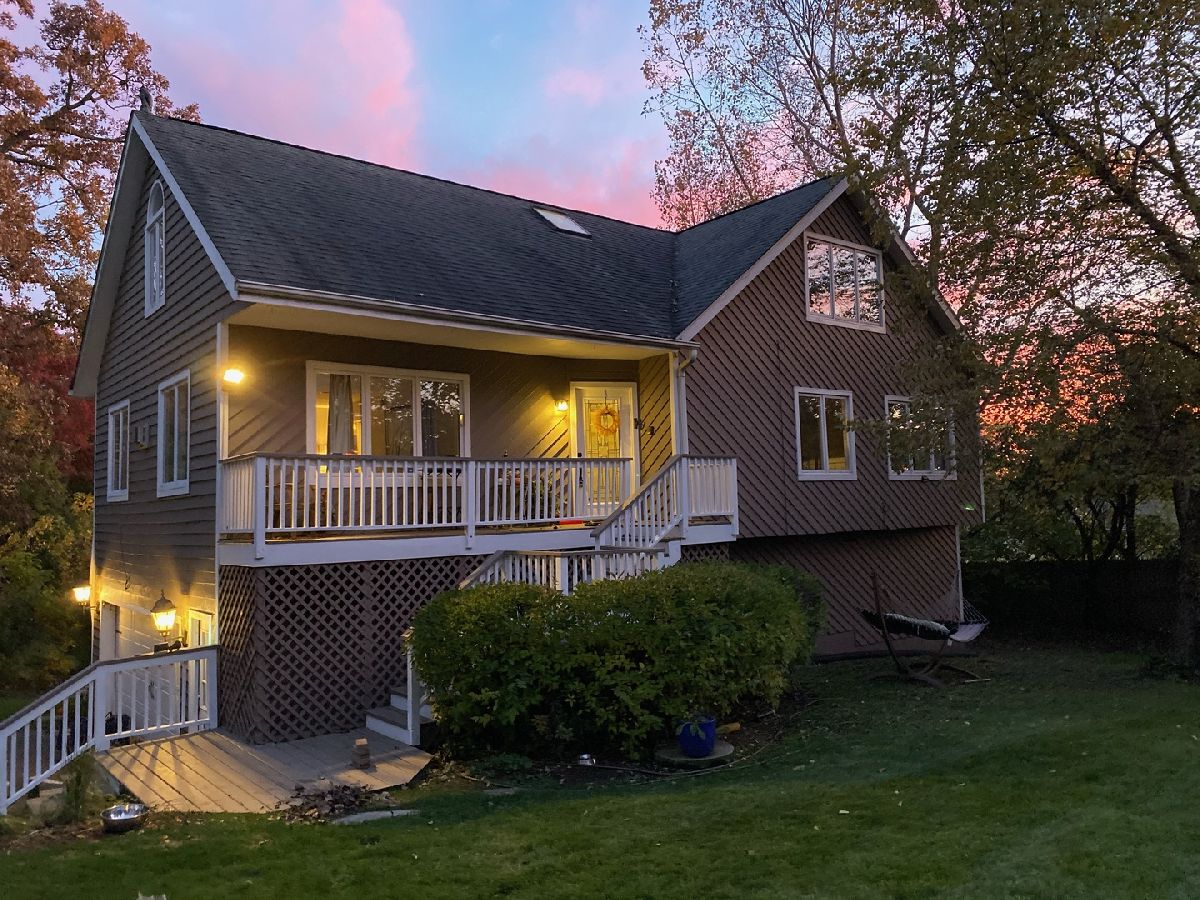 This ultra private home resides on just over half an acre wooded lot with a fully fenced yard and gated entrance. The home offers treetop views from everyone window and is perfect for indoor and outdoor living. Walk into your two-story foyer that leads to your great room with tons of natural light and a floor to ceiling stone gas fireplace. The great room leads into your white eat-in kitchen with granite counters, white subway tile, stainless steel appliances, open shelving and pantry closet. Sliding doors from your eating area leads out to a deck overlooking your backyard. Separate spacious dining room for entertaining. Powder room recently updated. The first level is complete with your primary bedroom with two walk in closets and remodeled primary ensuite bathroom with double sinks and large shower. Hardwood floors throughout the entire first level. The second level provides three additional bedrooms, all generous sized with high ceilings, and large hall bathroom and second floor laundry. The lower level offers an enormous family room with built in cabinets, extra rec space/workout space, and French door out to the luscious backyard, plus a second updated powder room. Incredible storage and attached 2.5 car garage. Outdoor space perfect for all your needs with fire pit area, nature area, six raised garden beds, ability to have chickens and bees, and multiple decks. Tons of greenery and privacy! Close to schools, park district and other attractions. Short drive or bike ride to Lake Michigan. Unincorporated Lake Bluff and city water. Please exclude all curtains/drapes.