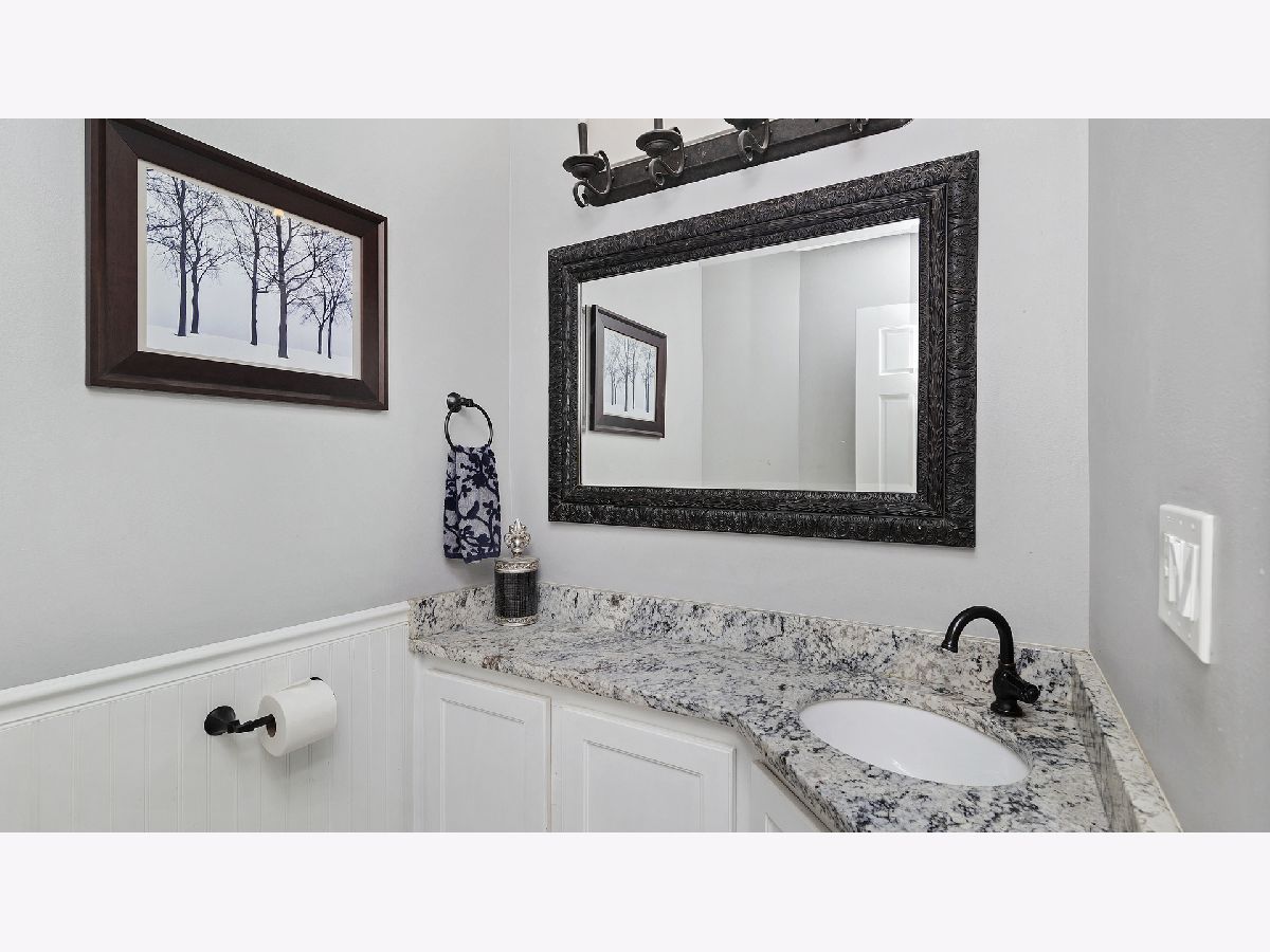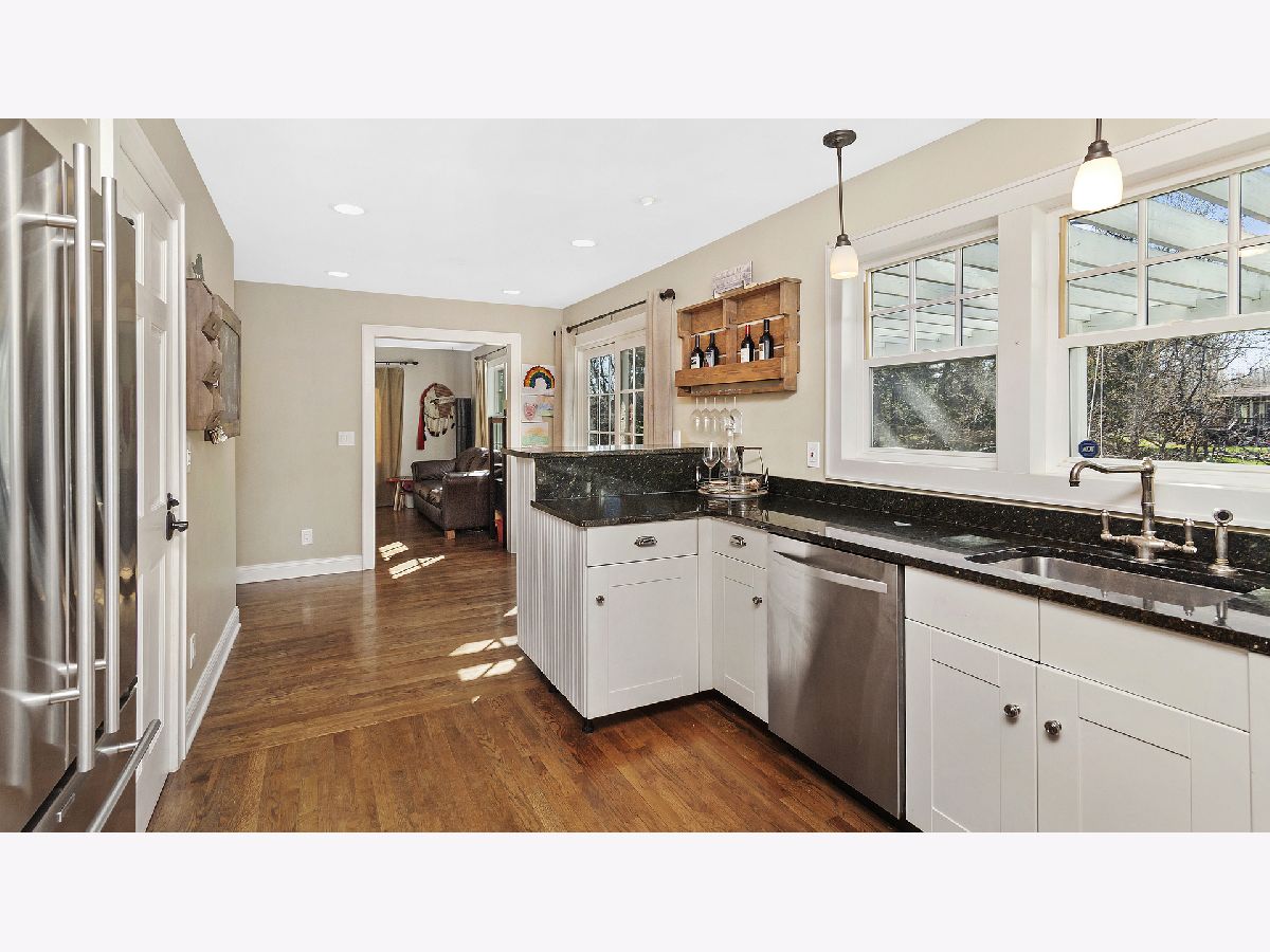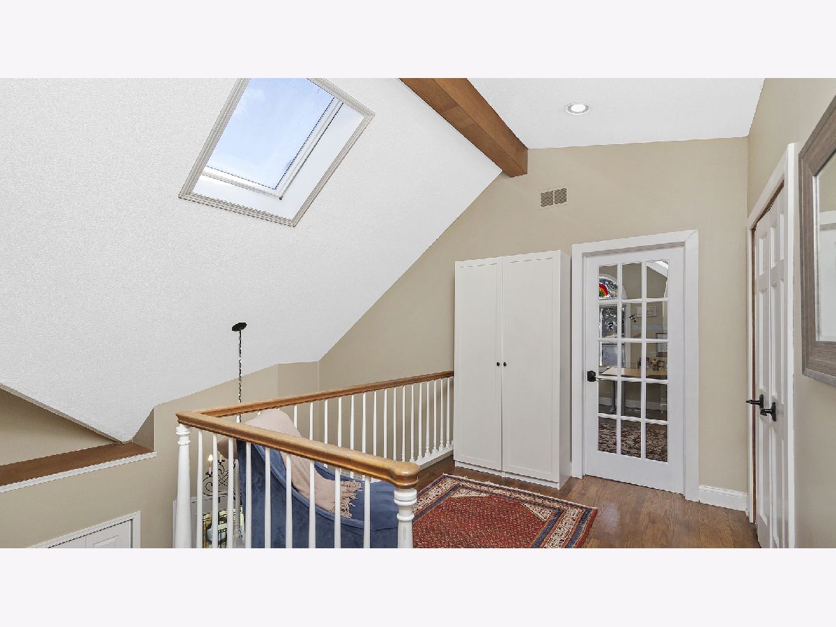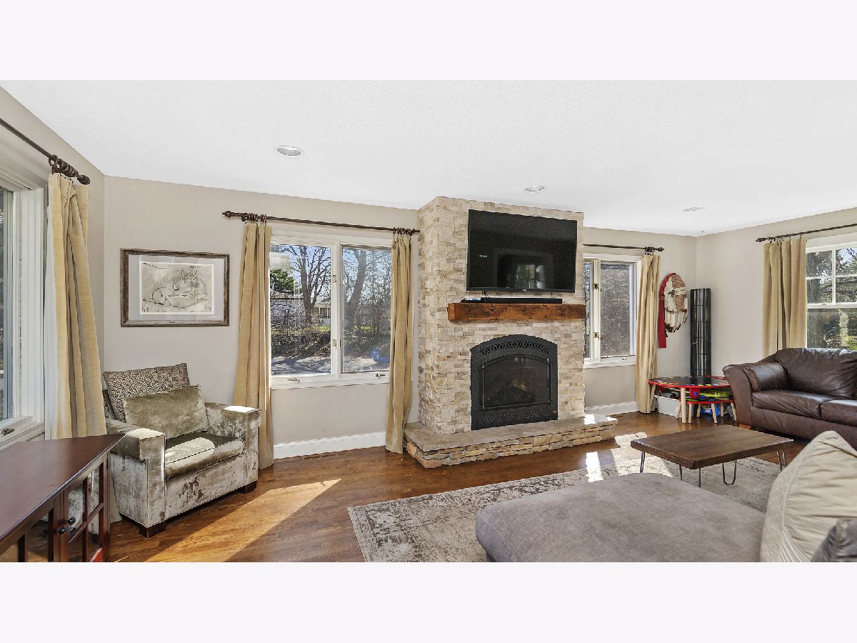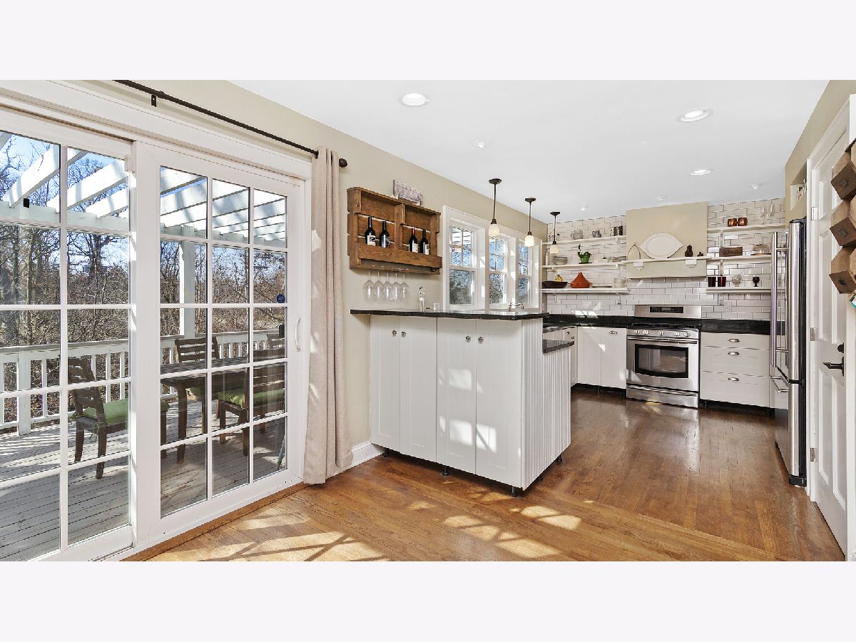 This ultra private home resides on just over half an acre wooded lot with a fully fenced yard and gated entrance. The home offers treetop views from everyone window and is perfect for indoor and outdoor living. Walk into your two-story foyer that leads to your great room with tons of natural light and a floor to ceiling stone gas fireplace. The great room leads into your white eat-in kitchen with granite counters, white subway tile, stainless steel appliances, open shelving and pantry closet. Sliding doors from your eating area leads out to a deck overlooking your backyard. Separate spacious dining room for entertaining. Powder room recently updated. The first level is complete with your primary bedroom with two walk in closets and remodeled primary ensuite bathroom with double sinks and large shower. Hardwood floors throughout the entire first level. The second level provides three additional bedrooms, all generous sized with high ceilings, and large hall bathroom and second floor laundry. The lower level offers an enormous family room with built in cabinets, extra rec space/workout space, and French door out to the luscious backyard, plus a second updated powder room. Incredible storage and attached 2.5 car garage. Outdoor space perfect for all your needs with fire pit area, nature area, six raised garden beds, ability to have chickens and bees, and multiple decks. Tons of greenery and privacy! Close to schools, park district and other attractions. Short drive or bike ride to Lake Michigan. Unincorporated Lake Bluff and city water. Please exclude all curtains/drapes.
