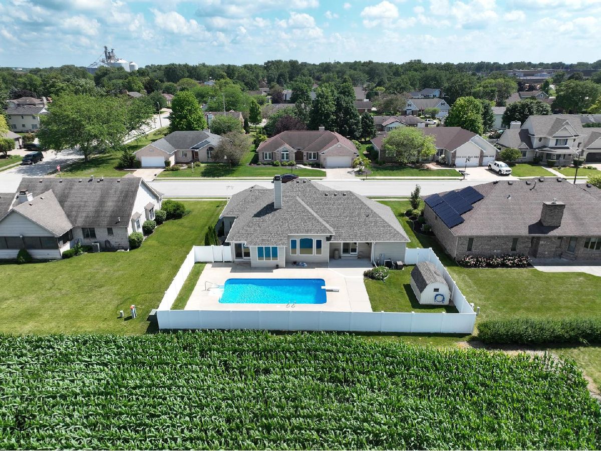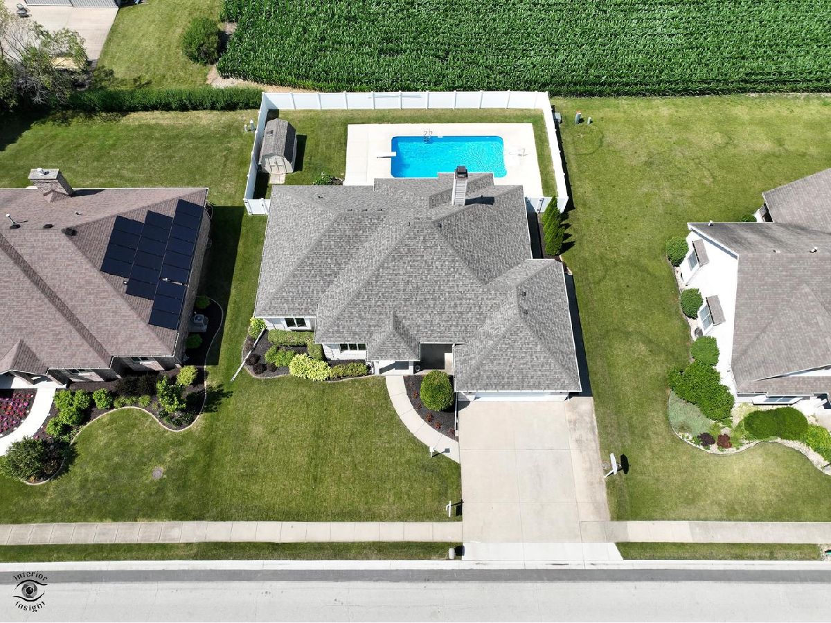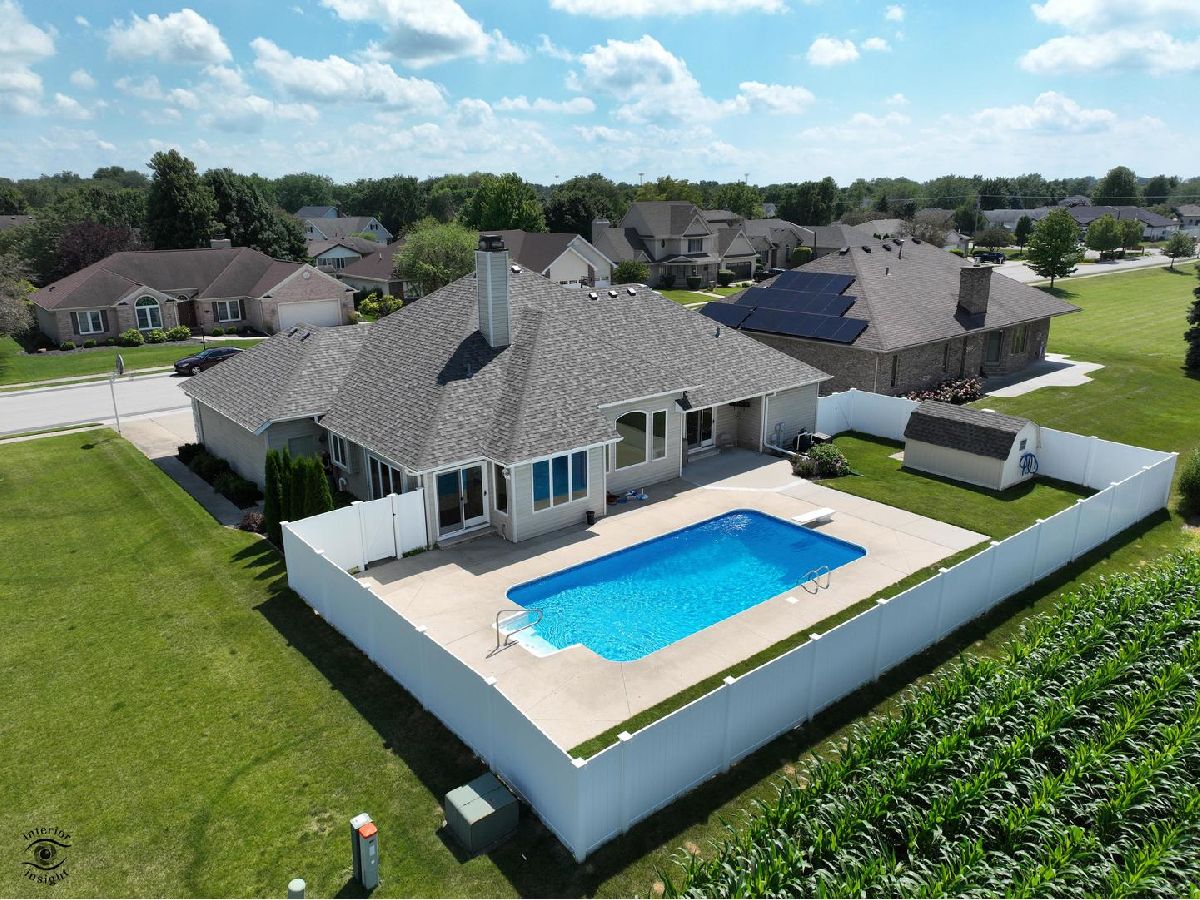 Welcome to your ultimate retreat! This exquisite one-owner "home show" home , four-bedroom, 3.5-bath home, located in a premier Manteno location just 50 minutes from Chicago and minutes from I-57, offers unparalleled quality and comfort. Dive into luxury with an 8.5-foot deep 16x32 heated pool, complete with a diving platform. Enjoy ultimate privacy with a PVC fence and no neighbors behind, plus a shed for extra storage. The full finished basement includes an office, bedroom, family room, and a full bath, perfect for guests or additional living space. Convenience is at your fingertips with a main level laundry room. The master suite is a true sanctuary, featuring sliders to a covered patio that leads to the pool, a double vanity, whirlpool tub, a walk-in shower and a walk-in closet. Ideal for entertaining, the open floor plan is accentuated by hardwood flooring and design ceilings throughout. Cozy up in the hearth room, complete with a three-sided fireplace. The oversized garage offers plenty of space for your vehicles and more, with room for 2.5 cars plus a golf cart. Peace of mind is ensured with a state-of-the-art security system. Water heater new 2021. This home is a perfect haven for those seeking luxury, privacy, and ample space. Don't miss the opportunity to make this dream residence yours! For more information or to schedule a showing, contact us today!