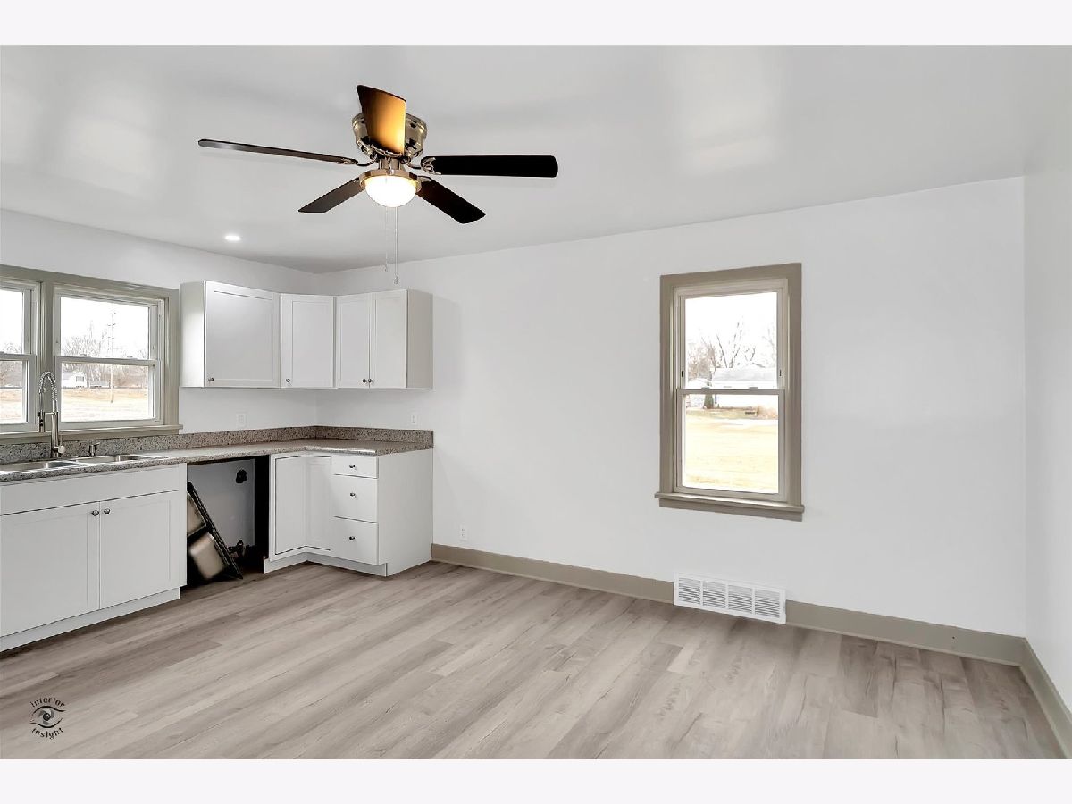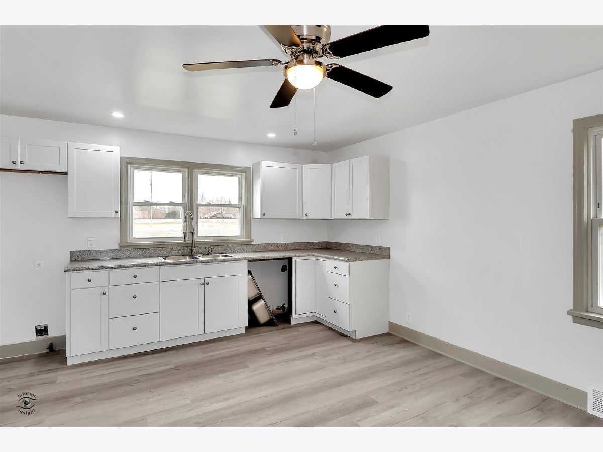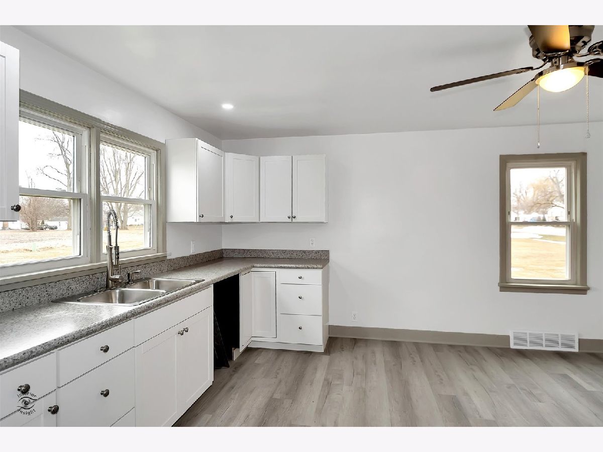 COMPLETELY UPDATED & MOVE IN READY! This cute 2 bedroom, 1 bath ranch has a great layout: There is a bright & spacious living room; beautifully done kitchen; big utility room, and comfortable bedrooms. [BONUS: excellent storage throughout; brand-new cool modern bath; new vinyl plank flooring.] The outdoor space is a treat: Set on a generous 1/2 acre lot, with a covered back stoop & a giant shed that could be converted to a garage or workshop. Enjoy the best of country living - the house backs to farmed land (addt. 2.23 acres also for sale $22k), is only 4 blocks from town, and has easy access to I57. A PERFECT starter, downsizer, or income property - come and see! (c)2022