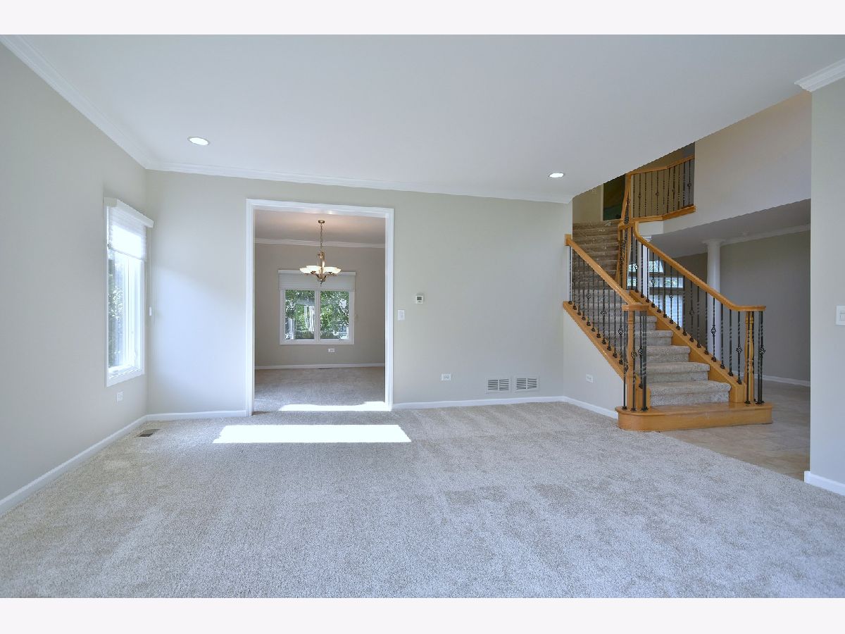The home is located on an interior lot in the highly sought after Tall Grass subdivision - amenities include a pool, park, paved trails, tennis courts and clubhouse. The interior has recently been repainted to a beautiful neutral color and brand new carpet has been installed on both the main and the 2nd level. When you enter the home you are welcomed into a two-story foyer featuring a staircase with wrought iron spindles. On your left is a large living room with a bay window & crown molding. To the right of the foyer is an office with a French door - this room could easily be converted for use as a 5th bedroom. Walk-in coat closet next to the powder room that could be configured for a first floor full bath. Separate formal dining room with crown molding. Kitchen features 42" cabinets with crown tops & pull outs drawers, granite countertops with matching granite backsplash, a center island with breakfast bar seating, stainless steel appliances, venting hood, walk-in pantry, recessed lighting and an eat-in dinette area. Open to the vaulted family room with built-in book cases on either side of a gas start fireplace. 10 foot ceilings and custom Silhouette blinds throughout 1st floor. The upstairs has a large primary suite with vaulted ceiling and large walk-in closet. The ensuite bath has a vaulted ceiling, a double sink vanity, separate whirlpool tub and shower and a private water closet. The guest suite features a walk-in closet and tray ceiling with a private bath. Bedroom 3 (tray ceiling) and 4 (vaulted ceiling and walk-in closet) share a jack-n-jill bath with a double sink vanity and separate bath/shower area. The full, finished, look-out basement is built for entertaining! It includes a full bathroom, a center wet bar, a direct vent gas fireplace and a theatre area - complete with a raised platform for seating - the perfect at home movie night! A built-in playhouse in the far corner and a work out area. Hidden storage looks like a wall of cabinets. This basement has something for everyone AND every age! The front of the house features an oversized brick paver walk way. The private backyard has a large composite deck and a large paver patio. Yard is shaded by mature trees. Highly acclaimed Indian Prairie School District #204 - both the elementary and middle school are within walking distance. Close to shopping and entertainment!