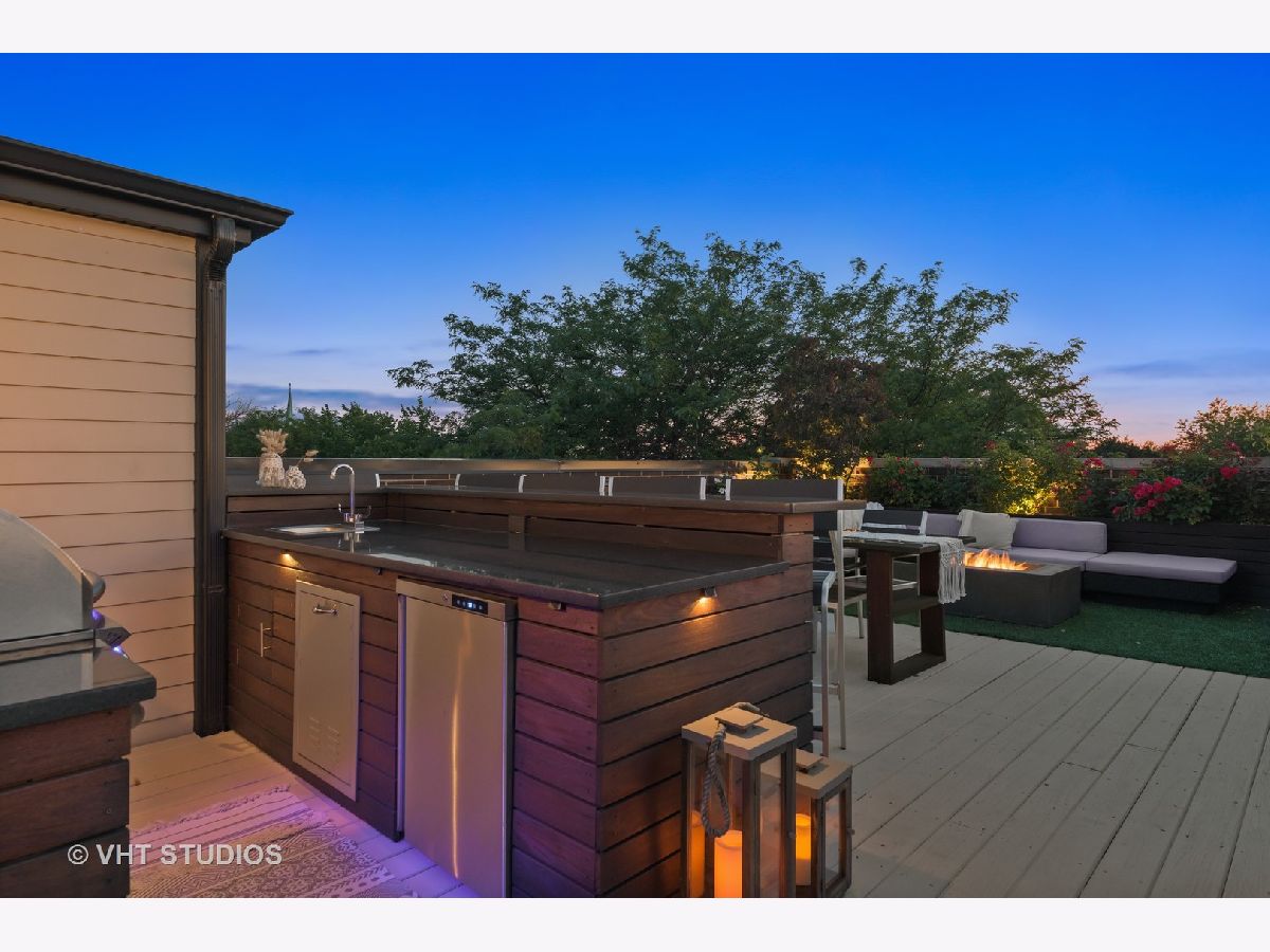 Stunning East Lakeview luxury penthouse with private rooftop deck that is completely built out with top of the line finishes. Rooftop bar area features 32'' built-in Summerset gas grill dual wing side burners, Hoshizaki refrigerator, Summerset bar sink and granite countertops. Outdoor living area perfect for private recreation & entertaining includes gas fire pit, built-in Ipe wood planters, hardwired speaker system and photo-cell LED lighting throughout. Turfed Inside features Extra high 10 foot ceilings and wide floor plan that combine with the light to create volume. Hardwoods throughout custom kitchen with Viking appliances, Bosch dishwasher, exterior venting hood, oversized crown moldings and casement windows, floating island, Silestone quartz countertops throughout and 42'' white cabinetry with backlit glass. Spacious living room allows for oversized windows and sliding glass doors that lead out to extra wide front deck that overlooks quiet, one-way tree-lined Kenmore. Master suite features walk-in closet with built ins, 75'' carrara marble dual sink vanity, heated floors and steam shower with body sprays. 2 blocks to EL, 5 blocks to Southport corridor, 5 blocks to Wrigley Field and 15 min. walk to lakefront.