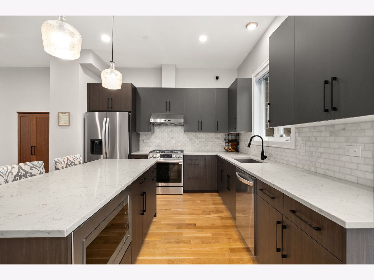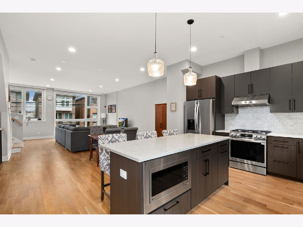 Welcome to this gorgeous 4-bed/3.5-bath townhome in Armour Square. This spacious, like-new (2023) construction in the heart of Bridgeport lives like a single-family home. You'll be impressed by the modern design, featuring soaring 10' ceilings, wide-plank white oak flooring, and sun-drenched interiors framed by floor-to-ceiling windows. Enjoy the incredible outdoor spaces - including a private front yard, balcony, and an expansive rooftop deck serviced by a top-floor wet bar, making it the perfect place for entertaining. Functional luxury abounds with a first-floor flex suite, a primary retreat with a spa-inspired shower, a dual-zone high-efficiency HVAC system, and a spacious 2-car attached garage. Located just moments from Guaranteed Rate Field, the Red Line, and major expressways in red hot Bridgeport!