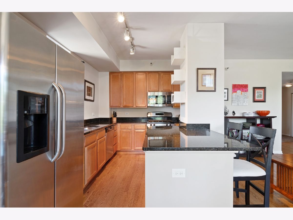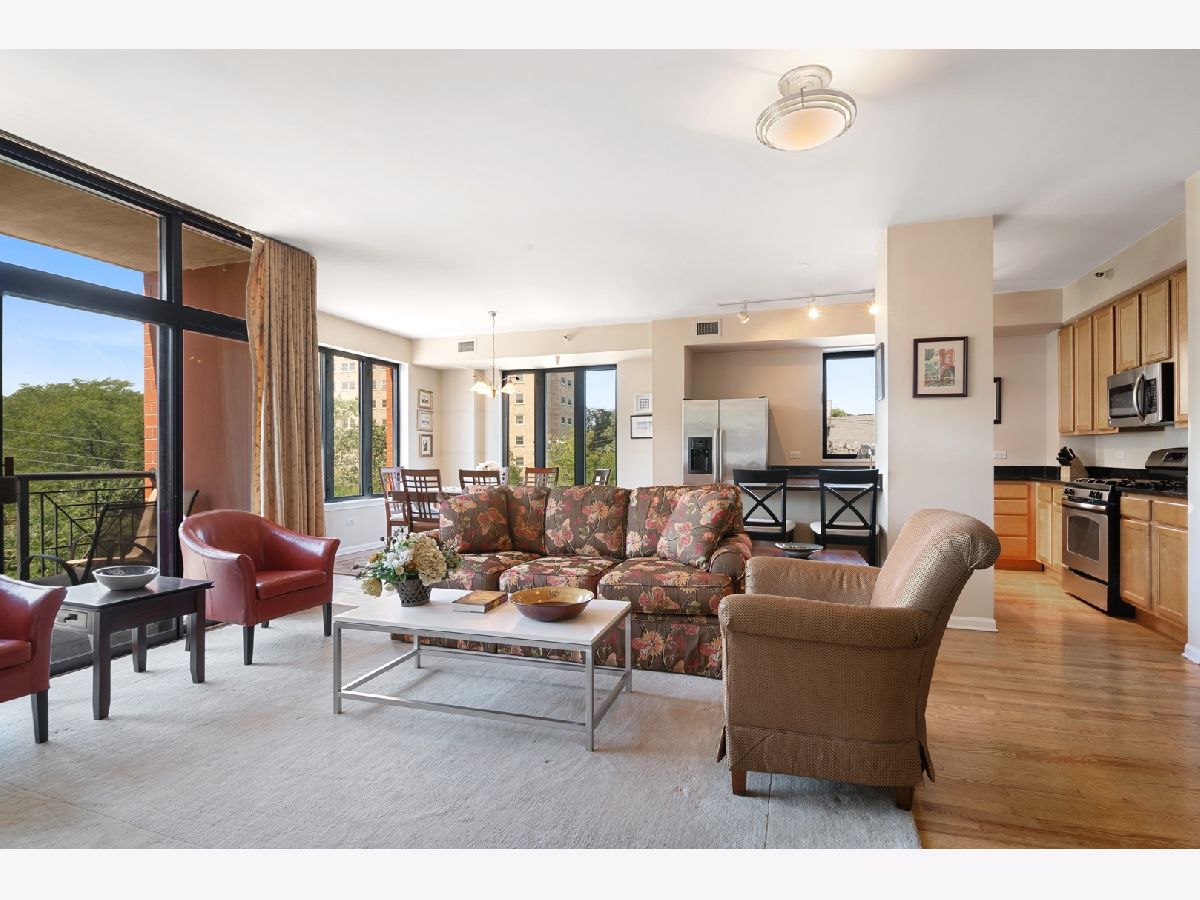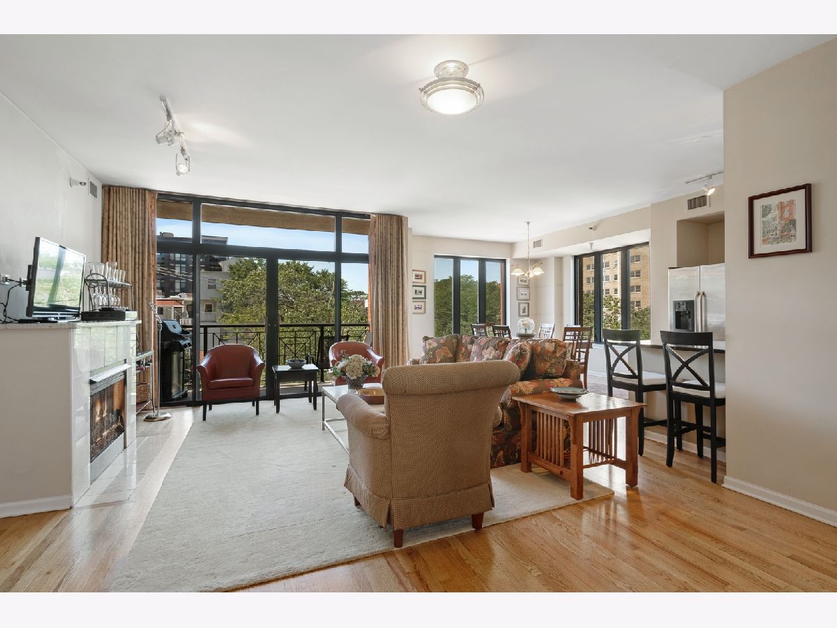 SET BACK FROM HALSTED, THIS BRIGHT N/W CORNER UNIT IS THE LARGEST FLOOR PLAN IN THE BUILDING! THIS SPLIT 2 BEDROOM, 2 BATH FEATURES AN OPEN FLOOR PLAN - IDEAL FOR ENTERTAINING AND EVERYDAY LIVING. GRACIOUS LIVING ROOM W/FIREPLACE, PRIVATE BALCONY, DINING ROOM, & KITCHEN W/ 42" CABINETS, GRANITE COUNTERS AND STAINLESS STEEL APPLIANCES. ADDITIONAL FEATURES INCLUDE: HARDWOOD FLOORS THROUGHOUT, PROFESSIONALLY ORGANIZED CLOSETS AND IN-UNIT WASHER/DRYER. GRACIOUS PRIMARY BEDROOM HAS LARGE WALK-IN CLOSET, EN-SUITE BATH W/DOUBLE BOWL VANITY, SEPARATE SOAKING TUB & SHOWER. LARGE 2 BEDROOM AND FULL BATH. CHOICE PARKING SPACE IN THE GARAGE, JUST STEPS TO THE ELEVATOR PLUS ADDITIONAL STORAGE, 24 HR DOOR STAFF AND BEAUTIFULLY LANDSCAPED PRIVATE PARK -- LARGE COMMON LANDSCAPED COURTYARD ON SAME LEVEL AS UNIT. ASSESSMENTS INCLUDE HEAT, GAS, WATER AND CABLE. IDEALLY LOCATED TO ALL THE BEST SHOPS, RESTAURANTS, GROCERY, LAKEFRONT & PUBLIC TRANSPORTATION. EASY TO SHOW AND A MUST SEE!