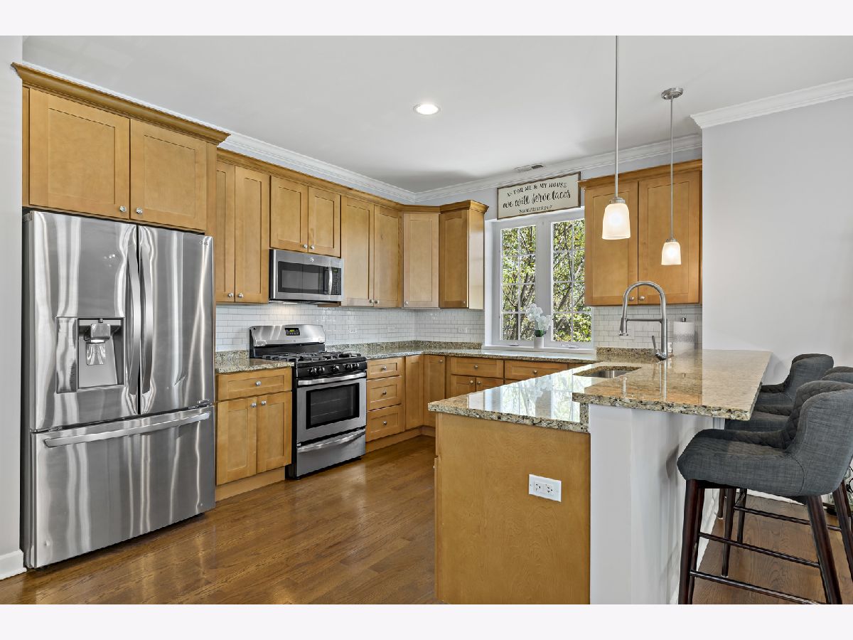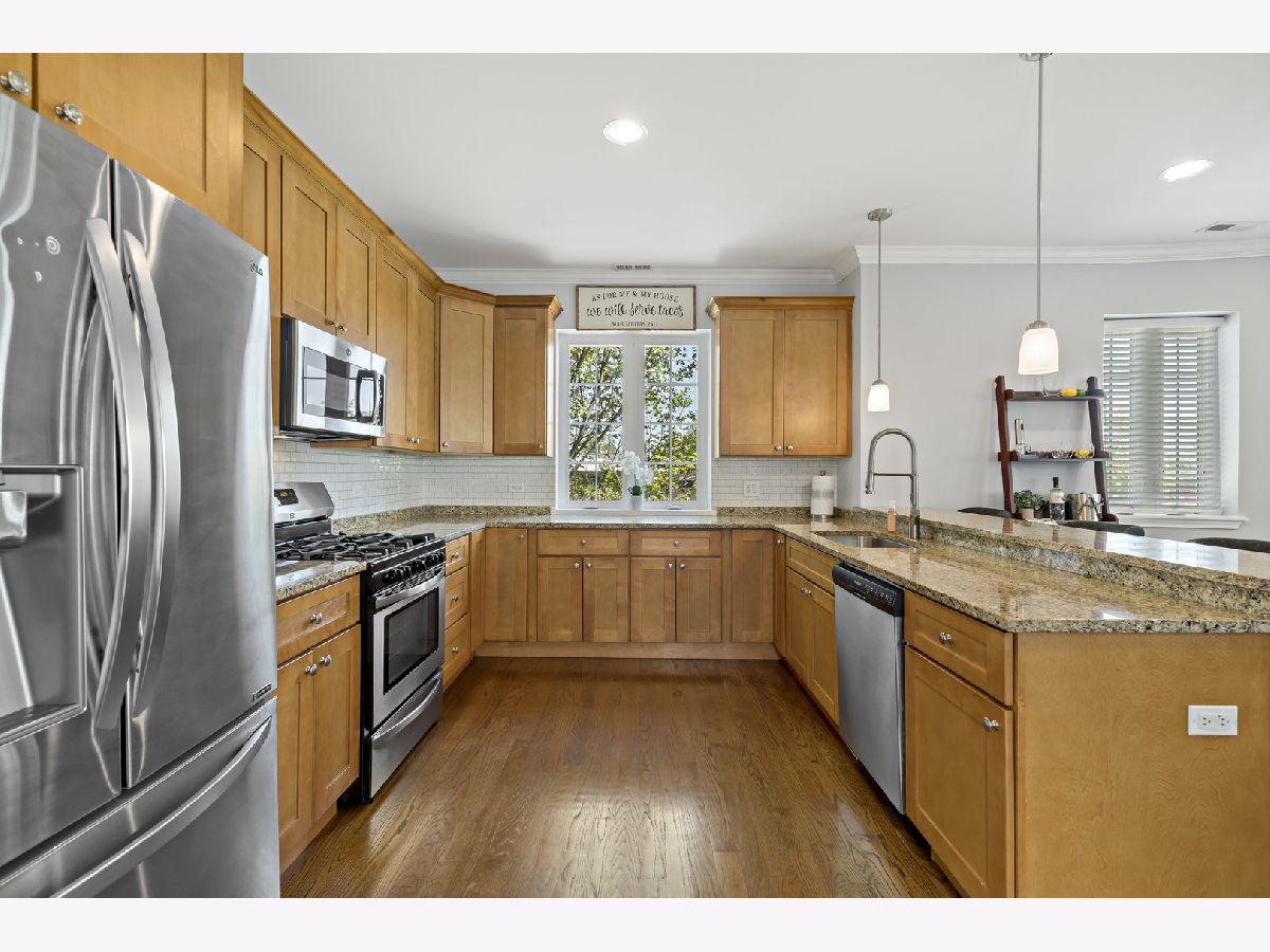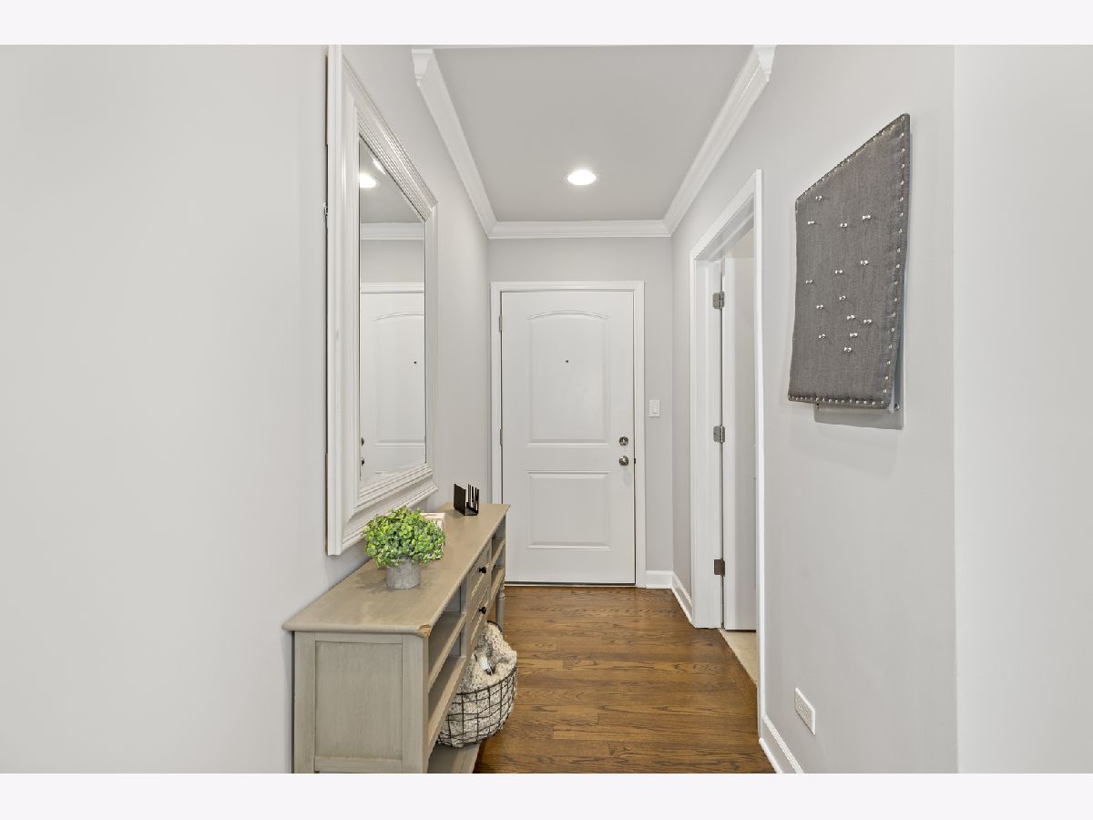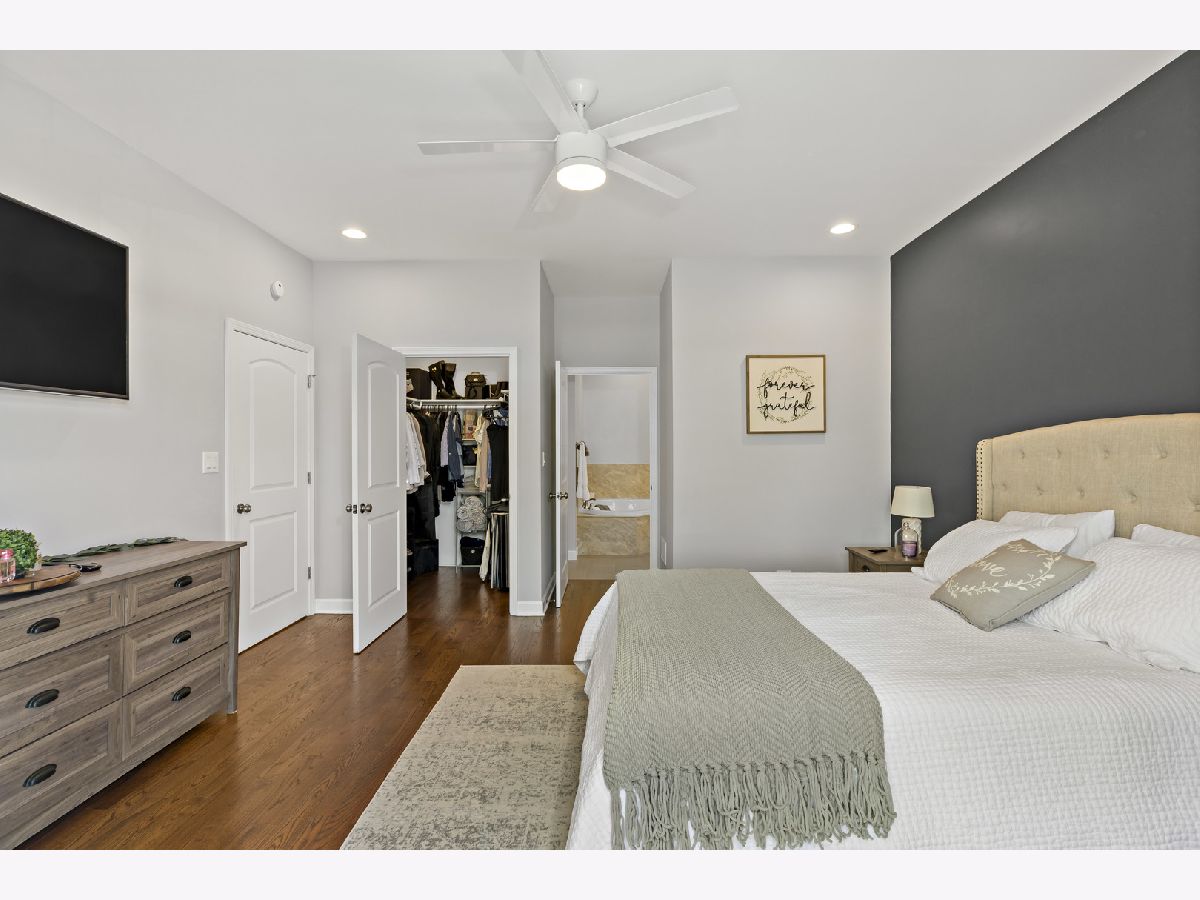 COME CHECK OUT THIS BEAUTIFUL AND SPACIOUS CONDOMINIUM!!! With nine foot ceilings and being almost 1500 square feet(1495) there is plenty of room to grow in this spacious unit. Stainless steel appliances, with beautiful granite countertops & Breakfast bar. Absolutely stunning White Crown Molding & Trim. The master bedroom offers luxurious experience with a private bath that includes a separate Shower & Tub, with a double sink. Master also includes a walk in closet, along with a balcony attached to the room. Each room has their own private balcony perfect for grilling. Built in Washer & Dryer at the entrance. With a large coat closet and long hallway connecting you to kitchen/living room. This unit also includes a HEATED GARAGE SPOT with a storage unit in the garage also. You also get access to the beautiful wood patio/balcony on the rooftop where you can soak up the sun and enjoy the views. Across the street from the gym and in a prime location. Grocery store is in walking distance. Just a mile away from the beautiful Portage Park!! Water is included in HOA Fees!! Owner has paid in full for special assessments regarding balcony so no need to worry about that.