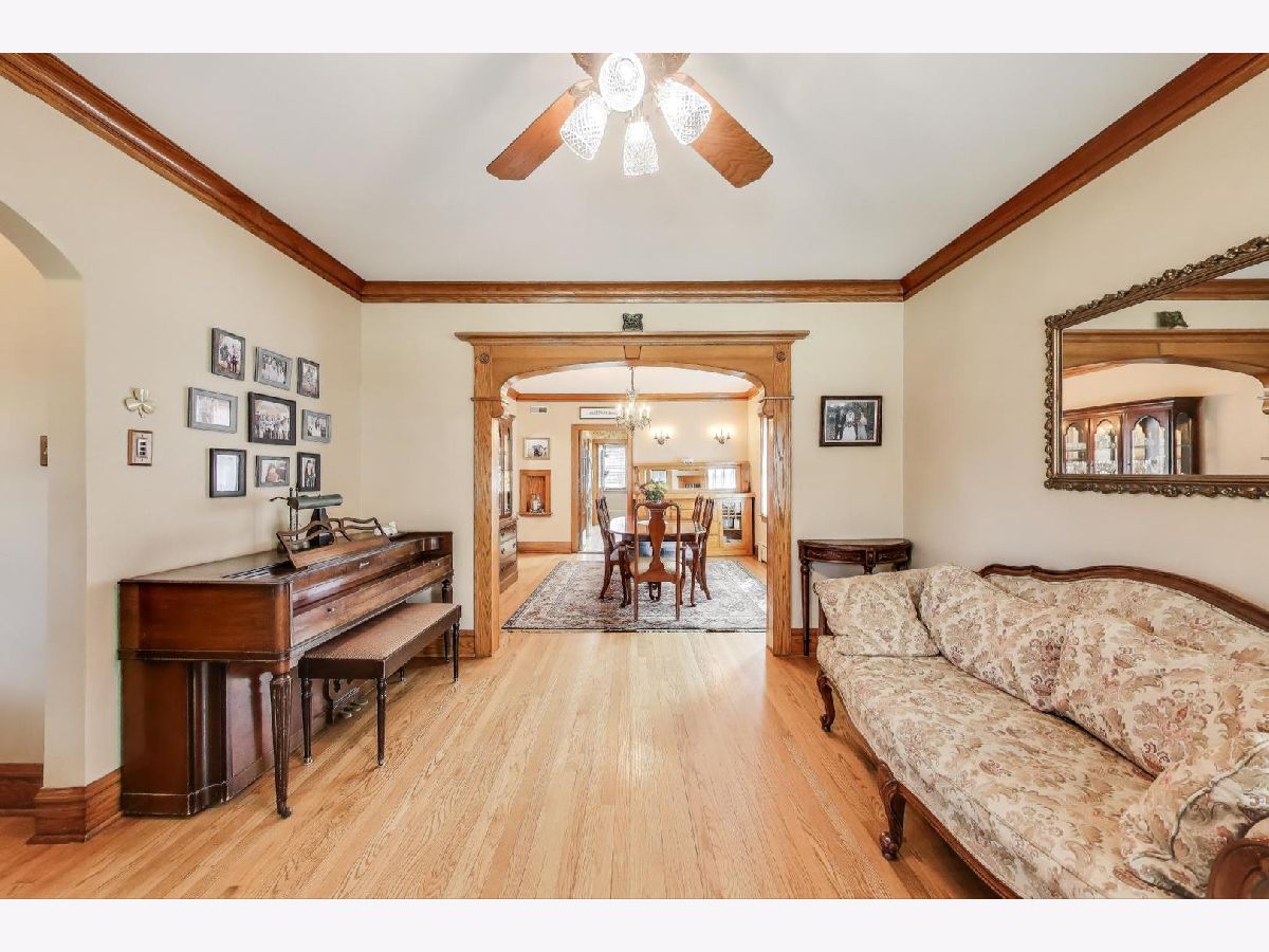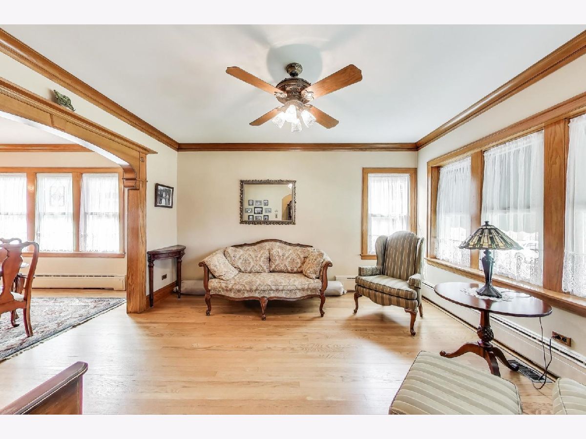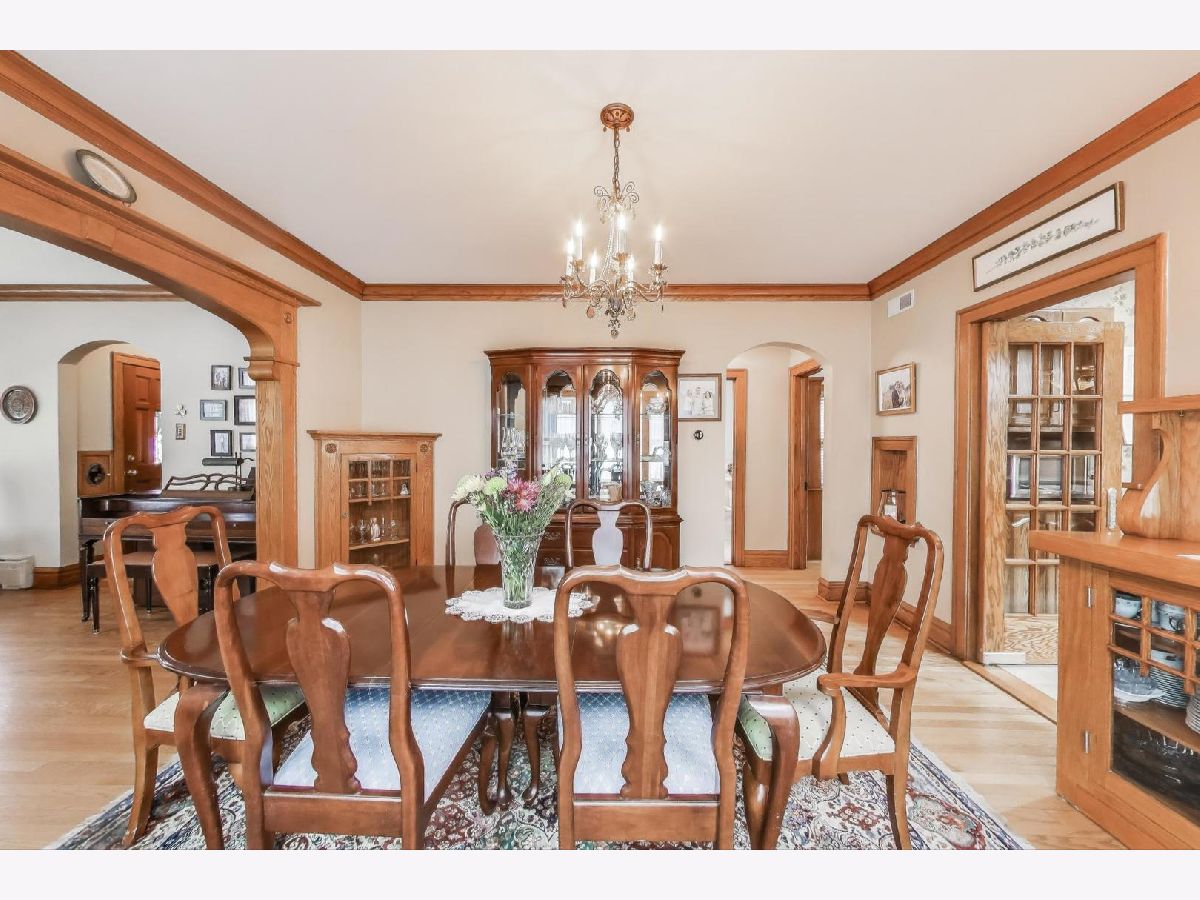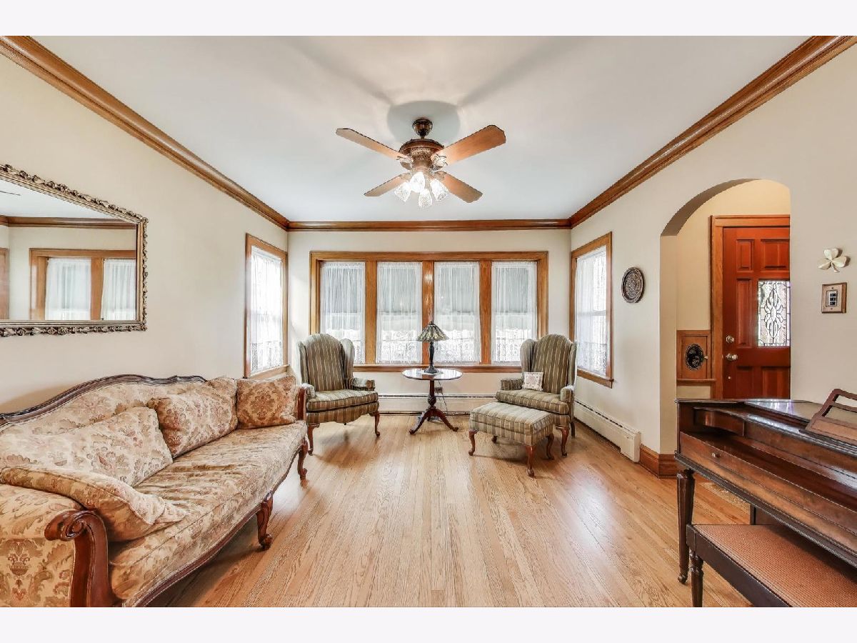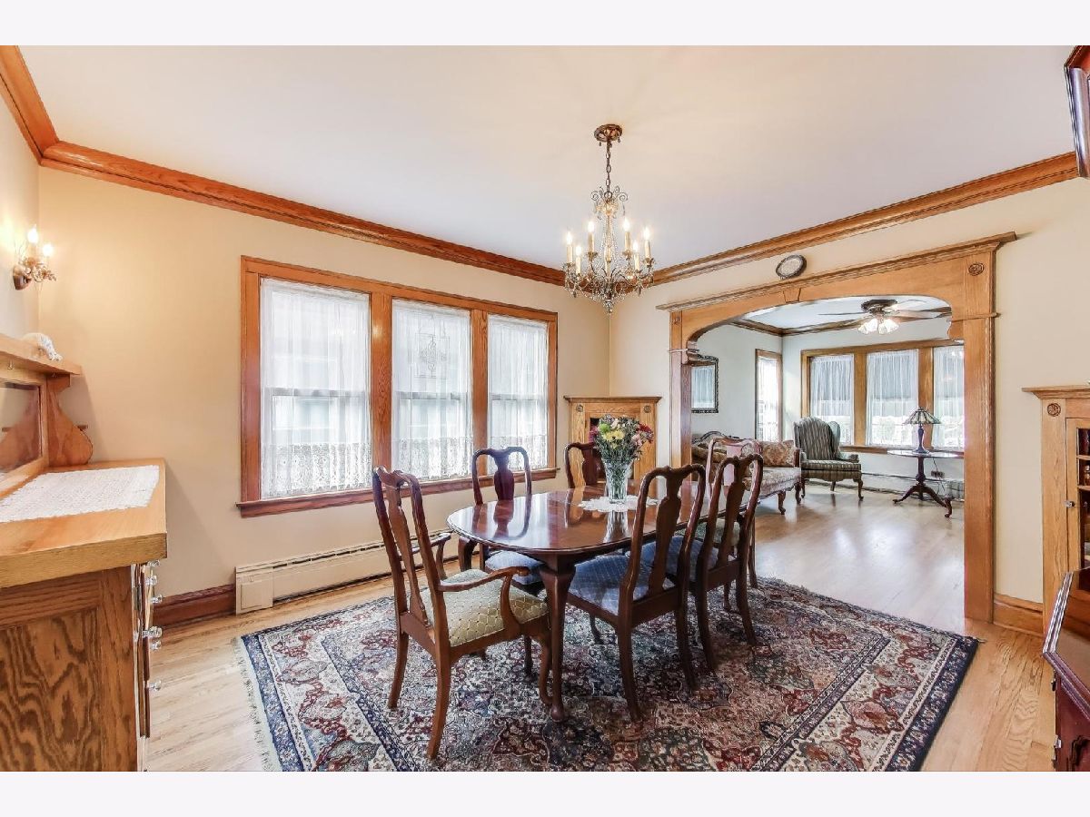 Pride of Ownership! A Must-See! Charming Chicago Brick Bungalow featuring: Impeccably preserved original oak millwork including large baseboards, single panel doors w/crystal doorknobs, BI cabinets in Dining Room and hallway, 9 Ft. ceilings w/crown molding, updated 1st floor bath (w/ cast iron tub and tub area Carrara Marble), Kitchen w/Corian counter top and island, 1st floor family room maybe converted to master bedroom, 2nd Fl: Kitchen w/fridge and stove, beautiful newer white oak floors and spacious updated bath, 2 walk-in closets, and fourth bedroom could be an office. Lower Level : Recreation Room w/fish tank (stays), electric FP and Cabinet (stays), storage room , workshop Bench and file cabinets (stays). Enjoy the beautiful yard.. perfect for entertaining: paver brick patio, perennial flowers, Koi Pond and waterfall, cedar fence, Garage with 2 doors (one opening to patio, electric hoist to overhead storage space), paved alley, Additional updates: tilt-in windows, Boiler and Hot Water Heater 2024, CAC 2023, Architectural Roof (Owens Corning) 2023 , Updated electric panel, tuck pointing 2021, plumbing, LL glass block windows, copper overhead sewer and drain tile. Close to Post Office, Stores, Library, Zoo, Train, Bike Trail, Kayak Launch, and Expressways .(Cannot Park on Tuesday on East side of Street) A MUST-SEE!