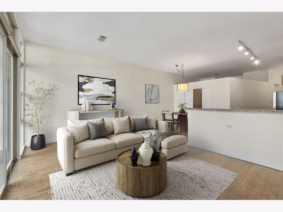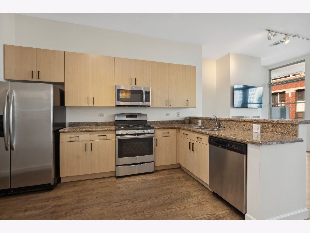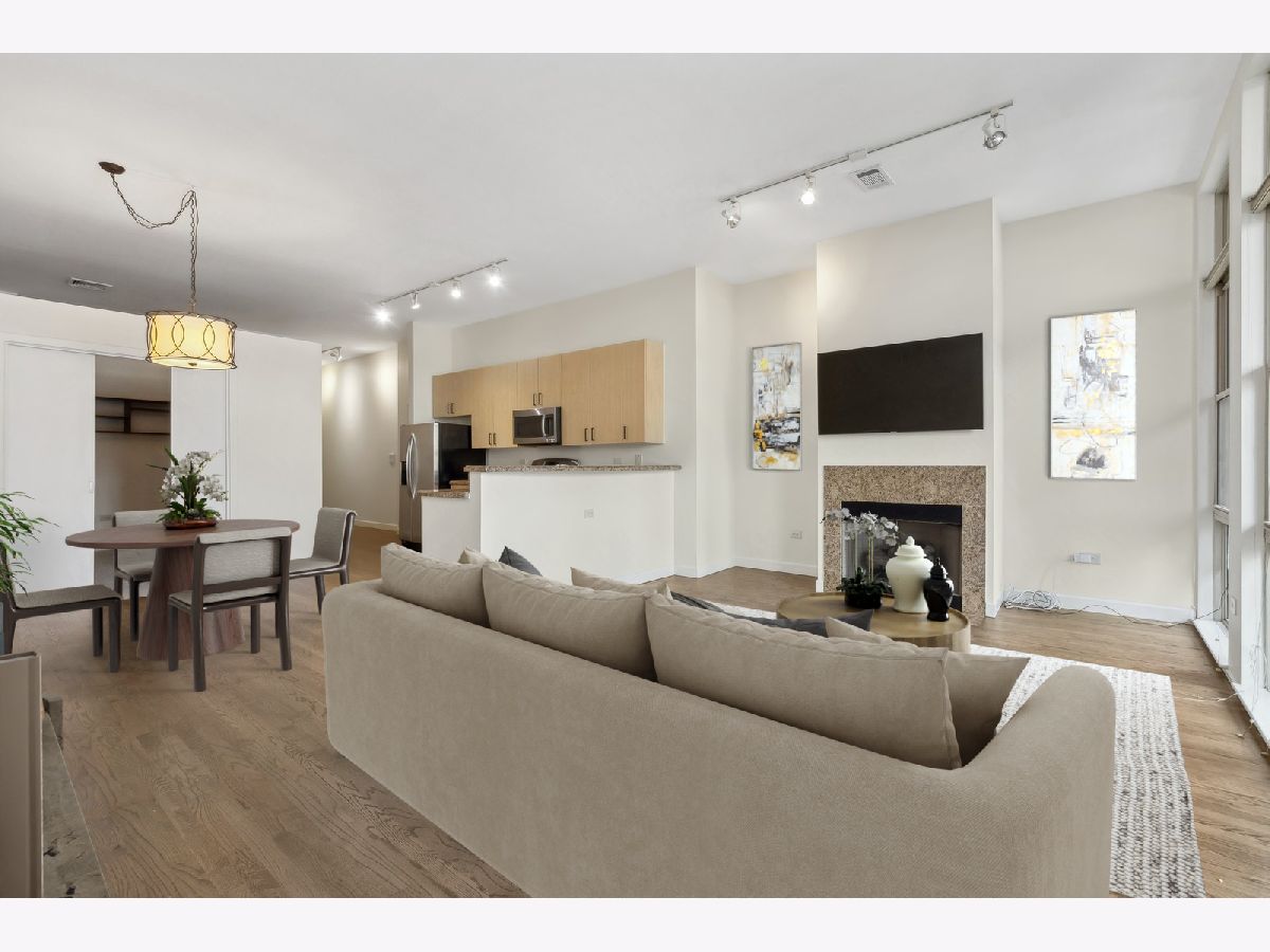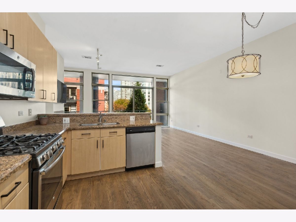 Embrace the best of city living in this rare mid-rise gem at Kinzie Station located in the highly desirable Fulton River District steps from the West Loop! This spacious two bedroom, two bathroom home offers an expansive floorplan that is perfect for entertaining with separate living/dining space. The updated kitchen features an abundance of cabinet space, granite countertops and stainless steel appliances. Other unit features include newly refinished hardwood floors, central heat/air, in-unit washer dryer, gas ventless fireplace and a large balcony which is great for outdoor entertaining! The generously sized primary bedroom leads into the partially redone primary bath with a large double vanity and nicely tiled shower/bath. Second bedroom is perfect for a guest room, den or office space and the second bath has a nice spa like stand up shower. The building offers a full range of amenities including a fitness center, party room, dry cleaners, package receiving and 24 hours door staff. Its prime location puts you within walking distance of the thriving dining scene on Randolph and Fulton Streets, the Loop, Metra and public transportation, major expressways, grocery stores, shopping and the expanded Chicago Riverwalk just a block away. Don't miss your chance to live in one of Chicago's most vibrant neighborhoods!