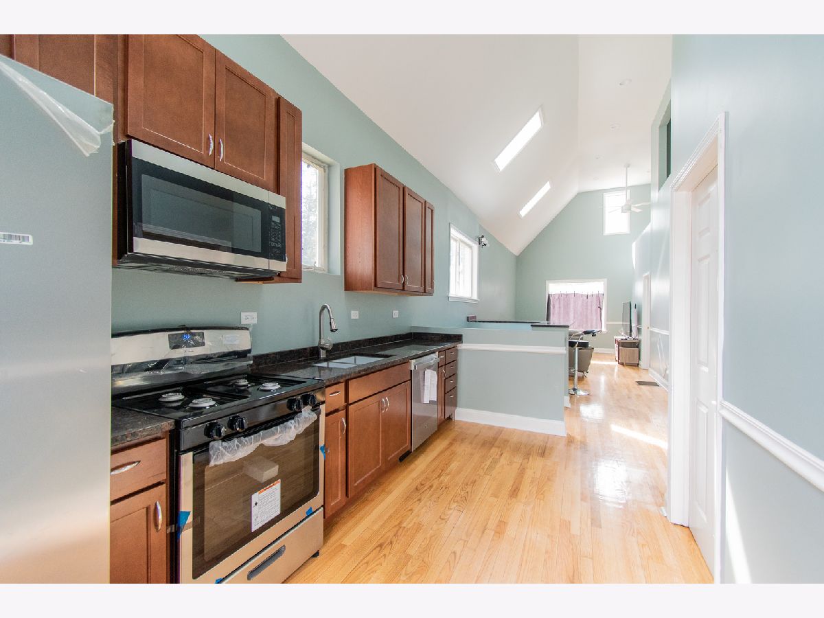 Tons of light and bright in this updated 5 bedroom 2 bath brick single family home in hot Humboldt Park. Open concept in this unique home with huge tall ceilings, skylights and hardwood floors thought-out the 1st level. Kitchen with 42" cabinets, granite countertop and stainless steel appliances. Kitchen leads to a huge rear deck for summer fun. Lower level is finished with family room, 2 bedrooms, and laundry room. 2 car garage. Close to Humboldt Park, CTA transportation, Green line, I-290 Expressway.