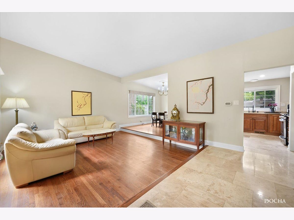 A split level with 3 bedrooms and 2 bathrooms with all hardwood floors in a quiet neighborhood. Renovated in 2012 with a newer kitchen (refrigerator, stove, dishwasher, granite countertops, etc.), new windows, washer & dryer, and bathrooms. Two car garage with a separate laundry room that connects to the backyard. A convenient location that is near Centennial Park, Lovelace Park, Old Orchard Mall, and more. Great schooling at Romona Elementary School, Highcrest Middle School, Wilmette Junior High School, and New Trier High School. Buyer pays Wilmette transfer taxes.