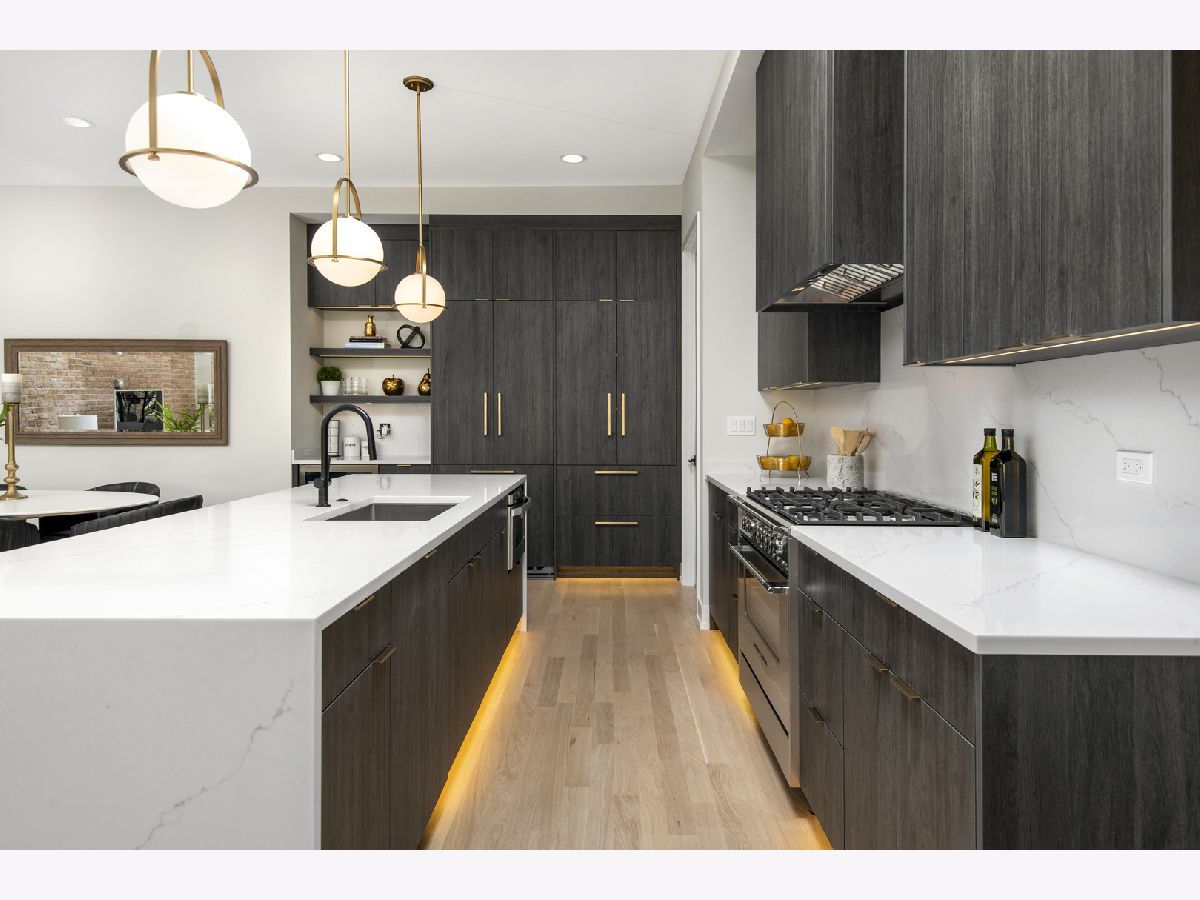 Stunning extra-wide three bedroom three and a half bath duplex up in the Southport Corridor and Burley School District. Situated on an oversized lot on the corner of Greenview and School, this duplex-up home offers plentiful outdoor space on the 3rd floor roof deck. The extra large, open kitchen features professional grade Fisher & Paykel appliances, quartz countertops with waterfall edges, tiled back splashes and premium accent lighting package. Three large bedrooms, including the owner's suite with walk in closet with built in organizers and designer bath with oversized shower and double vanity. The upper floor living room features a wet bar and it opens out to the roof deck. Additional storage and garage parking included. Designer inspired finishes throughout include solid 3 1/4 inch white oak floors, custom staircase, fixtures by Grohe, Moen and Kohler, framed vanity mirrors and a premium lighting package throughout. Unit is walkable.