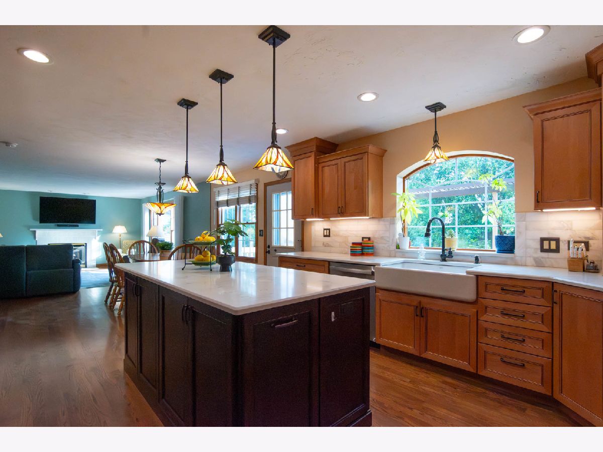 Experience elevated living in this stunning updated home where every detail creates opportunities for connection and comfort. The exceptional curb appeal with new Dutch Lap siding and stamped concrete walkway leads to your private front porch sanctuary, perfect for savoring morning coffee or unwinding with evening conversations. Enter through the dramatic two-story foyer with sweeping staircase and elegant oil-rubbed bronze lighting that sets the tone for memorable first impressions with every guest. The versatile living room, currently arranged as a music room, invites creativity and gathering, while the sophisticated formal dining room with rich two-tone decor and crown molding transforms every meal into a special occasion. Beautiful hardwood floors guide you into the heart of the home where the open-concept kitchen and family room design makes entertaining effortless and daily routines a pleasure. The chef-inspired kitchen featuring Omega Dynasty Maple cabinets, quartz countertops, Carrara tile backsplash, premium stainless appliances with induction cooktop, and expansive center island turns meal preparation into a social experience while keeping conversations flowing. Retreat to the adjacent family room where the cozy fireplace creates intimate moments and large windows frame your private backyard oasis like living artwork. Escape to the vaulted-ceiling primary suite that feels like a luxury resort getaway, complete with a spa-like renovated ensuite bathroom featuring a walk-in shower and custom closet system that simplifies your daily routine. Three additional flexible bedrooms adapt to your changing needs, whether creating productive home offices, welcoming overnight guests, or pursuing favorite hobbies. Premium touches including recessed lighting, solid wood doors, and rich wood trim throughout reflect attention to quality that you'll appreciate daily. Step outside to your expansive deck where entertaining becomes effortless, overlooking the lush yard with clay brick patio, basketball court, and mature perennial gardens that provide year-round beauty and plenty of recreation opportunities. The finished basement expands your living possibilities with abundant storage and flexible space for fitness, hobbies, or relaxation away from it all. This meticulously maintained home doesn't just offer impressive features-it creates the backdrop for the lifestyle you've been envisioning. Outdoor enthusiasts will appreciate the abundance of hiking and biking trails in the local Lake County Forest Preserves. Commute effortlessly with easy access to the Metra train stations connecting you to downtown Chicago. Conveniently located near various shopping and dining destinations in Gurnee and Kenosha and a short drive to the Navy Base. Don't miss out on this gem! Call now to schedule your appointment and experience the Wadsworth lifestyle today! No HOA! Multiple offers received. Sellers request Highest and Best offers by 6pm Sunday June 28th.