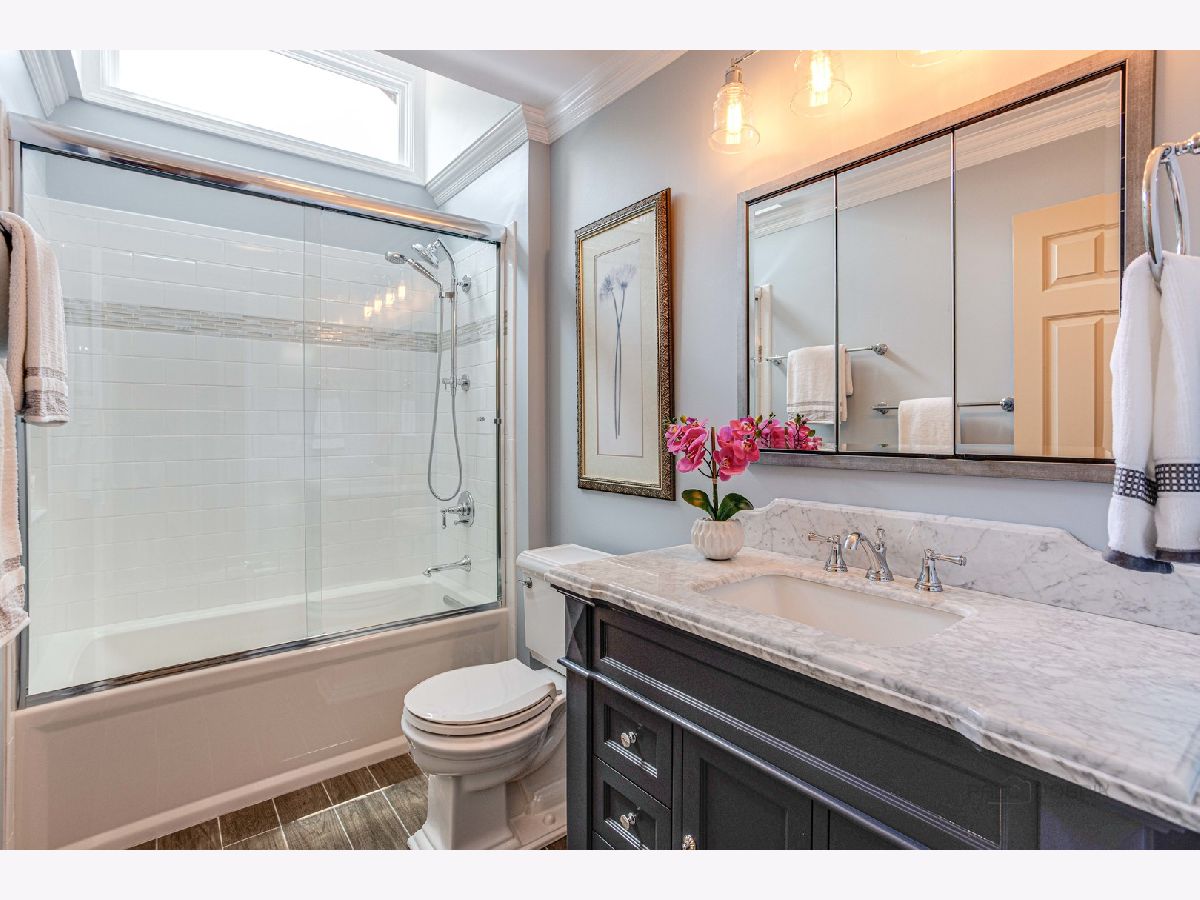 Step away from all of the hustle and bustle into this expansive custom built two-story home. It is tucked away towards the end of a lovely private street BUT conveniently close to everything, schools, train, shopping, and not far from The Glenn or Glenview. There are beach rights to a neighborhood lake, with boating, fishing and ice skating. The oasis awaits... the door swings open, you are greeted by a gracious entry, a full formal dining room with trayed ceiling to the right and to the left is the private study with mahogany built-ins. Flow through the glass French doors to the living room with vaulted ceiling, a gas fireplace and tall windows. Next, enter the family room which features a gorgeous mahogany bar adorned with leaded glass and views of the private back yard. Sliders off the family room invite you to a delightful screened in porch. Crown molding, herringbone wood floors, solid 6 panel wood doors, archways and varied ceiling styles are just a few of the quality details in this custom home. The kitchen, the heart of the home, boasts loads of storage space with a large island, solid wood custom cabinetry, an enviable walk in pantry and beautiful granite countertops. A large breakfast nook is surrounded by 180 degree bay windows with garden views. The first floor bedroom, with a recently updated full bath on the hall, is a perfect in-law or au pair suite. A large first floor laundry and mudroom makes this a true family home. The attached oversized 2 car garage can easily fit two full size Suburban's! Upstairs are 3 very generous sized bedrooms (with easy conversion to a 4th!). Full hall bath was beautifully renovated in 2019. The master suite is the pinnacle of luxury with large sitting area, his/hers custom finished walk-in closets, and massive en suite bathroom with dual vanities, whirlpool tub, and large walk-in shower. The basement will blow you away with extra living space. It is fully finished with two bedrooms and a full bath, a large rec room, a second home office with built-in desk, as well as a craft room or wine cellar! Mechanicals are newer and there is a whole house generator to boot. The Front and Back yards are private with mature landscaping. With low taxes, fabulous schools, and a charming neighborhood, this one is not to be missed!