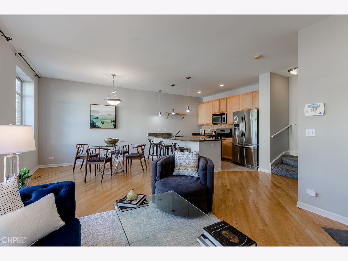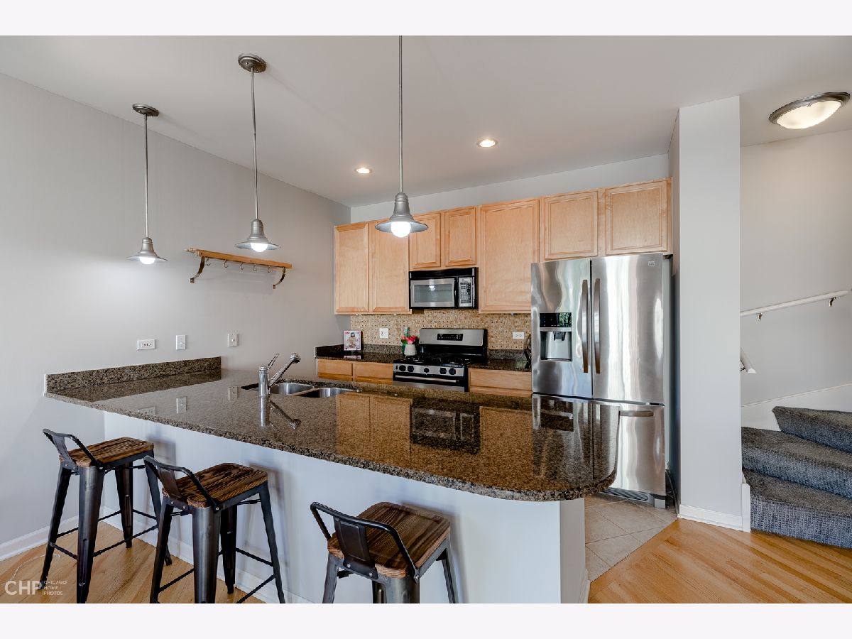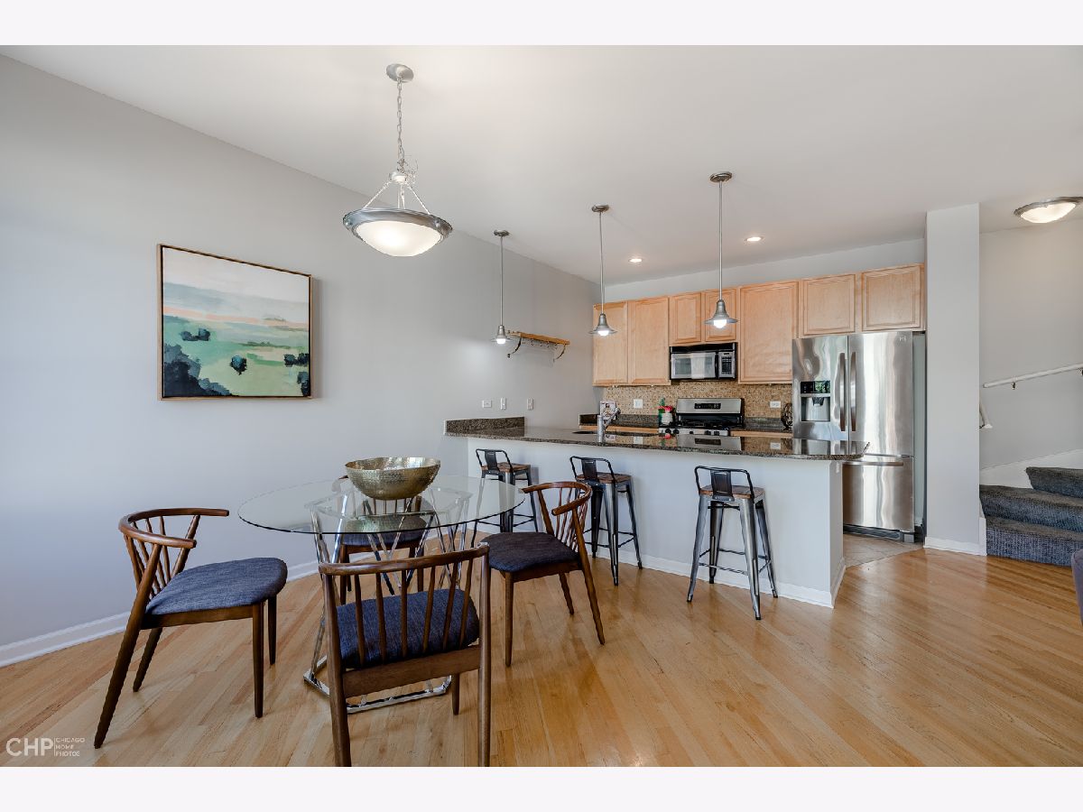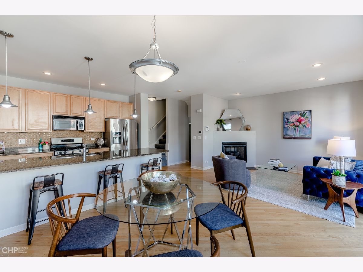 Spacious & bright 2 Bedroom + Den/Office, 2.5 Bath townhome with 2 car parking in Avondale's popular Belmont River Club, known for its privacy & tranquility! East-facing home enjoys tons of light, with lots of separation perfect for privacy. The home boasts spacious living room with fireplace & juliet balcony, dining area, open kitchen & bar seating for 6 - a space perfect for entertaining or just plenty of room for daily life! King-sized primary bedroom suite on its own floor, with 2 walk-in closets + bath with double sinks. On the top floor, a 2nd en-suite bedroom can also double as family room - and steps out to the roof deck, with views of the downtown skyline and Chicago river. The main floor den is perfect as a home office, with a big window, or guest room, home gym - whatever you can envision. There's even a powder room on this level, too! Private, attached 1 car garage + 2nd space on the pad out front. Hardwood floors, central air/heat and in-unit laundry complete this home, in sought after community. Quiet & well maintained complex sits on the Chicago River, offering easy access to Riverwalk, and close to great restaurants (Honey Butter Fried Chicken, James Beard Nominated Parachute, Kuma's Corner), Metropolitan Brewing Company, Mariano's, Roscoe Village, expressway, CTA and the Clark Park Boathouse (rowing/kayaking). May qualify for FHA spot approval. Come home!