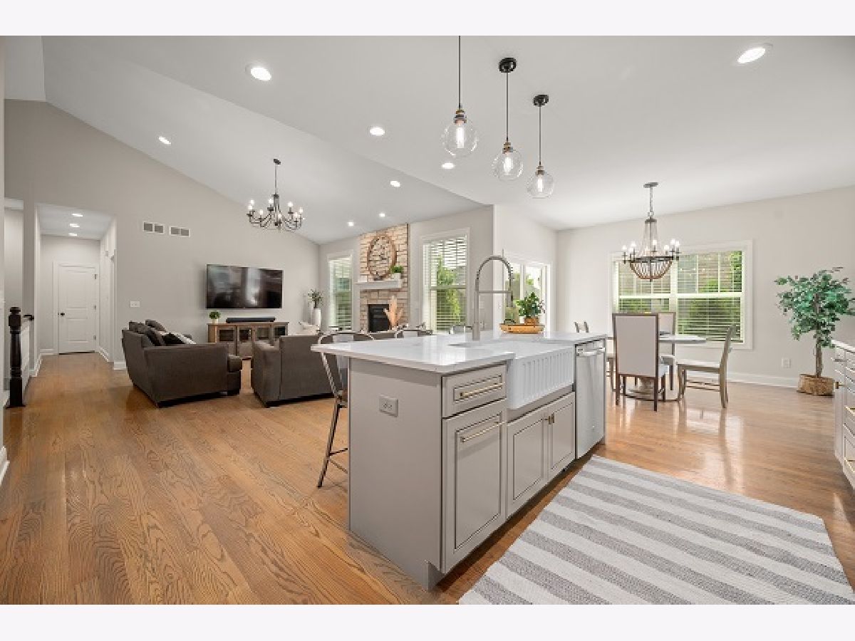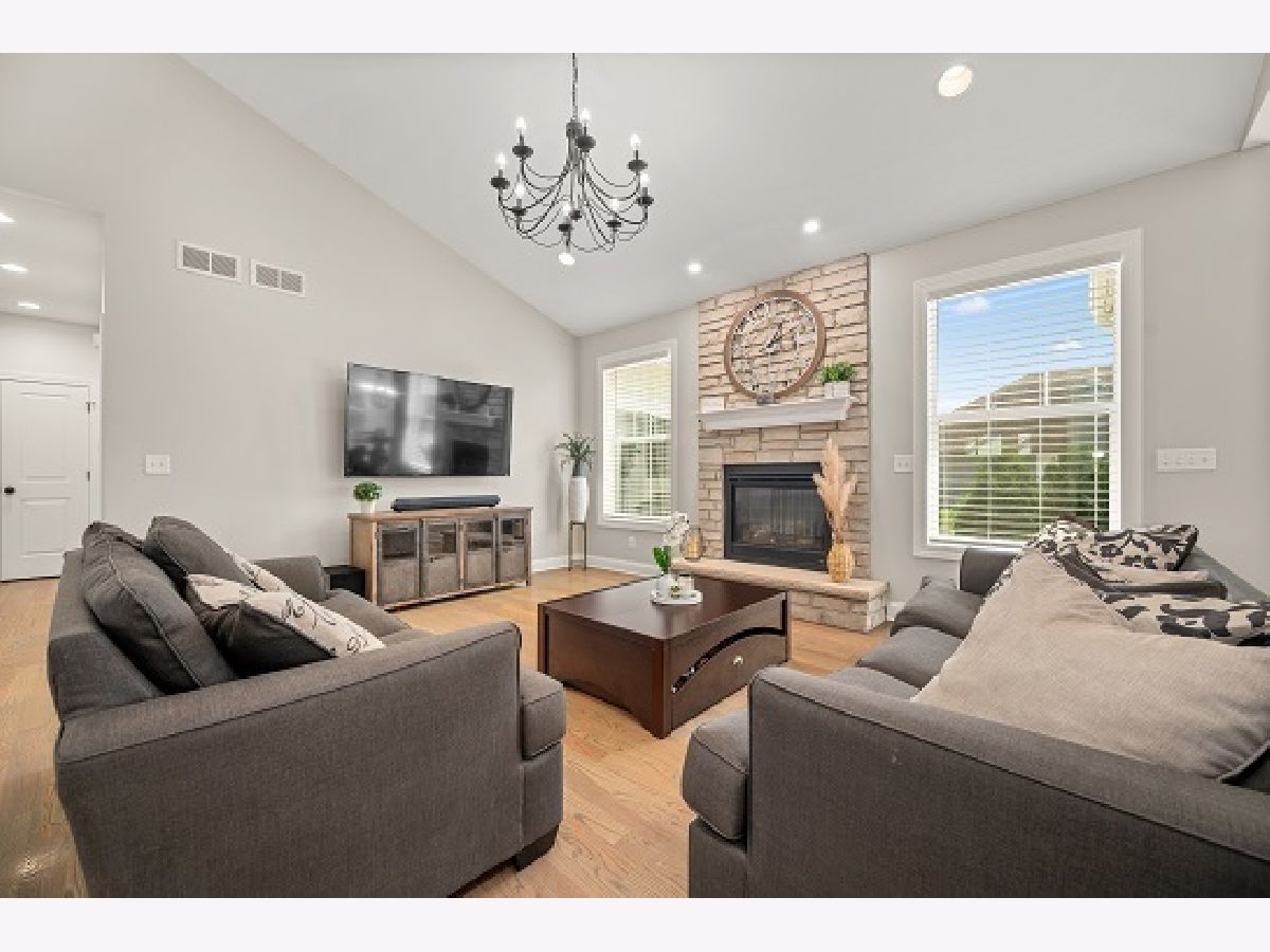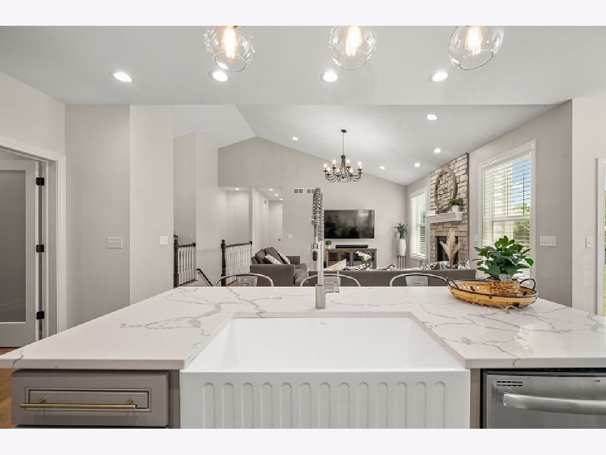 A careful buyer's dream can be realized NOW in this 4-year NEW custom-built Sean Kelly designed home. Owner's Out of State relocation is your opportunity to REAP all the benefits of this stunning 3 - 4 bedroom and 2 full bath home featuring all the modern and trendy features this home has to offer without a new construction PRICE tag! Once you step inside, you will be amazed by the open-flow concept featuring the semi-vaulted living room. Delightfully positioned handsome real stone gas/start log floor-to-ceiling fireplace with hearth. Solid wood doors, 6" wide baseboard, and warm hardwood with an antiqued finish plank flooring that embraces all the living areas with the exception of bathrooms. Kitchen features custom soft-close cabinetry, 42" uppers with crown molding, quartz countertops, backsplash, over cabinet LED lighting with remote control, LED lighting under kitchen island with remote control, USB counter outlets, and stainless steel appliances. Entertaining-sized eat-in Quartz waterfall-designed island, overlooking a dining and airy living area perfect for entertaining guests with patio doors opening onto the concrete patio. Convenient first floor laundry room boasts plentiful cabinetry, with hot/cold utility vanity sink, 6-month-old Samsung top load high capacity wash machine, and 2-year-old Samsung dryer with steamer PLUS handy built in seating and storage. Lovely HI- TECH owner's suite with smart switch for the bedroom can lighting that works with Alexa or mobile device. Adjoining spa-like bath retreat featuring tile floors, dual bowl soft close/quartz top vanities, tiled shower, and custom-built /walk-in closet for an extensive wardrobe. Convenient private sliding doors from the master suite onto the concrete patio. Spacious bedrooms two and three share a full bath with quartz top soft close vanity, tile floor, and tiled shower. Basement boasts 9' ceilings, exterior walls have been wood framed, insulated, electric ran for outlets and drywalled 12 x 14 room in the basement includes a 4x12 walk-in closet and is perfect as an office/bedroom. DREAMY 4-car garage boasts 11' ceilings with 8' overhead insulated garage doors for your sizeable vehicles, commercial-grade epoxy floor with 3 color flakes and commercial grade clear topcoat, hot and cold water utility sink, hot and cold water hose bib with retractable wall mounted hose reel, commercial 80,000 BTU natural gas garage heater with wall mounted thermostat, HI powered LED garage lighting, motion switches, HD cameras inside and outside of the garage with 24/7 video recording and 7-day playback. SO MUCH MORE TO OFFER and ENJOY in this one-owner custom-built home! Close to I-88. Great location to the local fine dining establishments and fast food and shopping! HURRY for this great opportunity before it's gone!