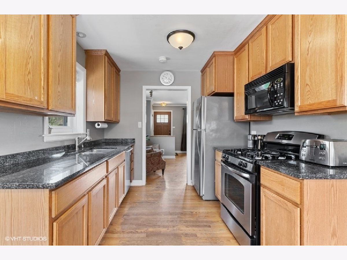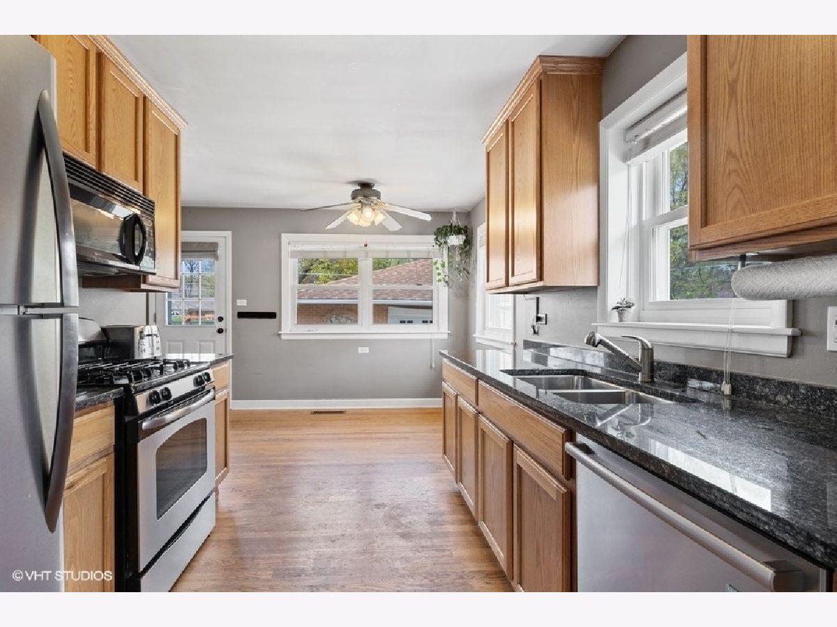Solid brick 3 bed 2 bath ranch with full finished basement! Excellent location on a tree lined street. Relax and enjoy the covered sitting porch. Welcome guests at your lovely front door. Inviting living space has hardwood floors white trim, soft gray walls. Warm kitchen cabinets with stainless steel appliances and granite counters. Crisp white updated windows. Huge recreation room in basement-plenty of space for a media area, gaming, entertaining+. Full 2nd bath in basement. 2nd utility kitchen in basement, backyard access to basement. Hey this could be a great private space down here!!!! Tons of storage. Nice big yard with lush green grass, fun playset, patio. Ample concrete driveway doubles as a great basketball court! Huge Brick 2+car garage! This is Home!