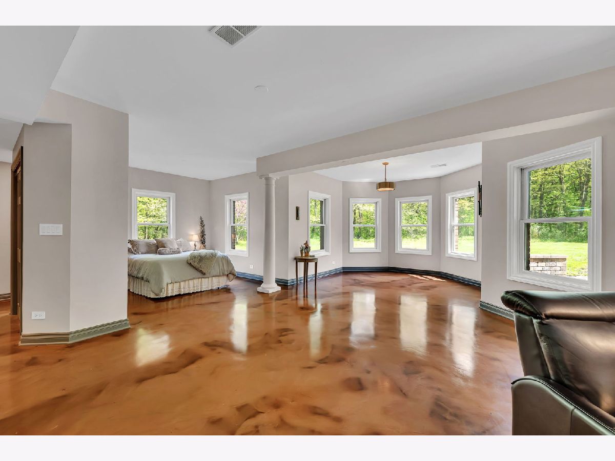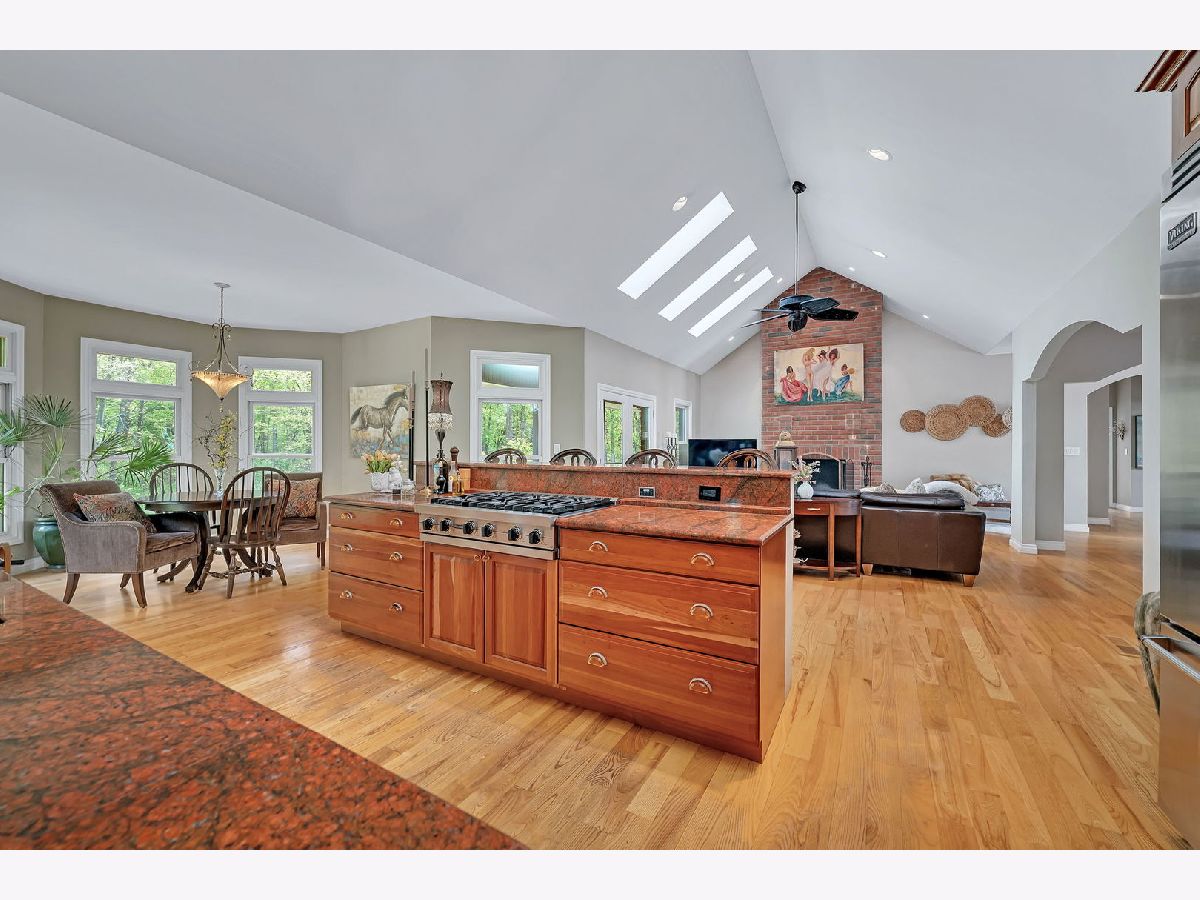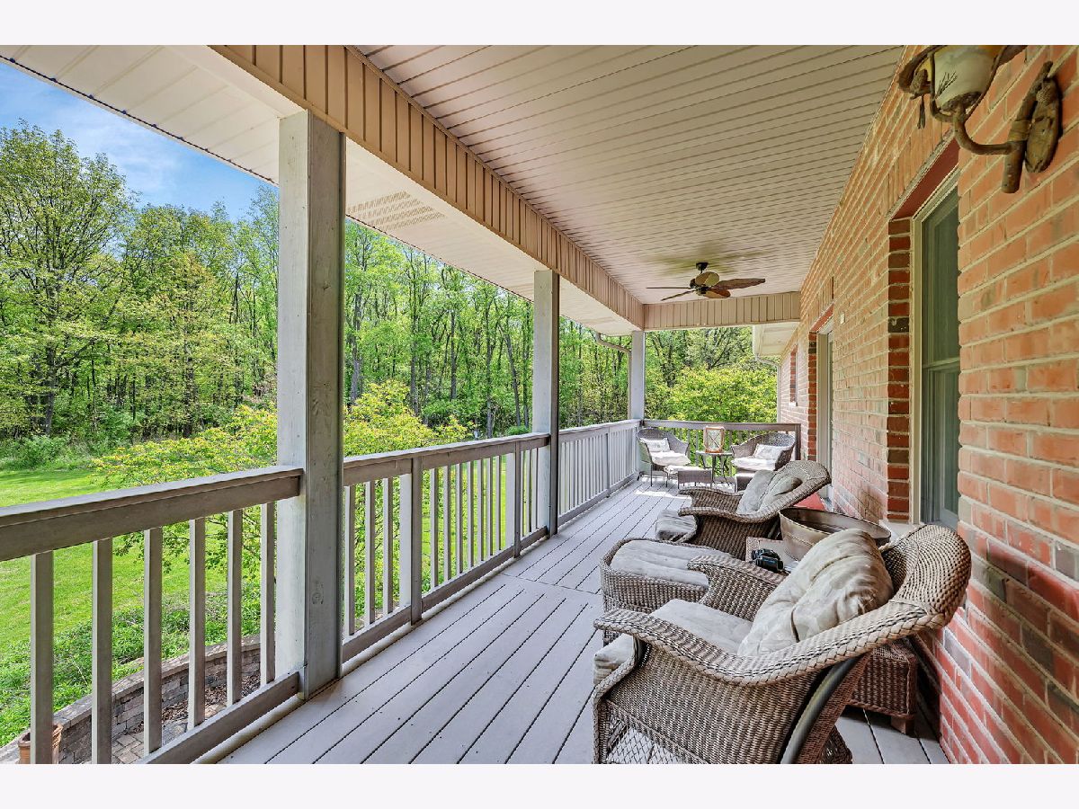 Calling all Homebodies! Rustic elegance defines this home- cozy yet chic w/ a casual upscale vibe. Feel like a MILLIONAIRE, surrounded by 10+ ACRES of woodlands along THE MAZON RIVER w/ a home curated for entertaining family & friends while being "the special place" you've carved out as your own beautiful and peaceful sanctuary. TUCKED AWAY from the road between farmland and woodland offering a secluded stress free living experience where nature is your neighbor. As you follow the driveway back to the home, you pass an old Oak & Hickory Grove perfect for picnics, bonfires and lazy days on the hammock. As you pull up to the home, a meandering paver walkway invites you to the front entrance and the restful art sculpture in front encourages you to take your time, listen to the birds and take a deep breath. Coming inside the home you are met with a MASSIVE WOW FACTOR that never gets old & will make you proud every time. CATHEDRAL CEILINGS, a floor to ceiling real wood FIREPLACE & the impactful view of the trees define the GREAT ROOM that is the perfect place for gathering. Home chefs wouldn't have it any other way with the openness that defines the saying, "good food, good friends, good times". The flow between the different spaces within the larger Great Room area makes both big parties and simple game nights a memorable experience. There are two maintenance free TREX DECKS. The COVERED BACK DECK is a favorite place to unwind, birdwatch and count your blessings even while the rain is falling or retreat to the EXPANSIVE SIDE DECK for weekend dinners on Autumn evenings surrounded by mounds of hydrangeas, a stunning red maple tree, plenty of gold leafed hickory and pine trees. The kitchen is the hub of this main space with all professional grade VIKING APPLIANCES, loads of cabinet space for all your favorite cooking utensils plus the WALK-IN PANTRY is simply a dream affording you the luxury of organizing all your specialty equipment & your secret stash of chocolate. As an extension of the kitchen is The Oven Room, housing a built-in ITALIAN STYLE WOOD FIRED OVEN that is the highlight of the Winter and Fall Seasons. Wood fired old world pizzas are one of many possibilities along with the ambiance of the oven itself is truly a special quality of this home that accentuates its' inherent personality of being a cozy retreat for homebodies. Just off The Great Room is an expansive 400 sq ft+ LIVING ROOM with SOARING CEILINGS and beautiful views of the woodlands. This room is drenched in possibilities to accommodate the power of play for you & your friends, a music room for jam sessions, a playroom, or simply another gathering space. There are THREE BEDROOMS ON THE MAIN LEVEL that invoke a restful & cozy nights sleep. The master bedroom has a large bathroom, walk in closet and laundry en suite. The master bath is finished in SLATE AND STONE TILE, whirlpool tub, and marble. The second full bath is also finished in slate with a rain shower fixture, soaking tub & a nature inspired vessel sink. The lower level features RADIANT-HEATED EPOXY FLOORS that shimmer with natural light by day and glow under ambient lighting at night - ideal for movie marathons, record listening, or fireside reading. A large FOURTH BEDROOM currently serves as a Wellness Room with an infrared sauna (available separately). A gorgeous bathroom with a walk-in CERAMIC TILE SHOWER and custom vanity completes this level. The lower level FRENCH DOORS open to a paver patio perfect for your competition BBQ smoker always ready for your next summer party. The rain water harvesting system feeds a tranquil WATERFALL as you sit among the native plantings that serve pollinators like hummingbirds, butterflies, and honey bees. Grab the tubes or kayaks and float the river or go fossil hunting and fishing while taking in the exceptional treasure and wild nature of The Mazon River. A stylish, cozy & well-loved home surrounded by nature awaits.