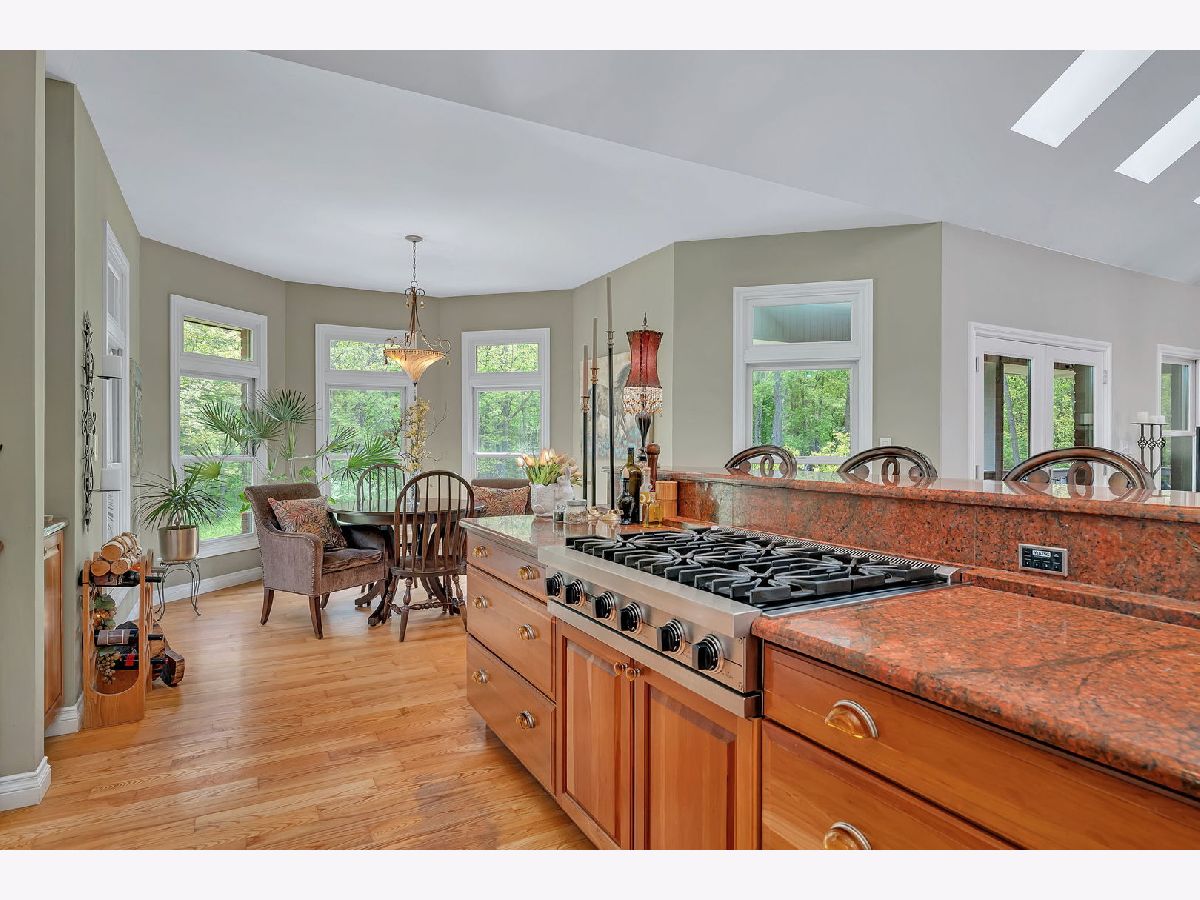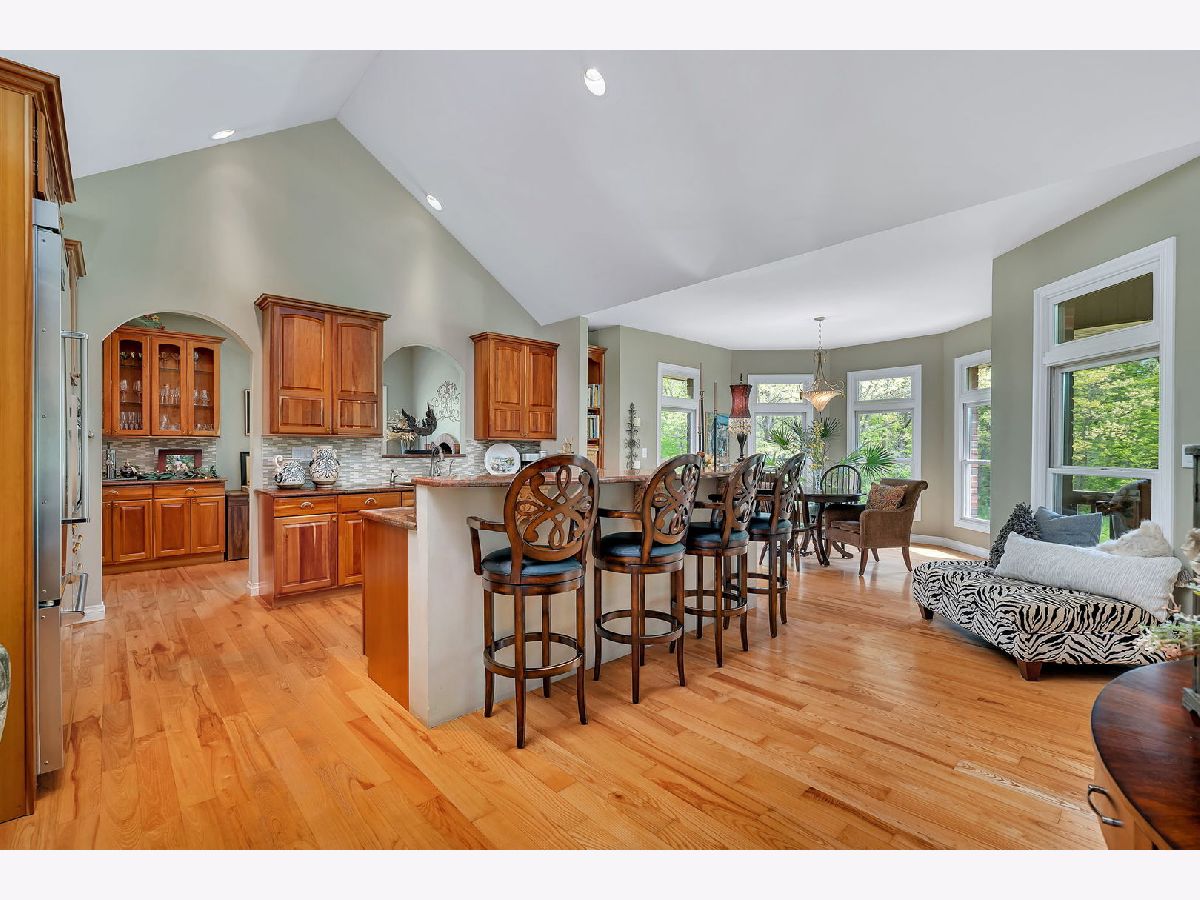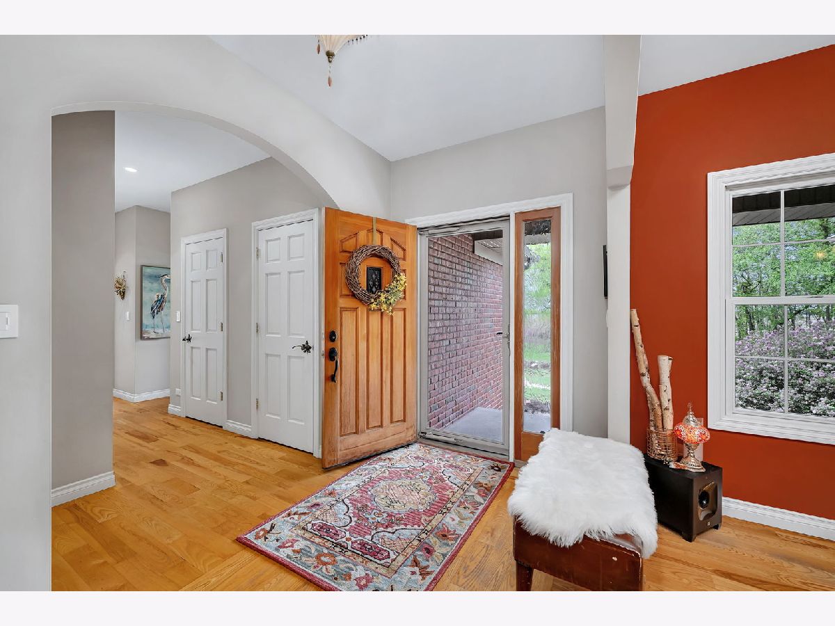 Calling all Homebodies! Rustic elegance defines this home- cozy yet chic w/ a casual upscale vibe. Feel like a MILLIONAIRE, surrounded by 10+ ACRES of woodlands along THE MAZON RIVER w/ a home curated for entertaining family & friends while being "the special place" you've carved out as your own beautiful and peaceful sanctuary. TUCKED AWAY from the road between farmland and woodland offering a secluded stress free living experience where nature is your neighbor. As you follow the driveway back to the home, you pass an old Oak & Hickory Grove perfect for picnics, bonfires and lazy days on the hammock. As you pull up to the home, a meandering paver walkway invites you to the front entrance and the restful art sculpture in front encourages you to take your time, listen to the birds and take a deep breath. Coming inside the home you are met with a MASSIVE WOW FACTOR that never gets old & will make you proud every time. CATHEDRAL CEILINGS, a floor to ceiling real wood FIREPLACE & the impactful view of the trees define the GREAT ROOM that is the perfect place for gathering. Home chefs wouldn't have it any other way with the openness that defines the saying, "good food, good friends, good times". The flow between the different spaces within the larger Great Room area makes both big parties and simple game nights a memorable experience. There are two maintenance free TREX DECKS. The COVERED BACK DECK is a favorite place to unwind, birdwatch and count your blessings even while the rain is falling or retreat to the EXPANSIVE SIDE DECK for weekend dinners on Autumn evenings surrounded by mounds of hydrangeas, a stunning red maple tree, plenty of gold leafed hickory and pine trees. The kitchen is the hub of this main space with all professional grade VIKING APPLIANCES, loads of cabinet space for all your favorite cooking utensils plus the WALK-IN PANTRY is simply a dream affording you the luxury of organizing all your specialty equipment & your secret stash of chocolate. As an extension of the kitchen is The Oven Room, housing a built-in ITALIAN STYLE WOOD FIRED OVEN that is the highlight of the Winter and Fall Seasons. Wood fired old world pizzas are one of many possibilities along with the ambiance of the oven itself is truly a special quality of this home that accentuates its' inherent personality of being a cozy retreat for homebodies. Just off The Great Room is an expansive 400 sq ft+ LIVING ROOM with SOARING CEILINGS and beautiful views of the woodlands. This room is drenched in possibilities to accommodate the power of play for you & your friends, a music room for jam sessions, a playroom, or simply another gathering space. There are THREE BEDROOMS ON THE MAIN LEVEL that invoke a restful & cozy nights sleep. The master bedroom has a large bathroom, walk in closet and laundry en suite. The master bath is finished in SLATE AND STONE TILE, whirlpool tub, and marble. The second full bath is also finished in slate with a rain shower fixture, soaking tub & a nature inspired vessel sink. The lower level features RADIANT-HEATED EPOXY FLOORS that shimmer with natural light by day and glow under ambient lighting at night - ideal for movie marathons, record listening, or fireside reading. A large FOURTH BEDROOM currently serves as a Wellness Room with an infrared sauna (available separately). A gorgeous bathroom with a walk-in CERAMIC TILE SHOWER and custom vanity completes this level. The lower level FRENCH DOORS open to a paver patio perfect for your competition BBQ smoker always ready for your next summer party. The rain water harvesting system feeds a tranquil WATERFALL as you sit among the native plantings that serve pollinators like hummingbirds, butterflies, and honey bees. Grab the tubes or kayaks and float the river or go fossil hunting and fishing while taking in the exceptional treasure and wild nature of The Mazon River. A stylish, cozy & well-loved home surrounded by nature awaits.