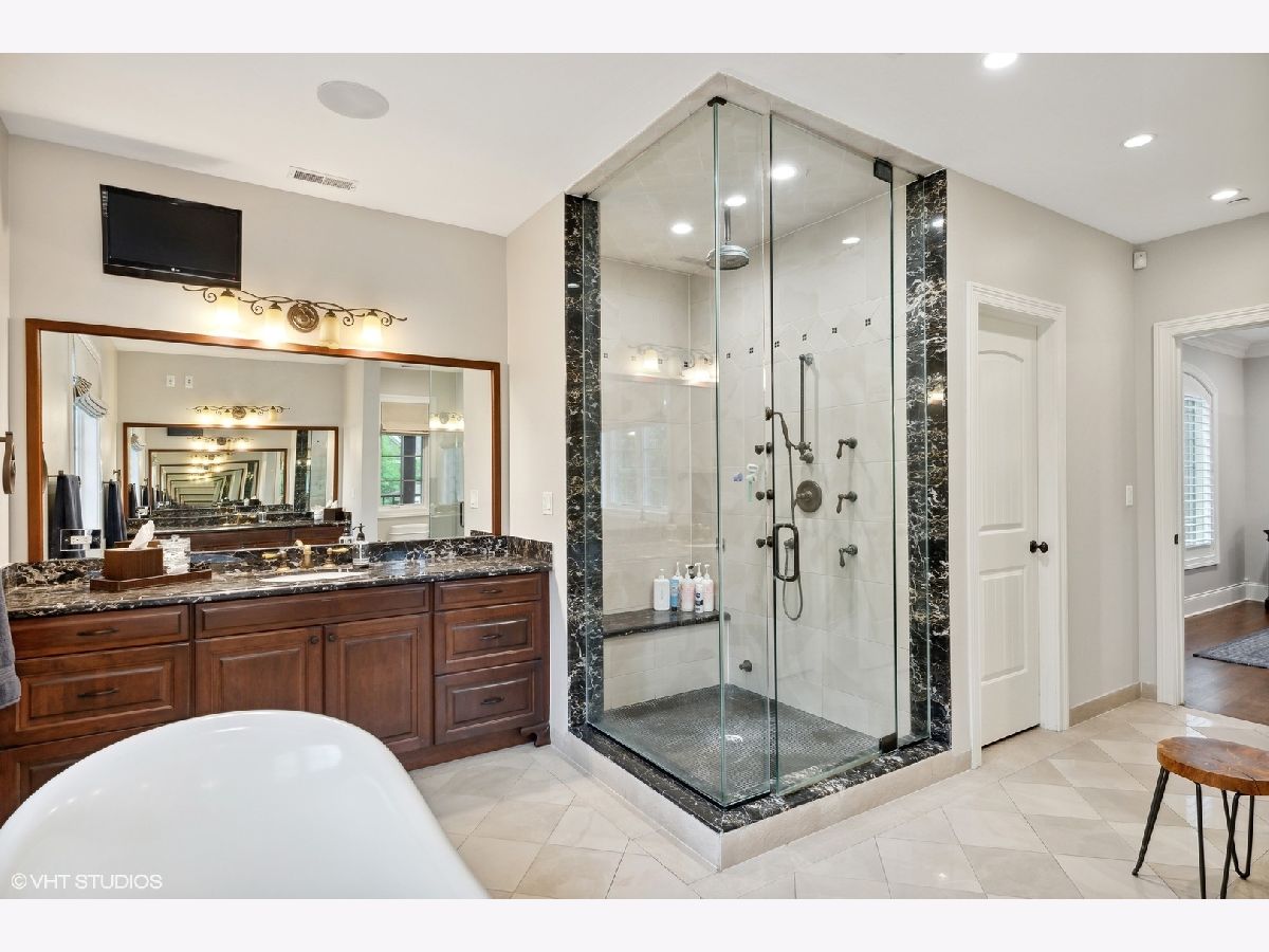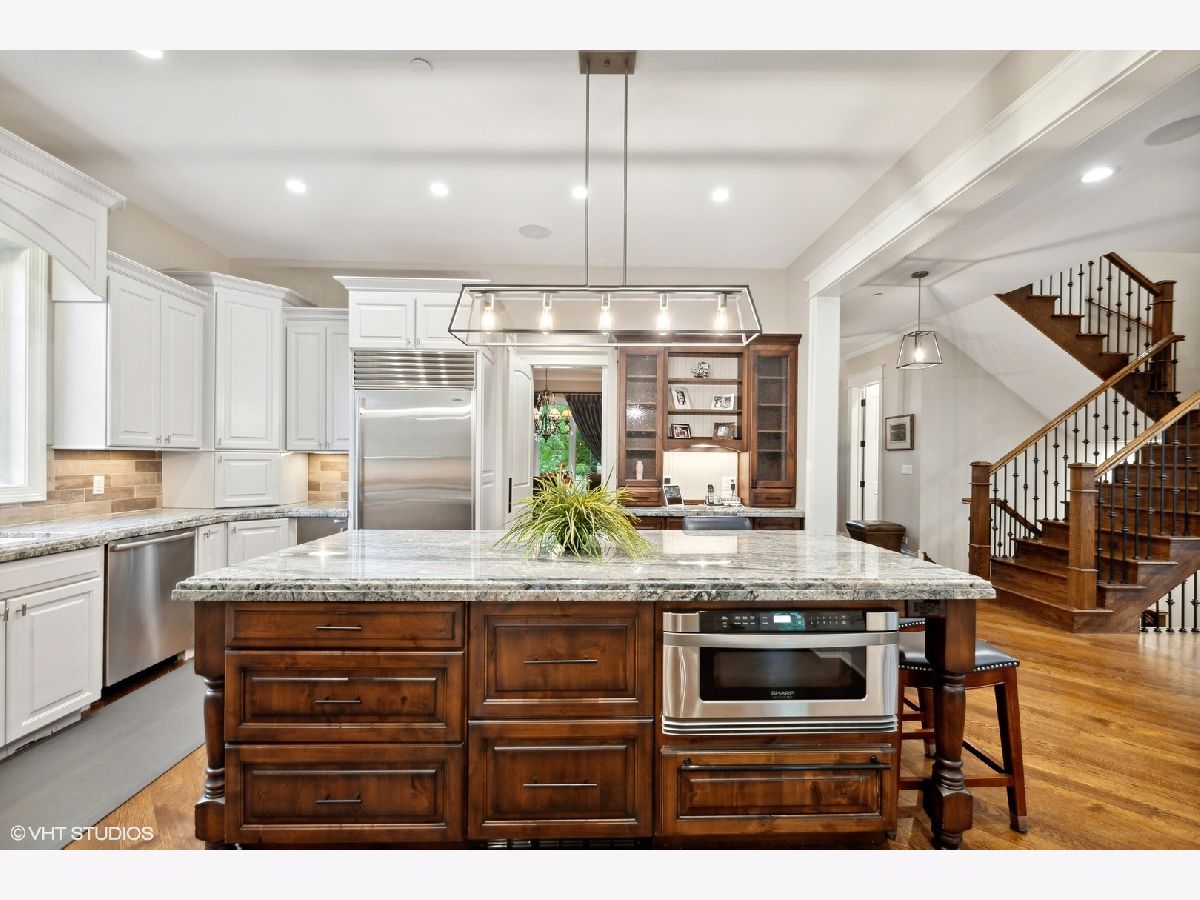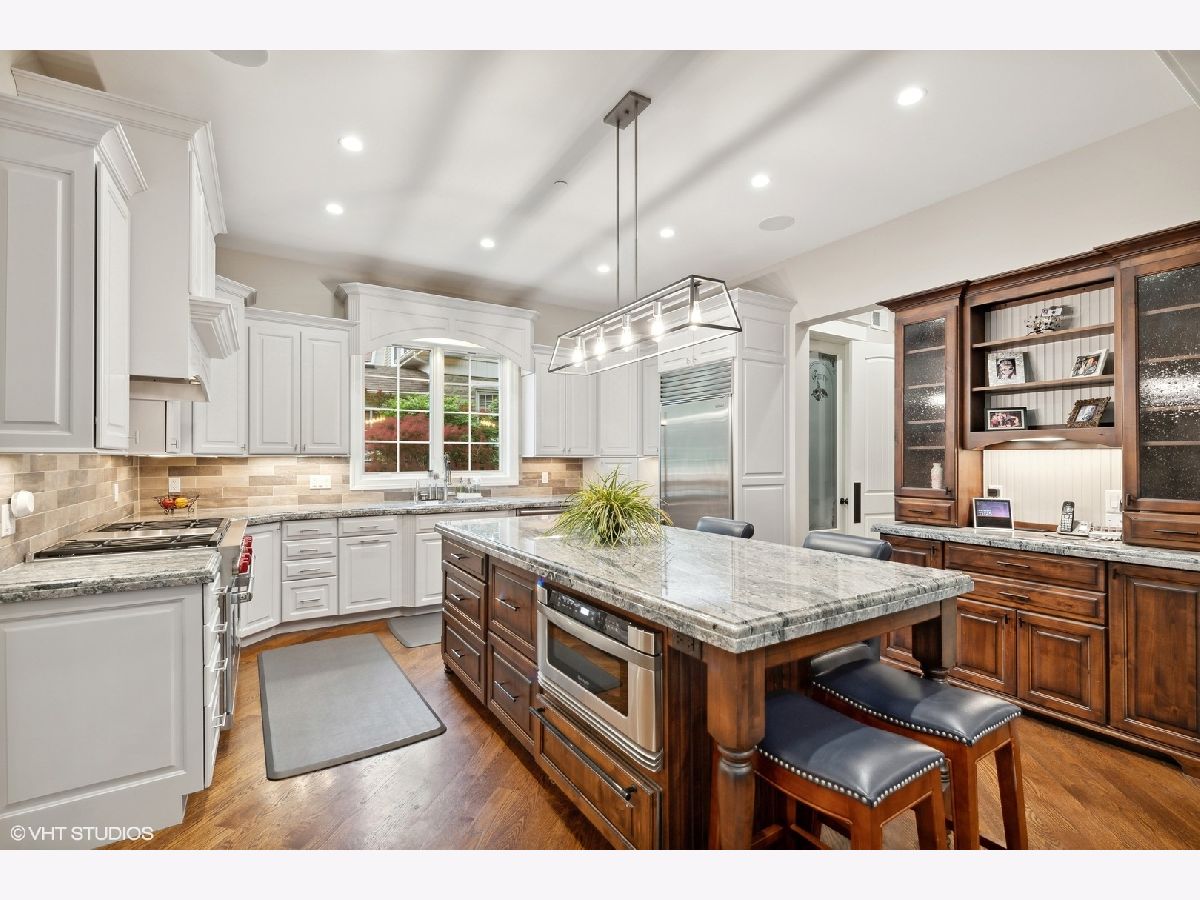 Stunning newer construction home on an 75x177 lot with an amazing walk to town location! A grand covered entry and front porch invite you into this beautifully built brick and stone home. The main floor features a living room, expansive formal dining room, butler pantry, a beautifully updated kitchen, separate eating area, a two story cathedral ceiling family room, office/first floor bedroom with en-suite bath, and a mudroom into the attached 2.5 car heated garage. The kitchen features a large granite center island, Amish custom cabinetry, Wolf range, Sub Zero refrigerator, ice maker, refrigerator drawers, as well as a warming drawer. Four bedrooms up includes the master with its own private balcony overlooking the yard and a spa like master bath with a steam shower. Two additional full baths upstairs, a second home office, and laundry. The basement is great for entertaining with a huge rec room, full wet bar, a workout room and another full bath. Plenty of space for multiple game tables and a movie/lounge area. Outside you have a paver patio off the family room, outdoor fireplace, a huge fully fenced professionally landscaped yard, driveway off the alley with an electric gate, as well as an additional two car detached garage giving you four total garage spaces. You are just a few block walk to the Metra and all the shopping, dining and nightlife of Uptown Park Ridge as well as parks and all three levels of award winning schools.