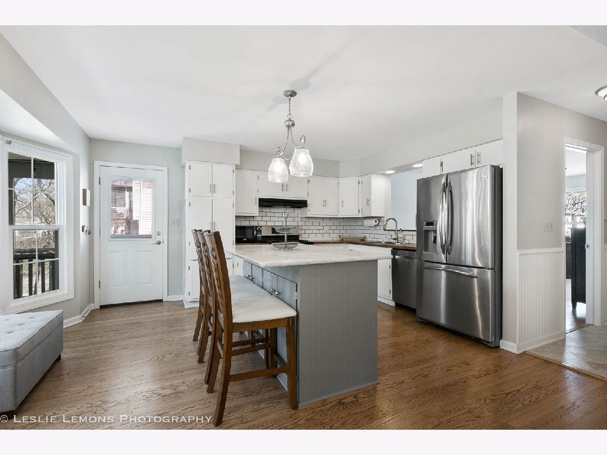 4 bedrooms, 2.5 baths, large lot, 4 car garage with 1/2 insulated, heated and drywalled. Master bedroom with en suite and walk in closet. Updated throughout, hardwood floors. 3 season room 24x13, patio 15x17. Partially finished basement with separate entrance. Close to Prairie Path, Metra, parks and major highway
