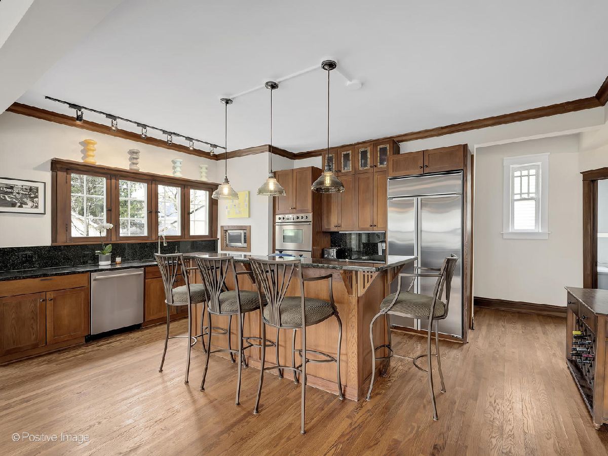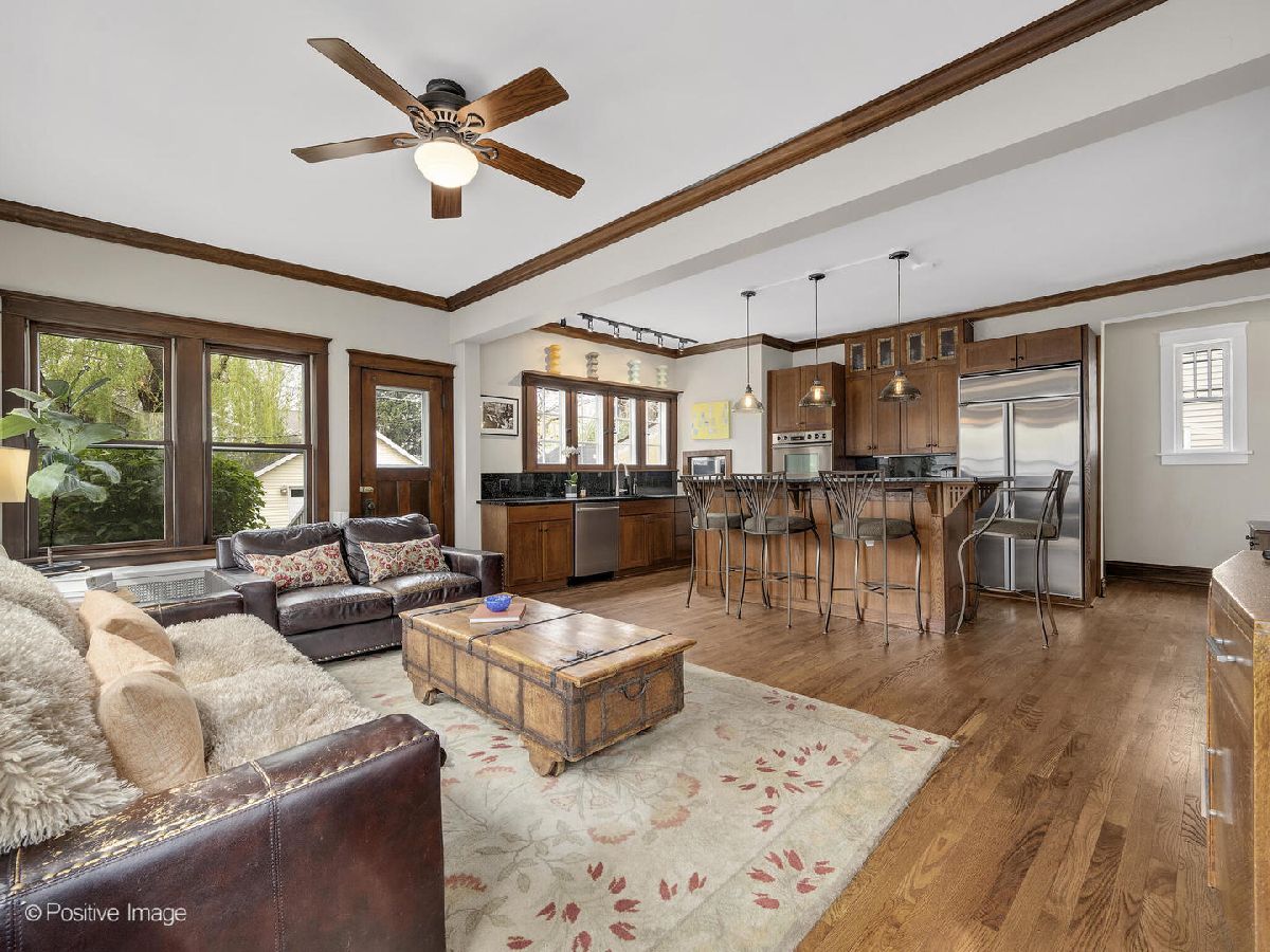 Welcome to this Craftsman-style home on much-admired La Grange Road. This timeless, handsome residence features a modern aesthetic and to put it quite simply, a cool vibe. With 5 bedrooms and 2.1 bathrooms, this home offers ample living space for comfortable living today. Conveniently located in the heart of La Grange, near the starting point of THE legendary summer event, this home provides the best location for a Pet Parade yard party and easy access to a variety of dining, shopping, and entertainment options all year-round. Step inside to discover a thoughtfully designed interior that seamlessly blends style and functionality, with modern design and exceptional craftsmanship. The main floor features large, inviting rooms and spacious living areas that are ideal for entertaining or relaxed living. Clean lines, large windows, and substantial woodwork create a contemporary aesthetic that perfectly complements classic Craftsman characteristics such as crown molding, French doors, oversize baseboards, leaded windows, built-in bookcases and a handsome fireplace with gas logs. A first-floor office with built-in cabinetry and a desk and a second- floor laundry room add to the functionality of the home. The finished third floor with a vaulted ceiling provides additional versatile space, perfect for a guest room, a second home office, a home gym, or recreation area. The large primary bedroom features a huge built-in dresser that blends with the home's character, a closet and an original sleeping porch that can serve as an additional storage space or a quiet retreat. The primary suite also features a private en-suite bathroom. Outside, the professionally landscaped, fenced yard offers a private oasis for relaxation and plenty of space for outdoor gatherings with a large paver brick patio - the backyard was re-sodded in 2023. This home offers updated mechanicals and plenty of extras, including: a 2.5 car garage with concrete driveway, 200 Amp circuit breaker panel, a new Peerless gas boiler (2023), a new 50 gallon water heater (2023), Space Pac central air conditioning, a radon mitigation system Fenced yard with iron gates. Whether you're looking for a peaceful retreat or a place to host gatherings, this home offers the perfect blend of modern amenities and classic character in a sought-after location. On this block and with the enduring design and craftsmanship of this home, we invite you to this opportunity to embrace your perfect La Grange lifestyle and call this timeless house your home.