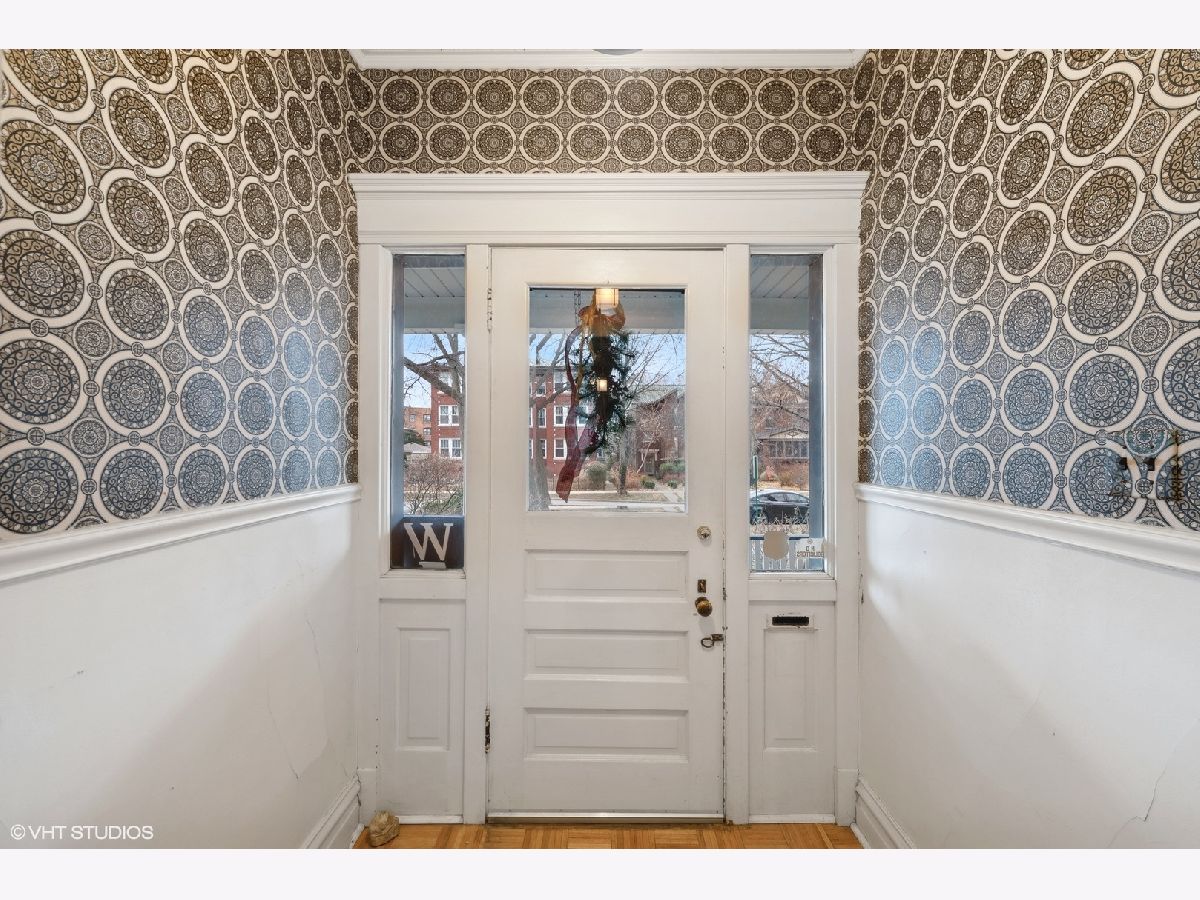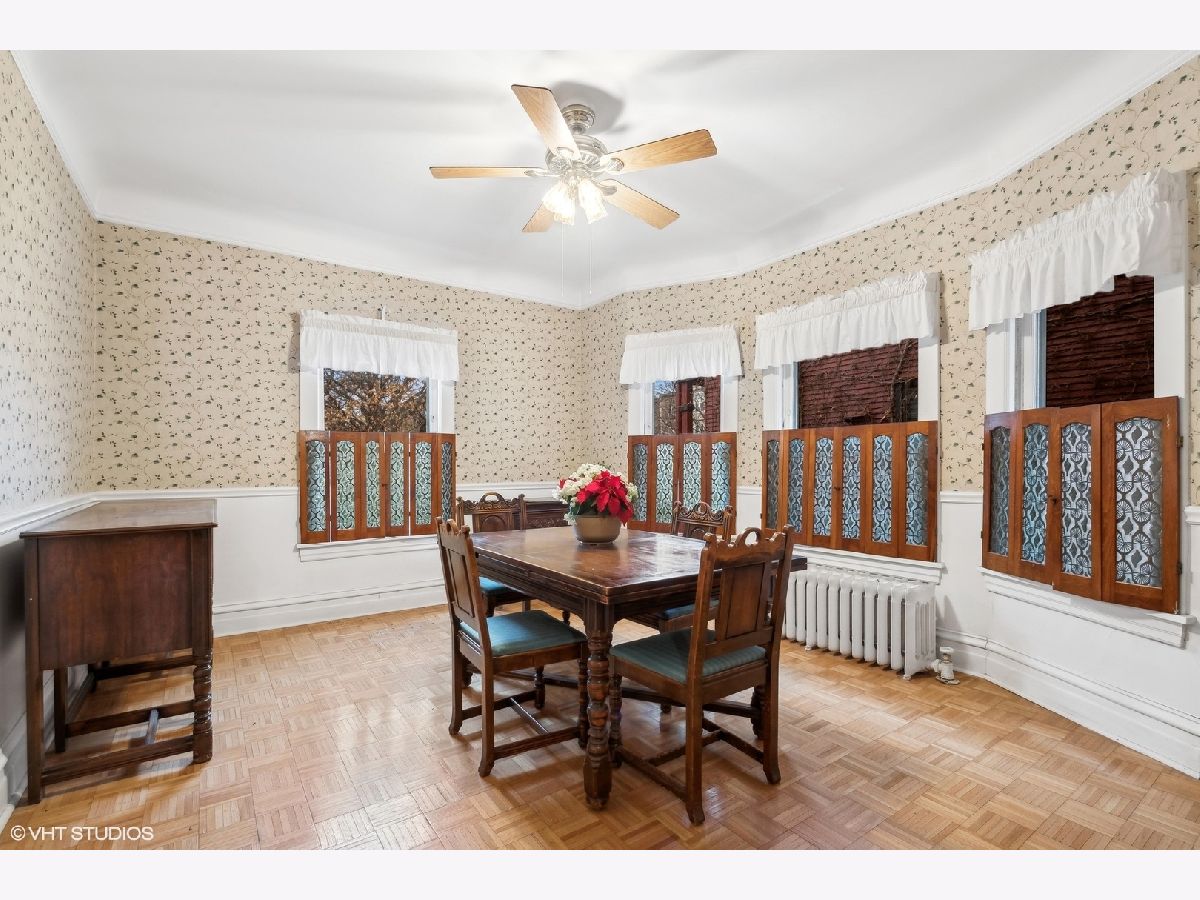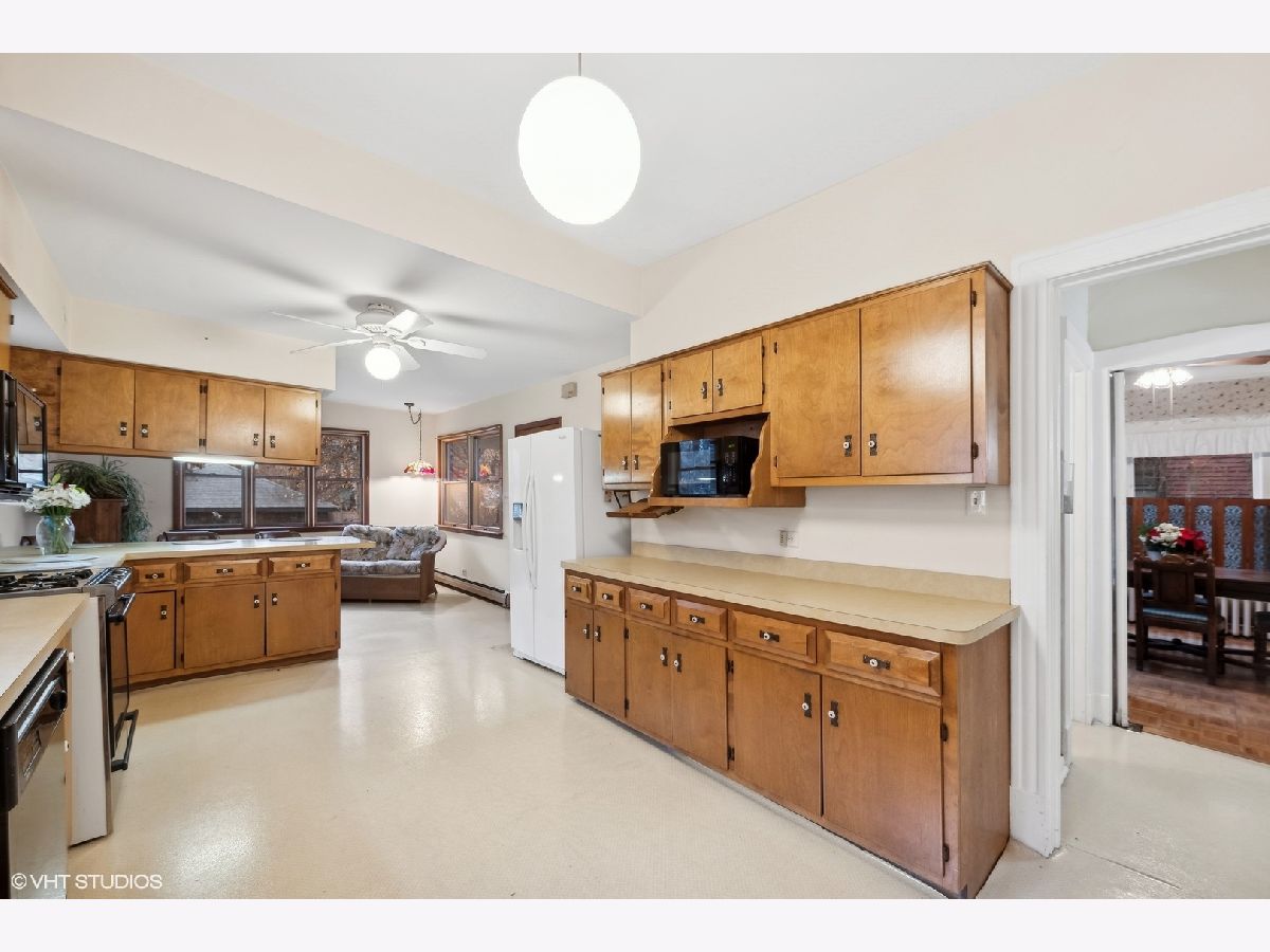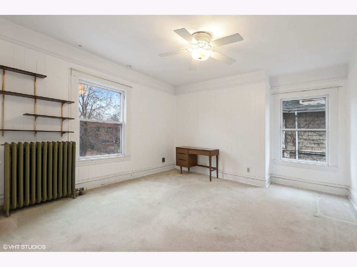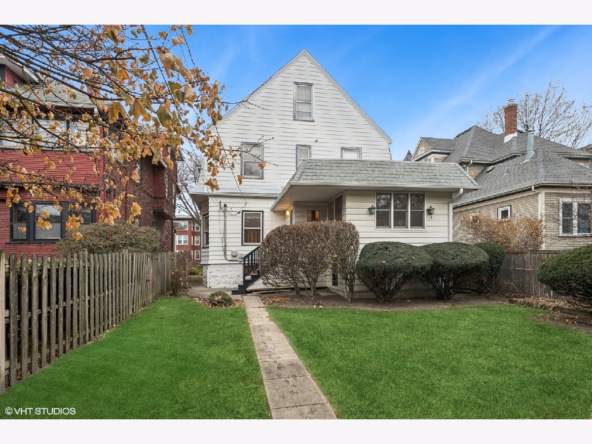 Discover Oak Park's hidden gem on a charming cul-de-sac! This home boasts modern amenities, including newer central air, boiler, and water heater. The inviting front porch and vestibule, adorned with delightful vintage wallpaper, welcome you inside. You'll fall in love with the charming staircase featuring a large stained glass window and the spacious vintage kitchen with a breakfast bar. The first-floor bedroom/office and full bathroom are perfect for a hybrid work space or multi-generational living. The second floor offers 5 generously sized bedrooms with ample space to create a future master ensuite. The standout third-floor attic, with 280 sq ft, 6" plank flooring, beam ceilings, and a floor-to-ceiling window, is ideal for a family room, exercise room, art/dance studio, or nanny quarters. Beneath all the carpeting, you'll find beautiful hardwood floors! The lovely backyard includes a garden area, and the 2-car garage with side drive provides convenient alley access. Located just a few blocks from the Metra Train Station and the vibrant downtown of Oak Park, this home is perfectly situated. Bring your vision and stay for your dream home!