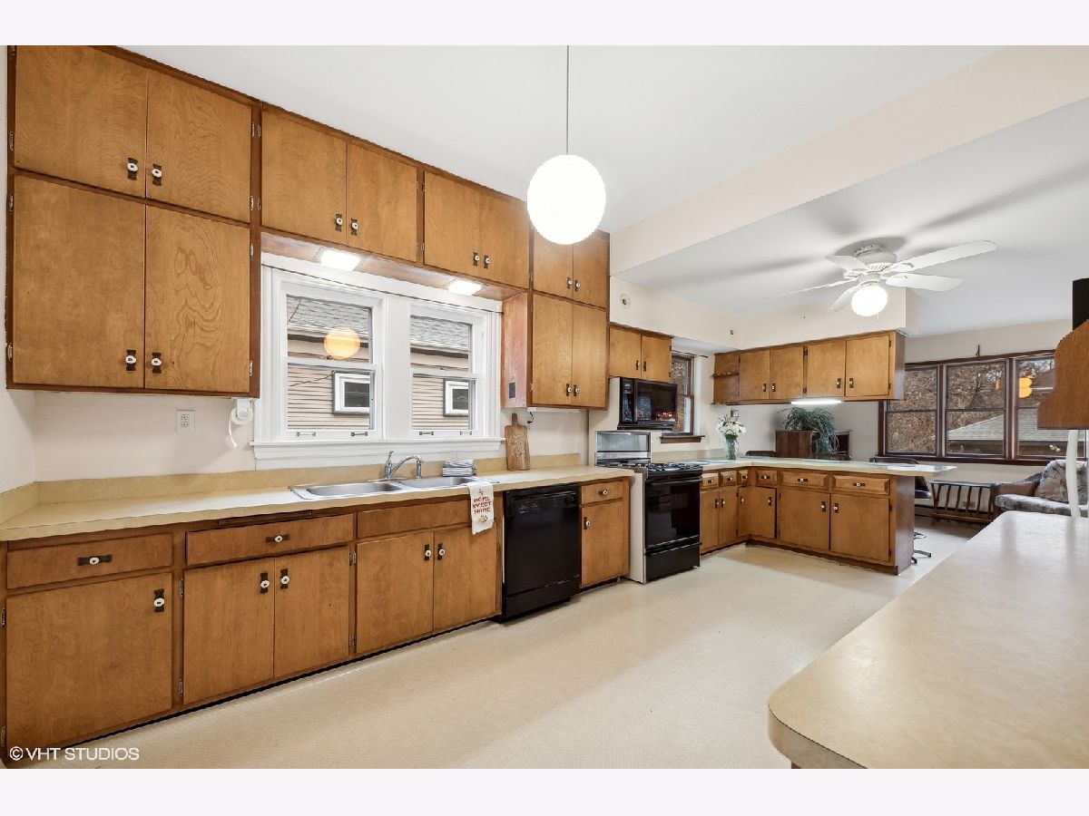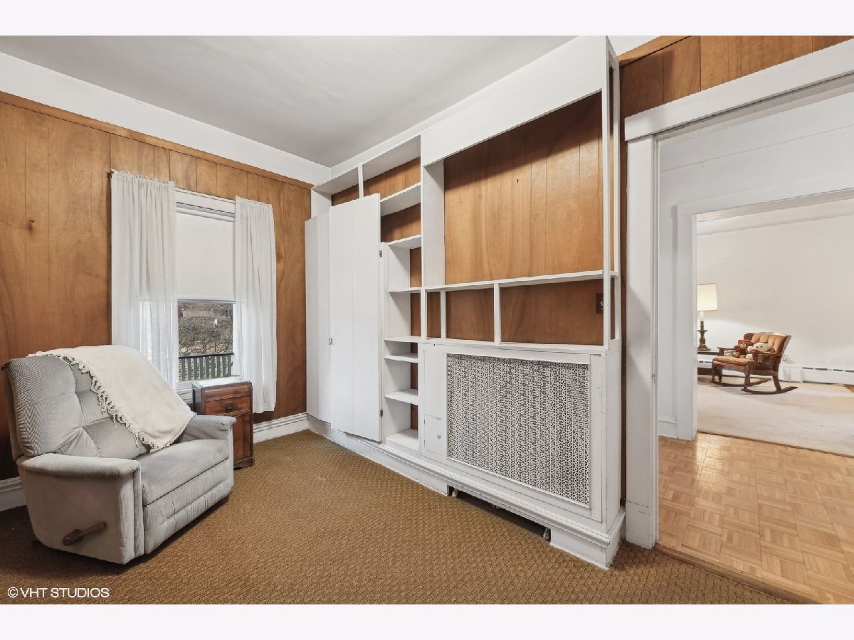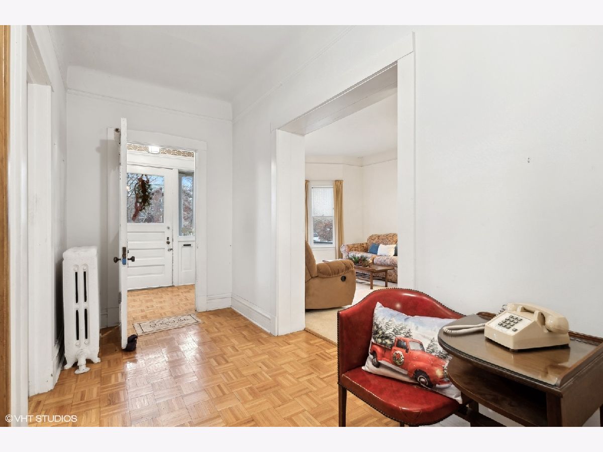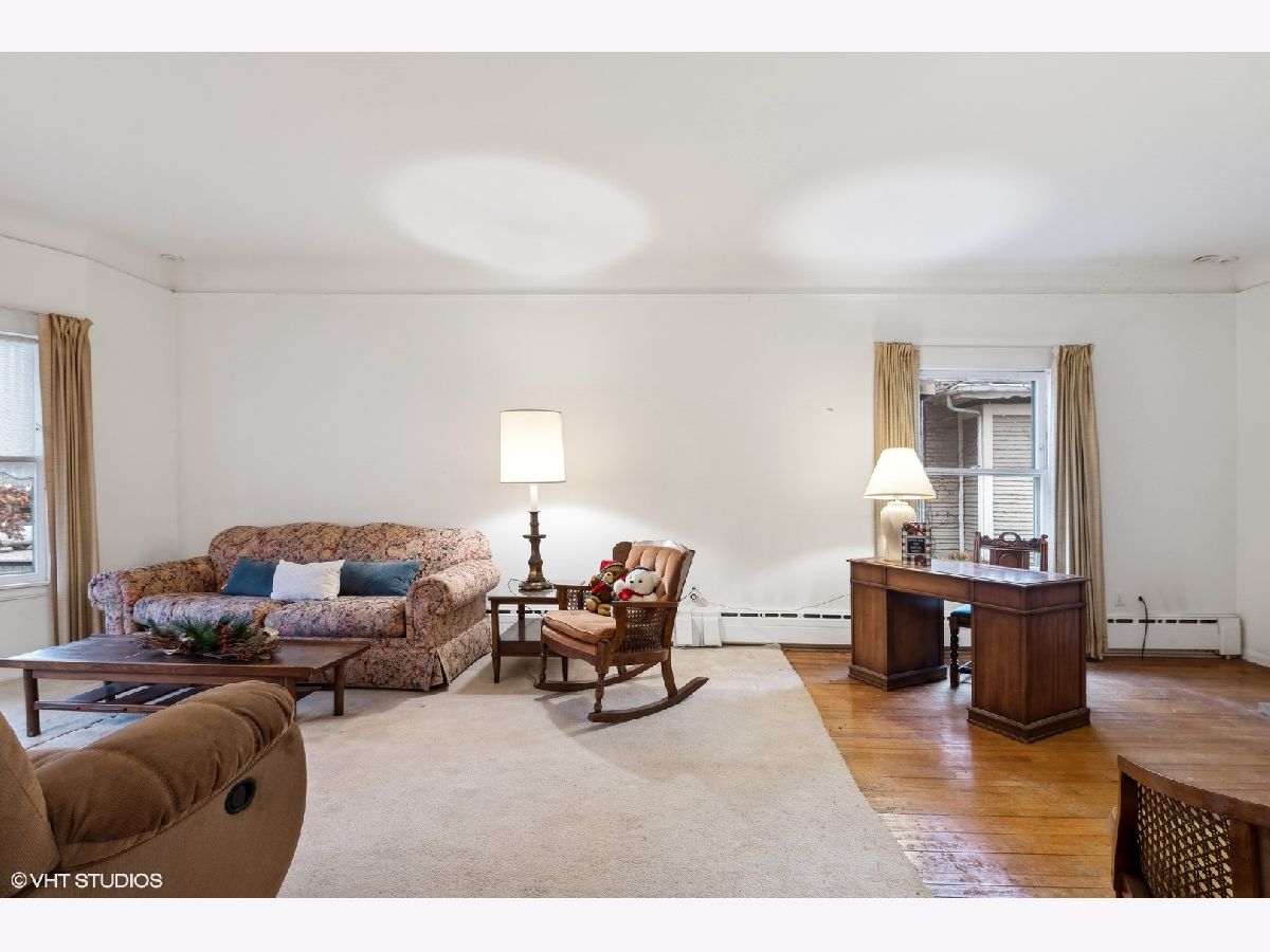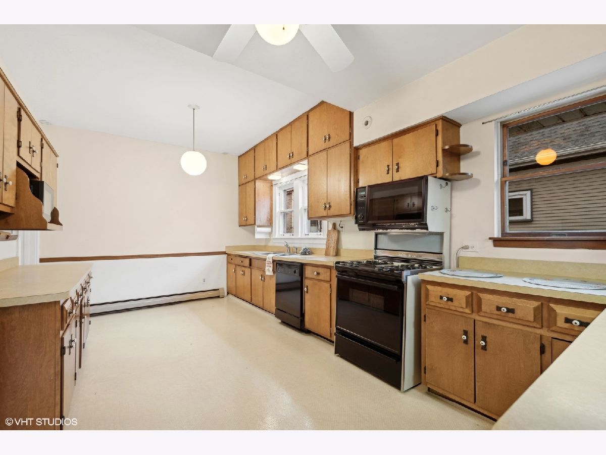 Discover Oak Park's hidden gem on a charming cul-de-sac! This home boasts modern amenities, including newer central air, boiler, and water heater. The inviting front porch and vestibule, adorned with delightful vintage wallpaper, welcome you inside. You'll fall in love with the charming staircase featuring a large stained glass window and the spacious vintage kitchen with a breakfast bar. The first-floor bedroom/office and full bathroom are perfect for a hybrid work space or multi-generational living. The second floor offers 5 generously sized bedrooms with ample space to create a future master ensuite. The standout third-floor attic, with 280 sq ft, 6" plank flooring, beam ceilings, and a floor-to-ceiling window, is ideal for a family room, exercise room, art/dance studio, or nanny quarters. Beneath all the carpeting, you'll find beautiful hardwood floors! The lovely backyard includes a garden area, and the 2-car garage with side drive provides convenient alley access. Located just a few blocks from the Metra Train Station and the vibrant downtown of Oak Park, this home is perfectly situated. Bring your vision and stay for your dream home!