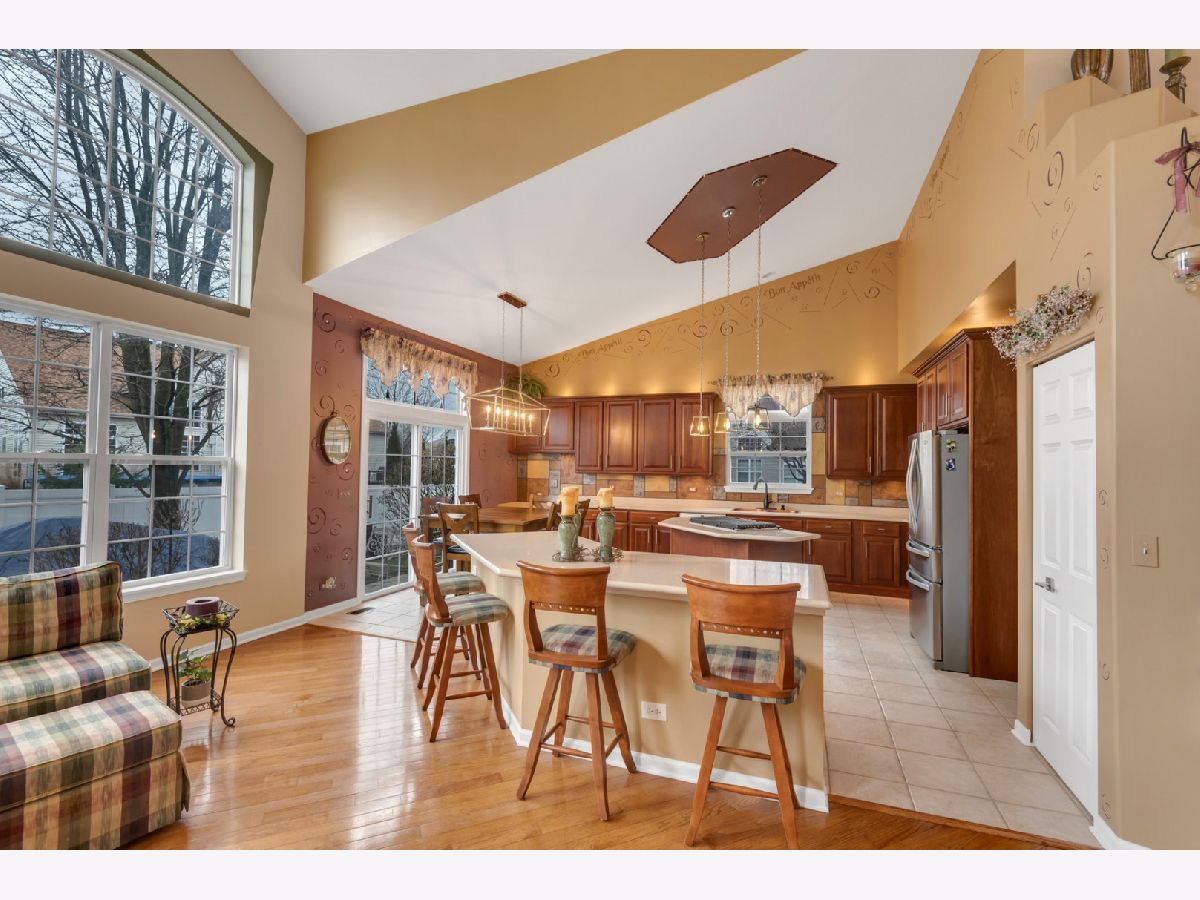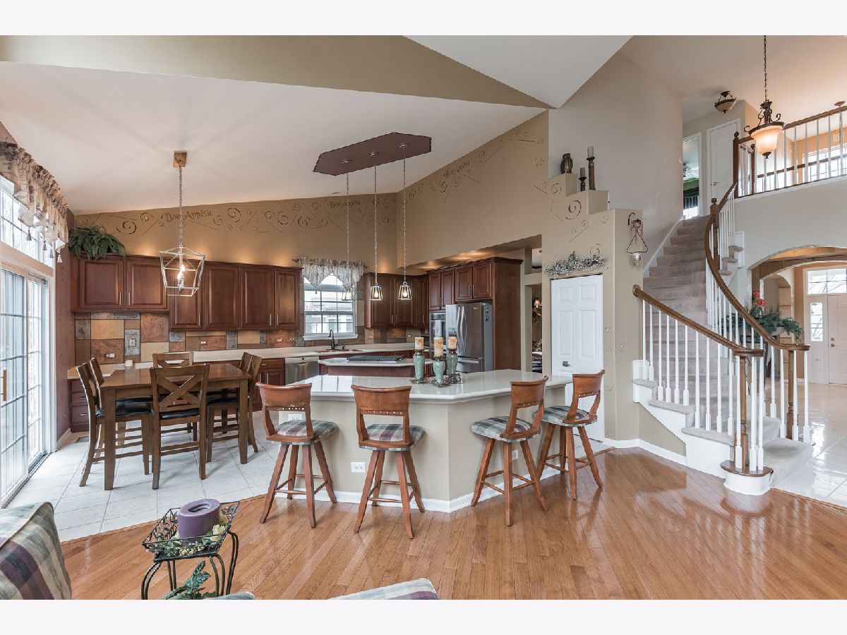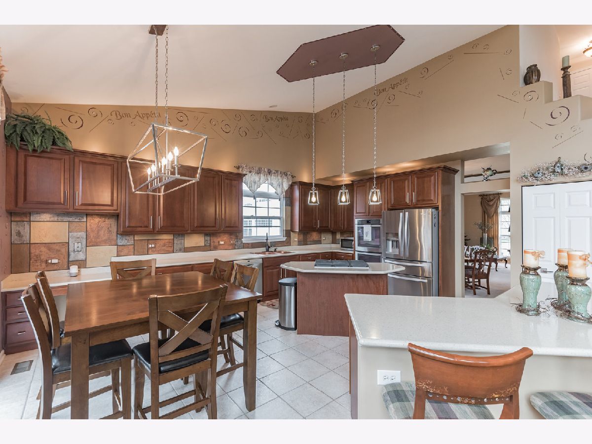 Geneva, Illinois, presents an informal and yet elegant beauty, cultural and historical richness with a safe and friendly community/neighborhood vibe that makes it one of the most desirable places to live and raise a household. Highly rated School consistently achieves ACT scores well above state/national averages and has low student/teacher ratios at all levels. 30+ miles of picturesque trails through the Fox River Valley for runners/bikers and parks/athletic/community facilities including a new modern library. Community events throughout the year and over 150 places to eat, drink, shop and be entertained and hundreds of others in the Tri-City area. Located 40 miles west of Chicago it allows easy access via train and nearby expressways. "Don't just visit Geneva, be a part of it!" Comfortable spacious semi-custom home with finished basement. Open concept. Move-in ready. Options for home office. Vaulted ceilings and 8.5-to-9-foot ceilings throughout. Second Floor: Four BRs; sunken Main BR (19' X 19'), Main Bathroom w/shower, jetted tub, double sinks, enclosed toilet and a linen closet. Main walk-in closet (14' X 10'). Second full bath with double sinks and tub/shower combo. Main Floor: Impressive two-story entry with pearl ceramic floor; spacious Living Room and Dining Room; spiral staircase, Den with solid wood AMF pool table, Half Bath; Laundry Room; open concept FR and Kitchen with plenty of windows, in-wall niche for bar/wine bar, cooking and eating islands, table area, pantry, raised panel cherry cabinets w/42-inch uppers and crown molding and above and below cabinet lighting. Entertainment Center and Gas Fireplace combo with oversized mantel (9' X 30"). Lower Level: Second Kitchen w/in-wall microwave, electric oven and refrigerator and Pantry. Custom Theater with ceiling mounted projector, 126-inch screen, floor and ceiling speakers and custom-built floor to ceiling shelves. Bar area with a distinctive 15-foot semicircular wet bar with lighted mirror back bar and glass shelves, lower cabinets, bar refrigerator and various mood lighting. Dart board. An inviting French street cafe leads to a one-of-a-kind Wine Cave/Room that holds app. 100 bottles and has space for wine refrigerator. A household hang-out area for games/gaming and TV viewing, an air hockey game and full-size ping pong table topper. Full bath. Large storage area with plenty of shelves and metal storage cabinet. Three Car Garage: Plenty of off-ground storage, adjustable shelves, retractable ceiling storage, bike rack, extra refrigerator. Backyard: Private with low voltage lighting, grilling station and two patios. One patio is paver brick kidney shaped and can fit a table for 12. Other patio is 20' x 20', octagon shaped, stamped concrete with retractable cover pergola, Roof is 4 years old. Hot water heater and top of the line Lennox Wi-Fi controlled HVAC system with humidifier and air purifier are 3 years old. Terrific location in second half of quiet household oriented double cul de sac with great neighbors/friends, no traffic, and a park just one block away. Short distance to Heartland Elementary (A rated). Paved trails and close to all conveniences. Less than a ten-minute drive to downtown Geneva.Other Features: Low maintenance landscapingExterior woodwork painted 3 years ago; interior common areas 6 months.In-ground Wi-Fi controlled sprinkler system.Lot Size: Pie shape -60' front; 104.10' back; sides are 125.43' and 141.46'. HOA: $71.48 per year Custom decorative plaster work, painting and wall niches throughout.Beautiful hardwood flooring in FR, Den and first floor Bathroom & Bar/Cafe areas and lower-level Kitchen have custom tile flooring and the hang-out area is carpeted.