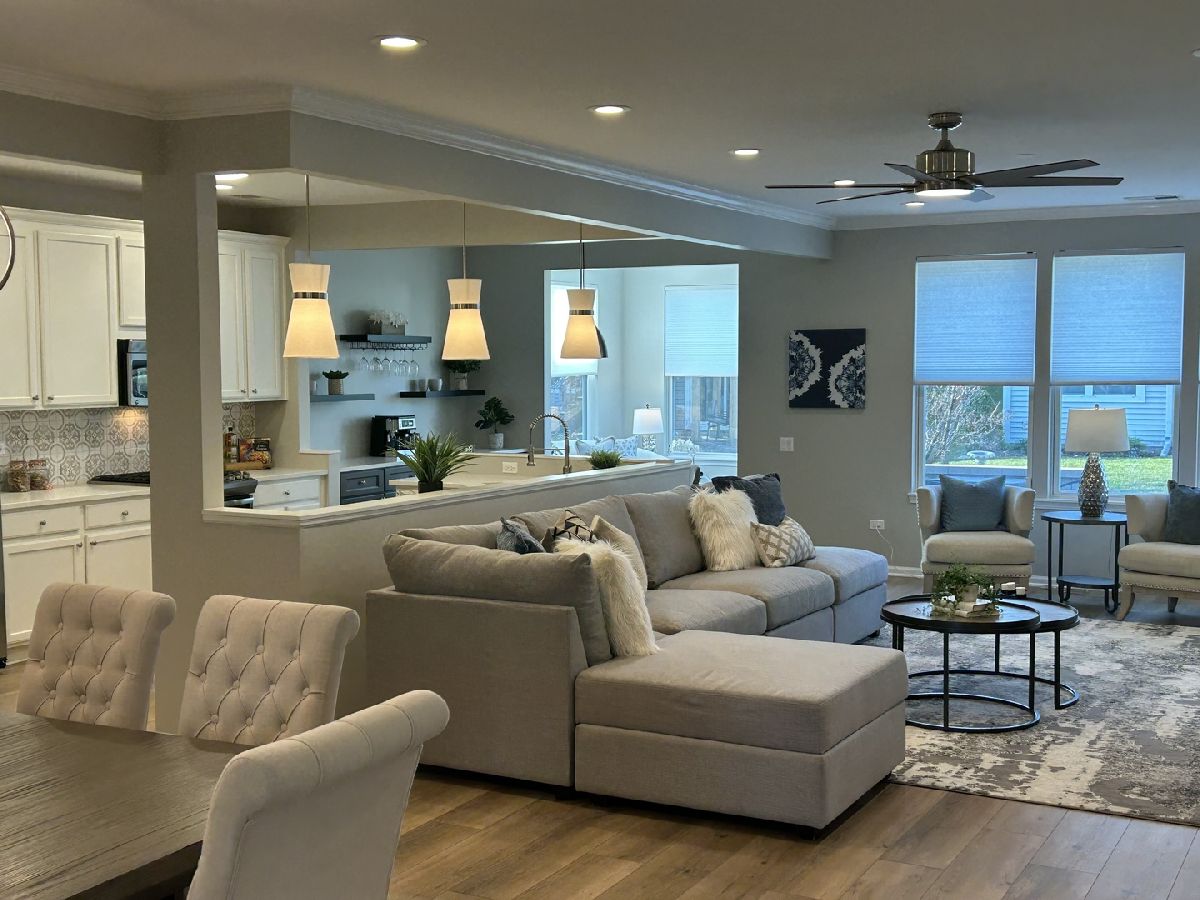 Welcome to 3281 Ravinia Circle. This two bedroom/two bath plus den/office home located in the prestigious Grand Dominion subdivision has been fully renovated for today's living. This open concept home features 42" cabinets, quartz countertops, large island, recess lighting, luxury vinyl flooring and much more. The style is fresh with a neutral palette and richly appointed with gorgeous fixtures and hardware. Enjoy a morning cup of coffee or evening glass of wine in the sunroom right off of the south facing paver patio with electric awning. Don't miss the generous cabinetry for storage and your very own coffee bar with stylish shelving. All this and more in the over 55 maintenance free community with clubhouse, pool, fitness, activities and fun. Your new lifestyle awaits you!
