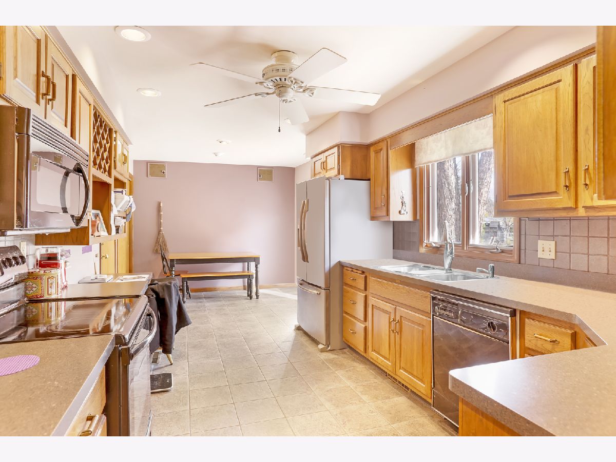 This quad level home offers plenty of space for everyone with generously sized rooms throughout! The updated laminate flooring on the main level ensures low-maintenance living with fewer worries. The main floor boasts a bright and spacious living room, a dining area with sliding doors leading to the deck, a kitchen with an eat-in area with doors leading to the deck, and a large double-door pantry, offering both functionality and style. Upstairs, you'll find the charm of original hardwood floors, three comfortable bedrooms, and two full bathrooms, providing ample space for family or guests. The lower level features a very large family room with fireplace, a convenient half -bath, a spacious laundry room, and a sun-filled four-season room with patio doors opening to the deck. The expansive fenced backyard includes a garden shed for extra storage and over 500 square feet of deck space-perfect for entertaining or unwinding in peace. The attached garage adds convenience, and the home is ideally located close to schools , parks, and the golf course. It's a perfect blend of comfort, practicality, and location!