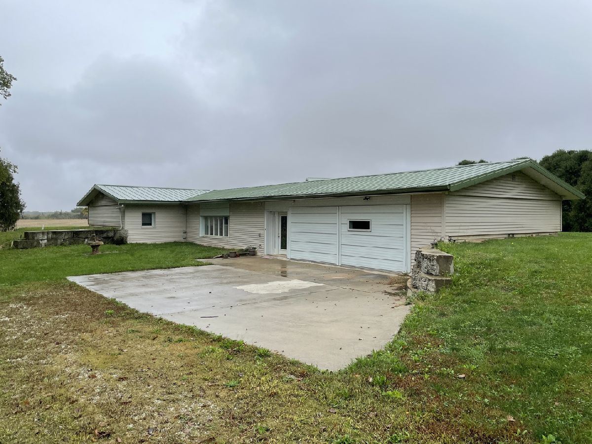 Don't miss this unique opportunity to buy 40 acres of farmland with a 1 acre homesite! Built in 2015, this custom built home is equipped with many 'green' features, including concrete construction, geothermal heating and cooling, metal roof, private well and septic system. The home has 2 water heaters and a whole house water filtration system. Luxury features fill the kitchen, which features granite counters, solid wood cabinets, tile backsplash, and stainless steel appliances (including double ovens). All 3 bedrooms are located off of the spacious living room with stone accent wall. The master bedroom has double closets and a full bath with stand up shower and plenty of cabinet space. The second bathroom has a stand up shower as well as an accessible bathtub. The oversized 2.5 car garage has an additional half bath as well as access to the full, multi-level unfinished basement, where you'll find easy access to the utilities as well as great storage space. This property also features a large metal outbuilding for equipment storage. Don't miss your chance to purchase a large plot of farmland as well as a great custom country home! Check it out today!