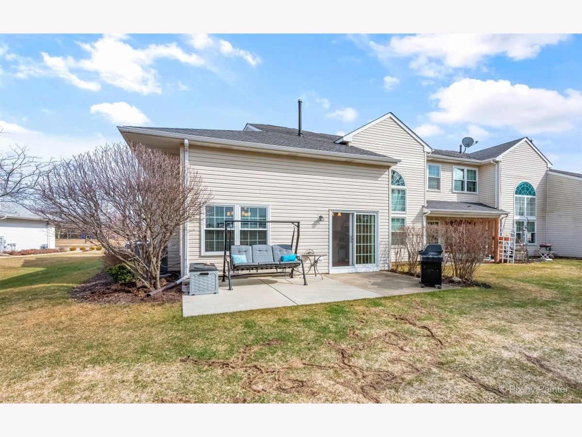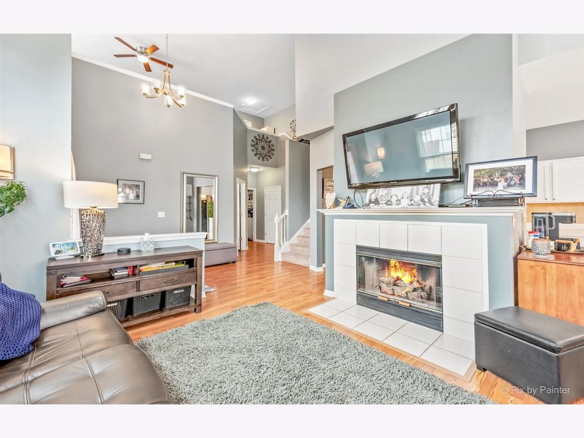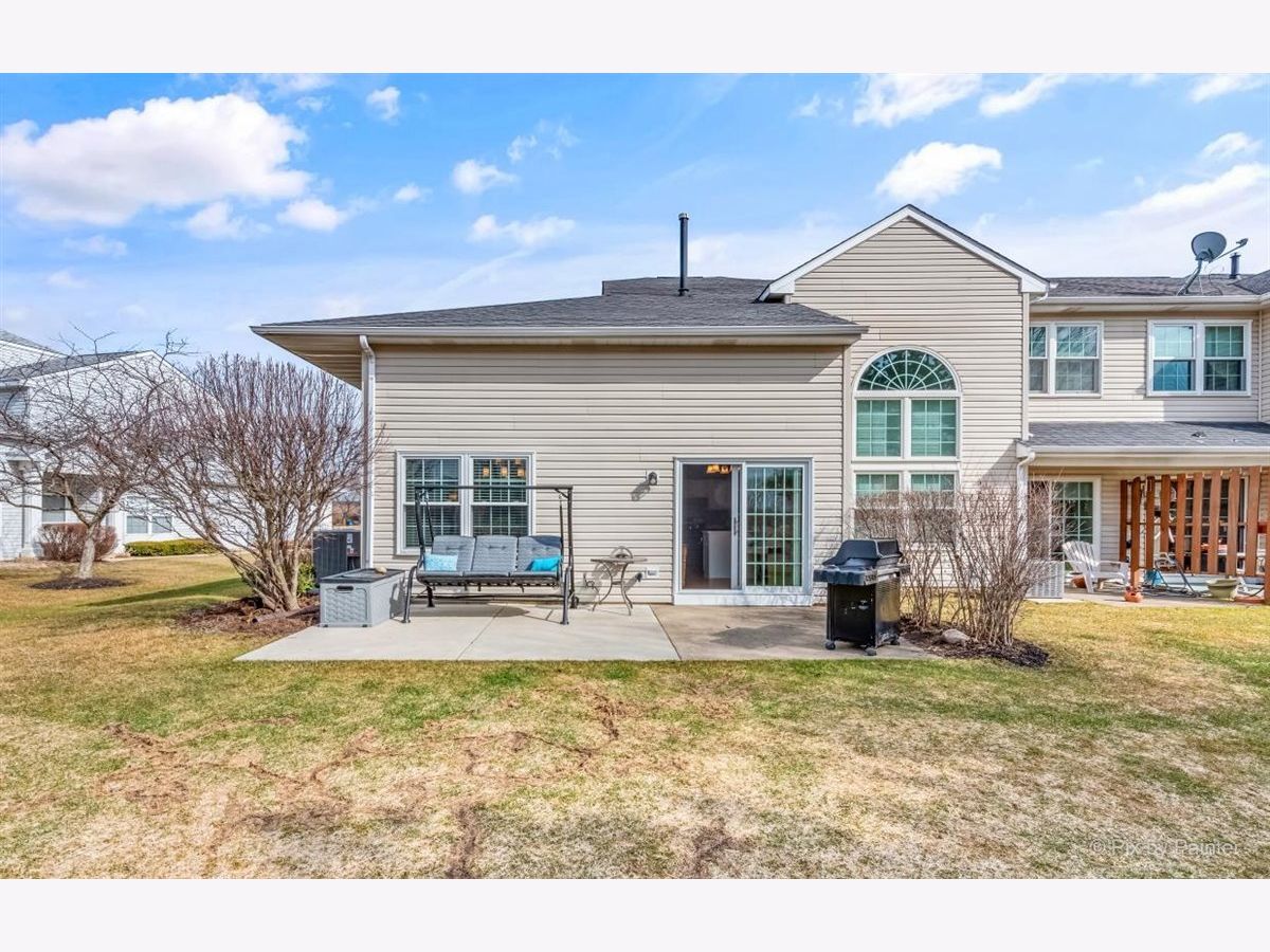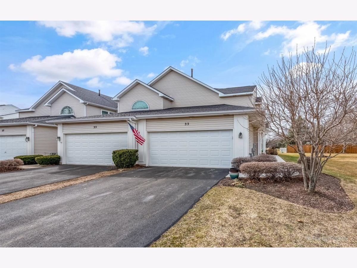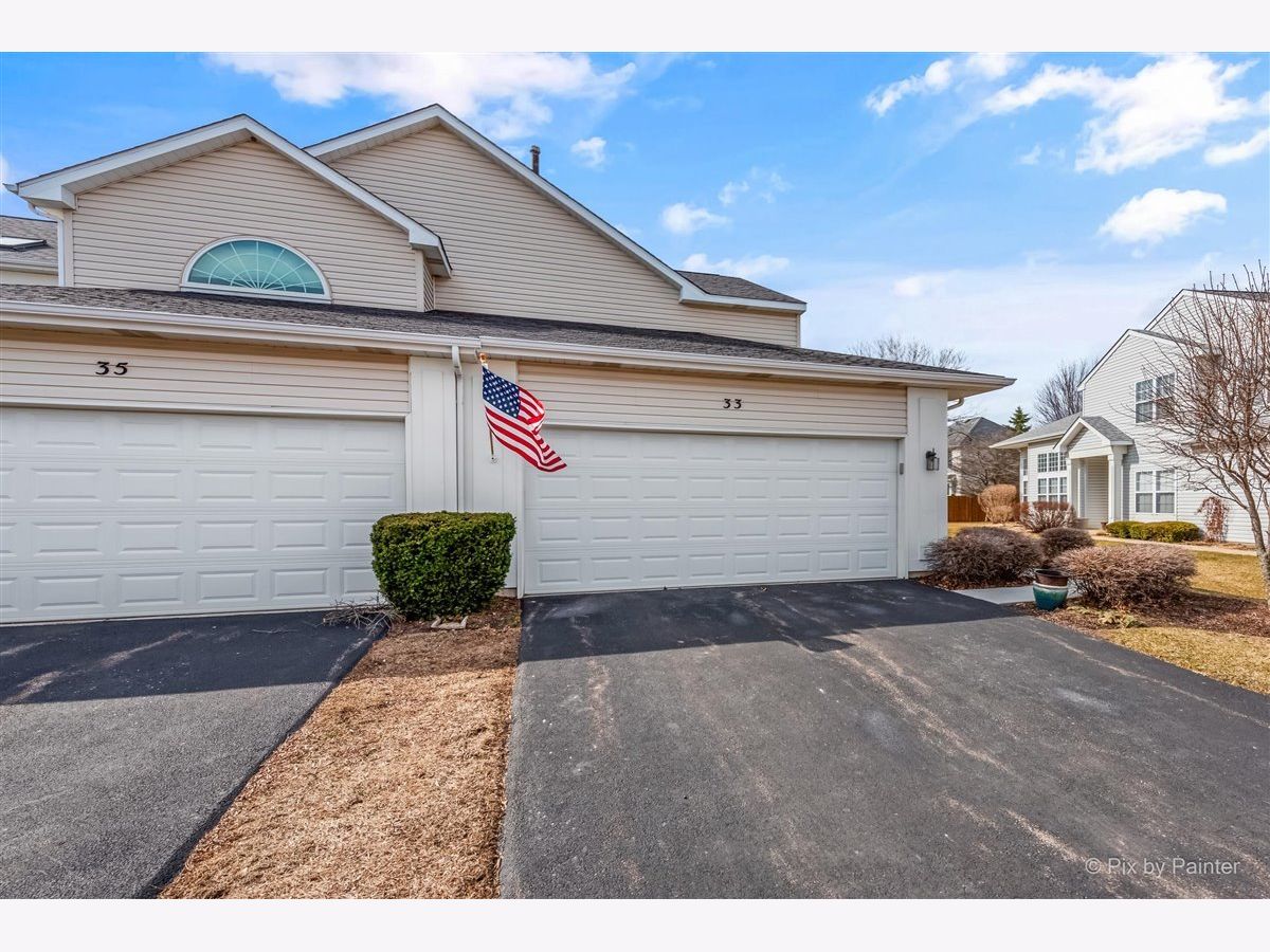 33 S. Barton Trail is an end unit in the Deerpath Crossing Subdivision. Across from Deerpath park/playground, enter in from your private entrance set off to the side. Tile entry and a 2 story ceiling dramatically welcomes you in the home. Fresh, contemporary paint colors are captivating to the eye. Open to the living room with modern light fixtures, and tall windows allow natural light to permeate the room. Centered in the Living room is a Gas log fireplace with a new mantel, perfect to warm the room on chilly nights. Formal dining area off of the main living room is ideal for gatherings of all sorts! The main floor boasts an attractive wood laminate easy to clean. Kitchen has been freshened up with painted white cabinets, appealing silver hardware and SS appliances. No stairs to get to the Master suite, which is situated off to the other side, away from the main living space. Newer wood laminate flooring, bright windows, and a large walk in closet. The Master Bath is spacious and has a dual vanity and garden tub. Main floor laundry/mud room that leads to the garage has great storage with an oversized storage closet and shelving. Upstairs there is a generously sized loft perfect for a home office/workspace or an additional family room with a walk in closet for added storage. The guest suite has vaulted ceilings with a commodious ceiling fan. Another full bath upstairs completes the 2nd level. Oh I cannot forget to mention the views! Peering out the windows in the dining room and from the slider doors in the Kitchen you look out into open space! Sit peacefully on the private oversized concrete patio. This space is so unique you do not feel like you are in a townhome or so close to Randall road shopping. Walk to the grocery store or dining. Minutes from downtown Batavia and I-88.
