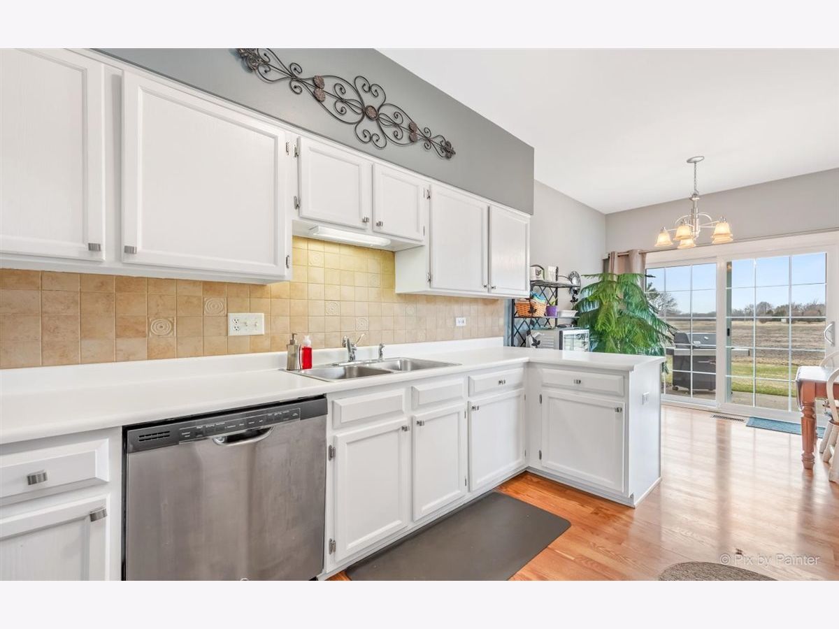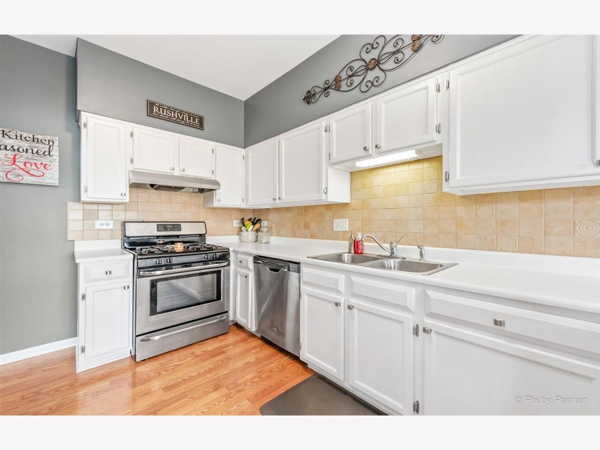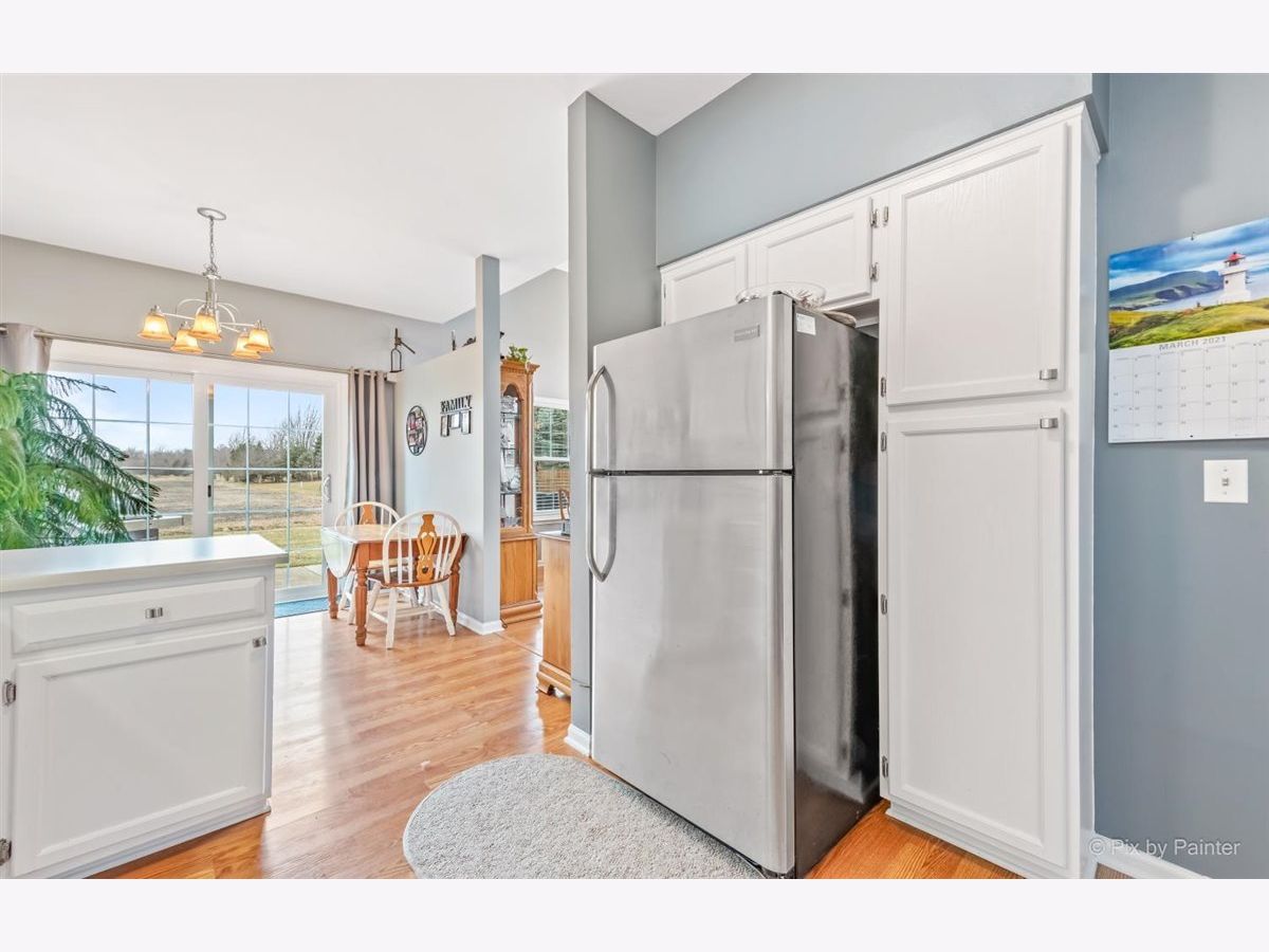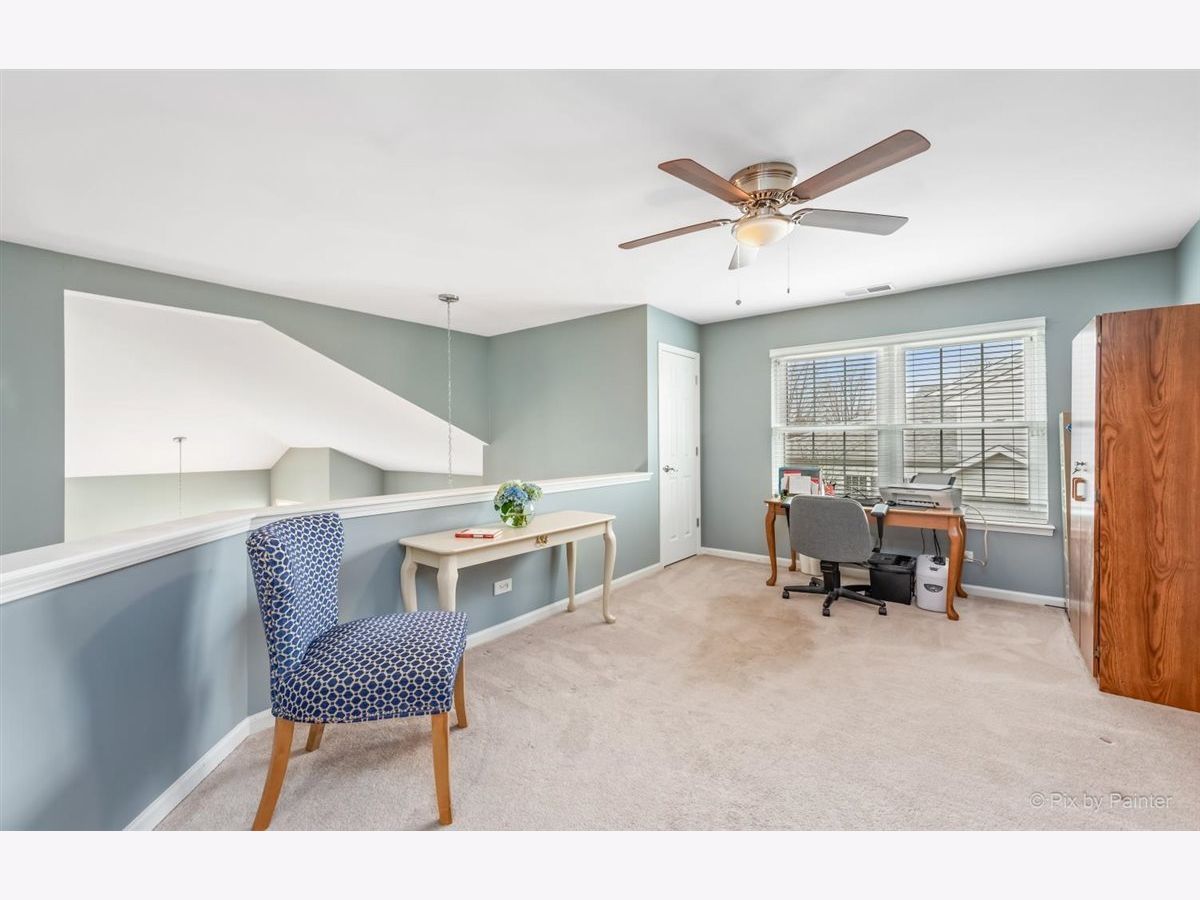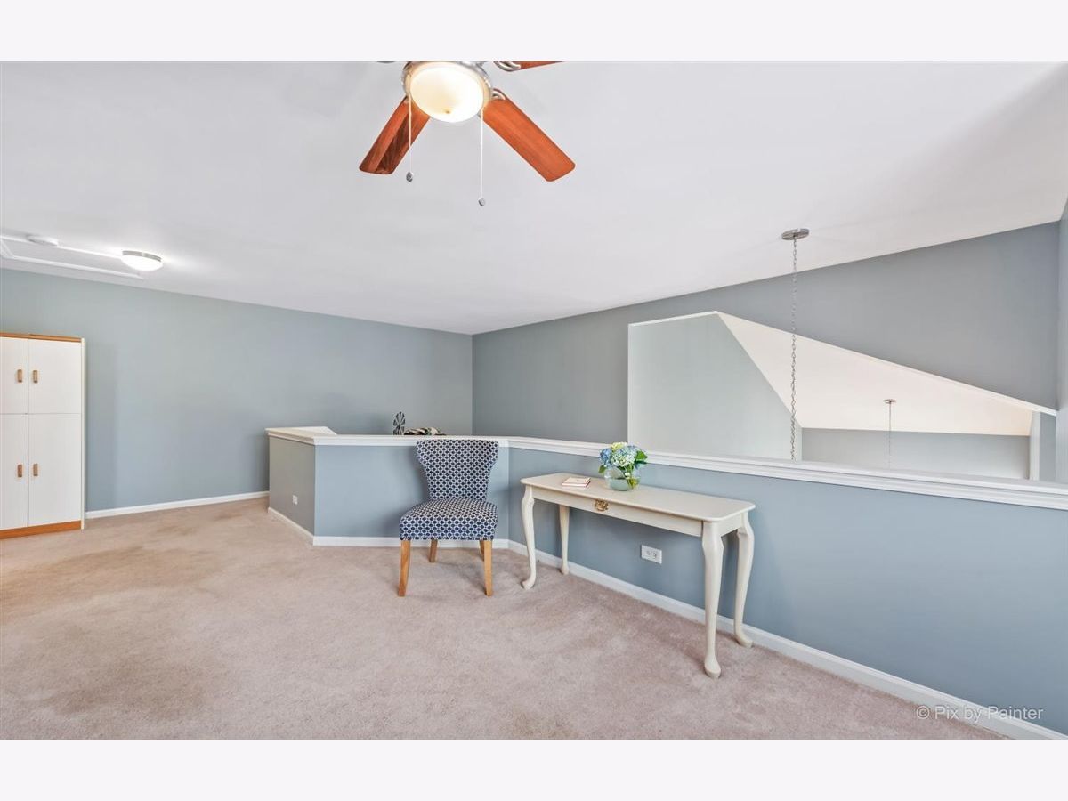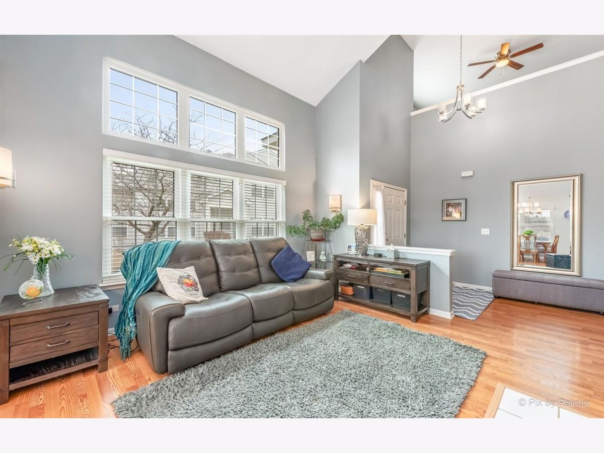 33 S. Barton Trail is an end unit in the Deerpath Crossing Subdivision. Across from Deerpath park/playground, enter in from your private entrance set off to the side. Tile entry and a 2 story ceiling dramatically welcomes you in the home. Fresh, contemporary paint colors are captivating to the eye. Open to the living room with modern light fixtures, and tall windows allow natural light to permeate the room. Centered in the Living room is a Gas log fireplace with a new mantel, perfect to warm the room on chilly nights. Formal dining area off of the main living room is ideal for gatherings of all sorts! The main floor boasts an attractive wood laminate easy to clean. Kitchen has been freshened up with painted white cabinets, appealing silver hardware and SS appliances. No stairs to get to the Master suite, which is situated off to the other side, away from the main living space. Newer wood laminate flooring, bright windows, and a large walk in closet. The Master Bath is spacious and has a dual vanity and garden tub. Main floor laundry/mud room that leads to the garage has great storage with an oversized storage closet and shelving. Upstairs there is a generously sized loft perfect for a home office/workspace or an additional family room with a walk in closet for added storage. The guest suite has vaulted ceilings with a commodious ceiling fan. Another full bath upstairs completes the 2nd level. Oh I cannot forget to mention the views! Peering out the windows in the dining room and from the slider doors in the Kitchen you look out into open space! Sit peacefully on the private oversized concrete patio. This space is so unique you do not feel like you are in a townhome or so close to Randall road shopping. Walk to the grocery store or dining. Minutes from downtown Batavia and I-88.