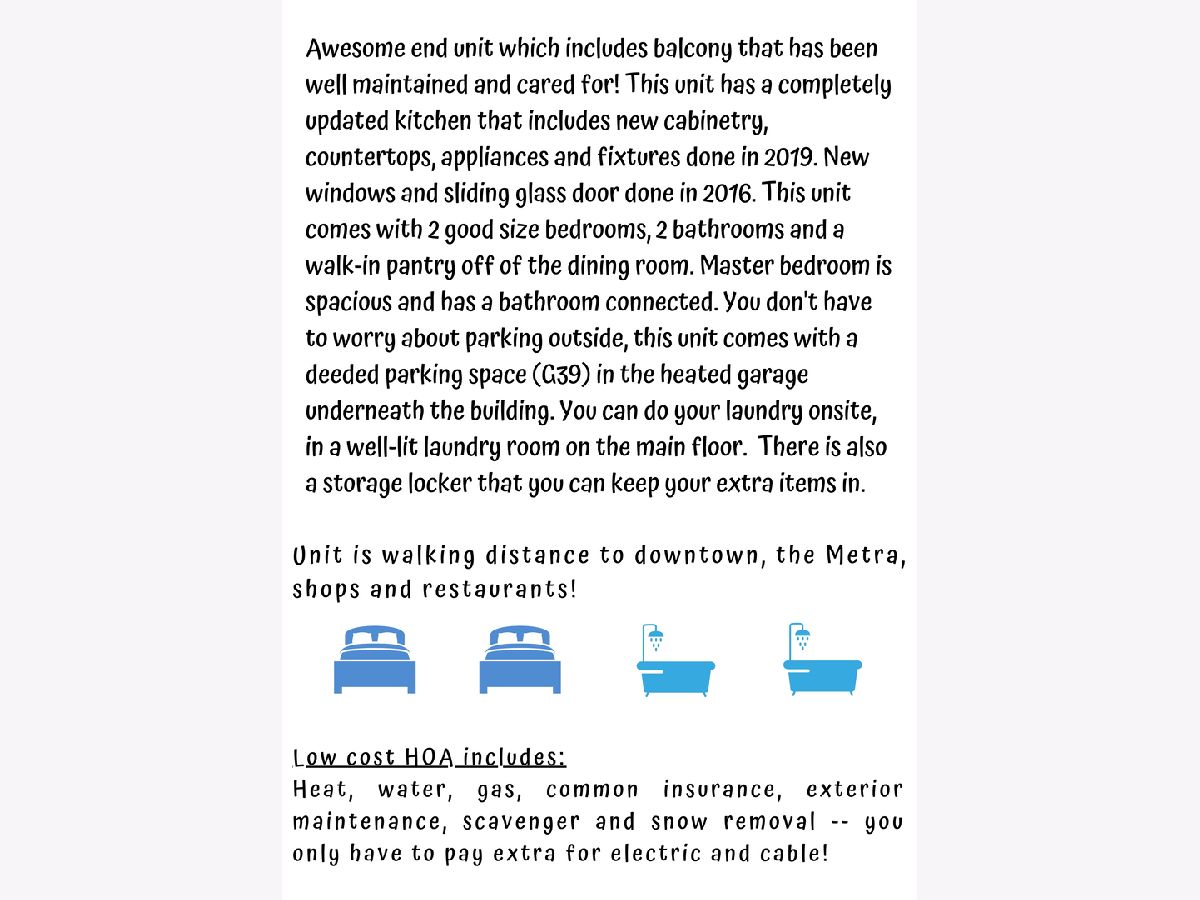 | Heat,Water,Gas,Parking,Insurance,Exterior Maintenance,Lawn Care,Scavenger,Snow Removal | |
