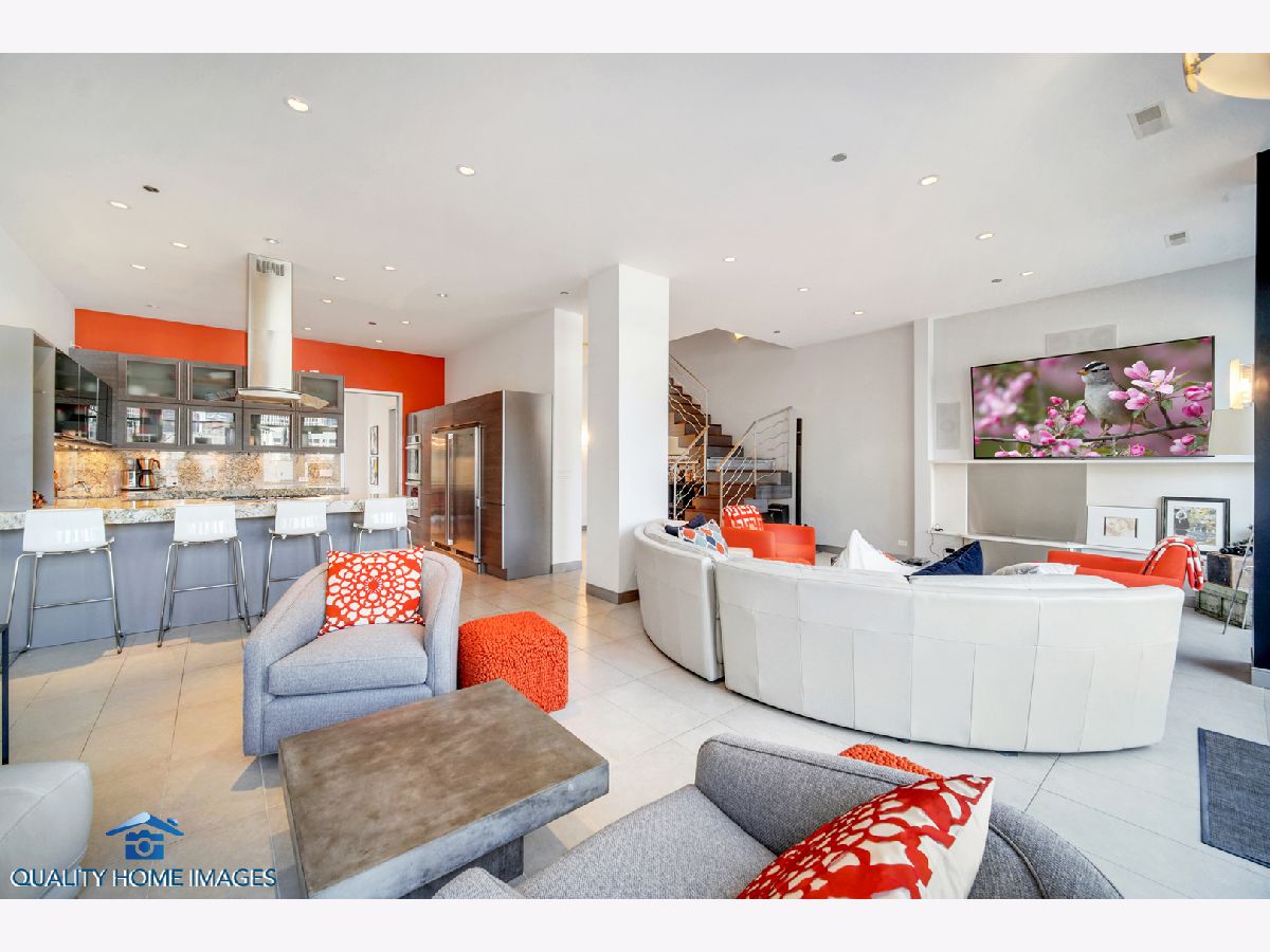 INCREDIBLE HOME IN THE HEART OF RIVER NORTH WITH 4,400 SF OF LIVING SPACE! Enjoy all the benefits of living in a high rise but with your own private 3-story Luxury Townhouse! Contemporary home featuring all the high end finishes you are looking for. Kitchen has natural stone counters with a 4" mitered edge and full backsplash for the WOW factor that will impress all your guests. Oversized stainless steel fridge and separate freezer, double oven, island style cooktop and contemporary gray wood grain cabinets with high gloss uppers to really make it pop. Lots of natural light with floor to ceiling windows and third floor full windowed atrium with retractable window treatments. More luxury features include heated floors, built in surround sound, French doors opening to a huge terrace, 2 HVAC systems, abundance of 4" recessed cans, 11 foot ceilings, 8 foot solid core doors. All the high end brands throughout the home include Duravit, Hansgrohe, Grohe and Kohler. Master bath has Jacuzzi tub, 2 vanities and complete shower system with body sprays. Private elevator access to the parking garage.