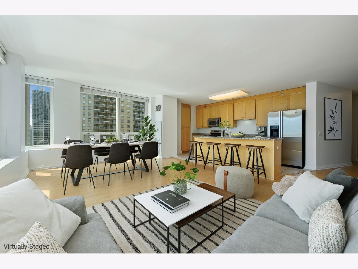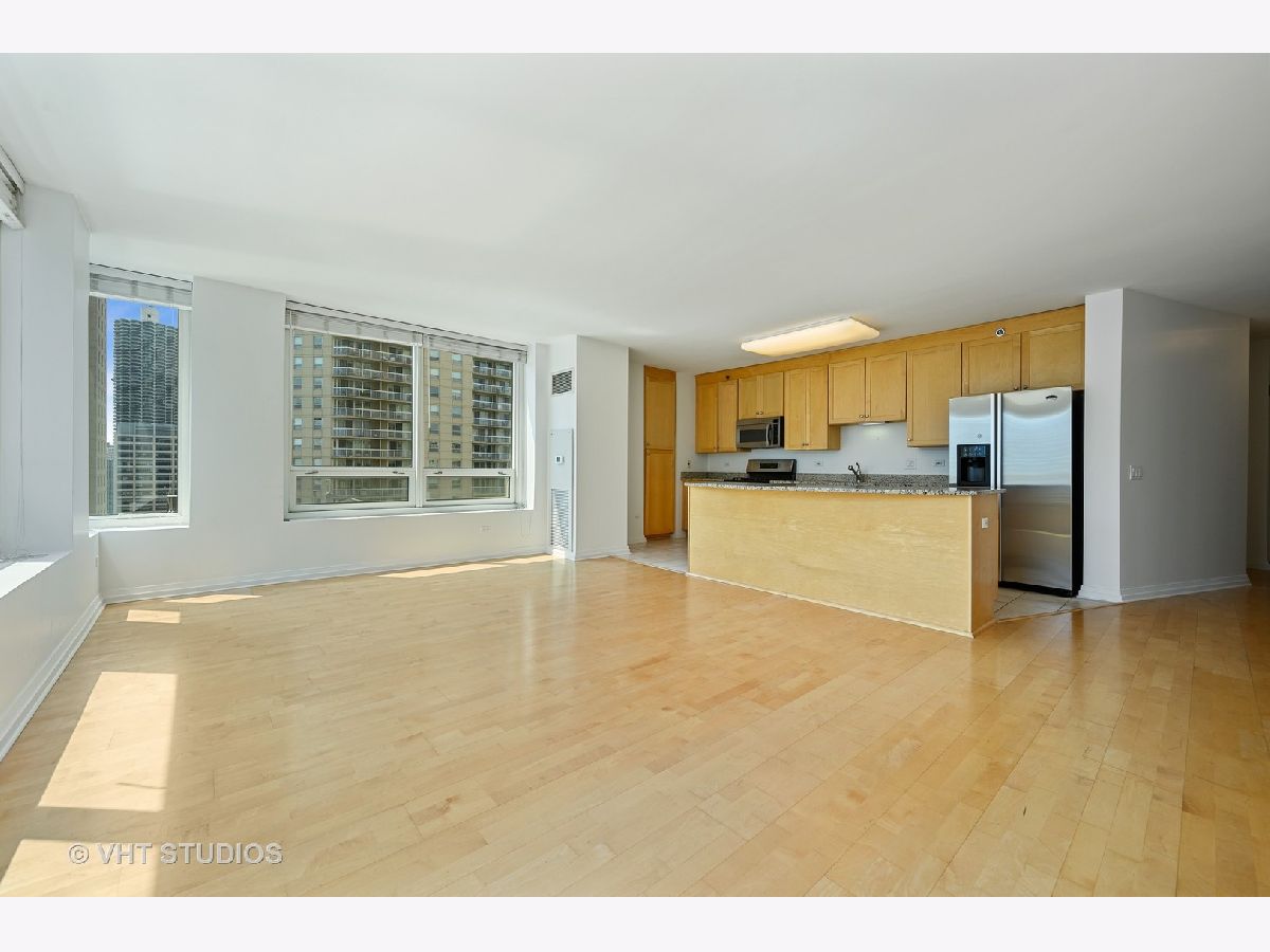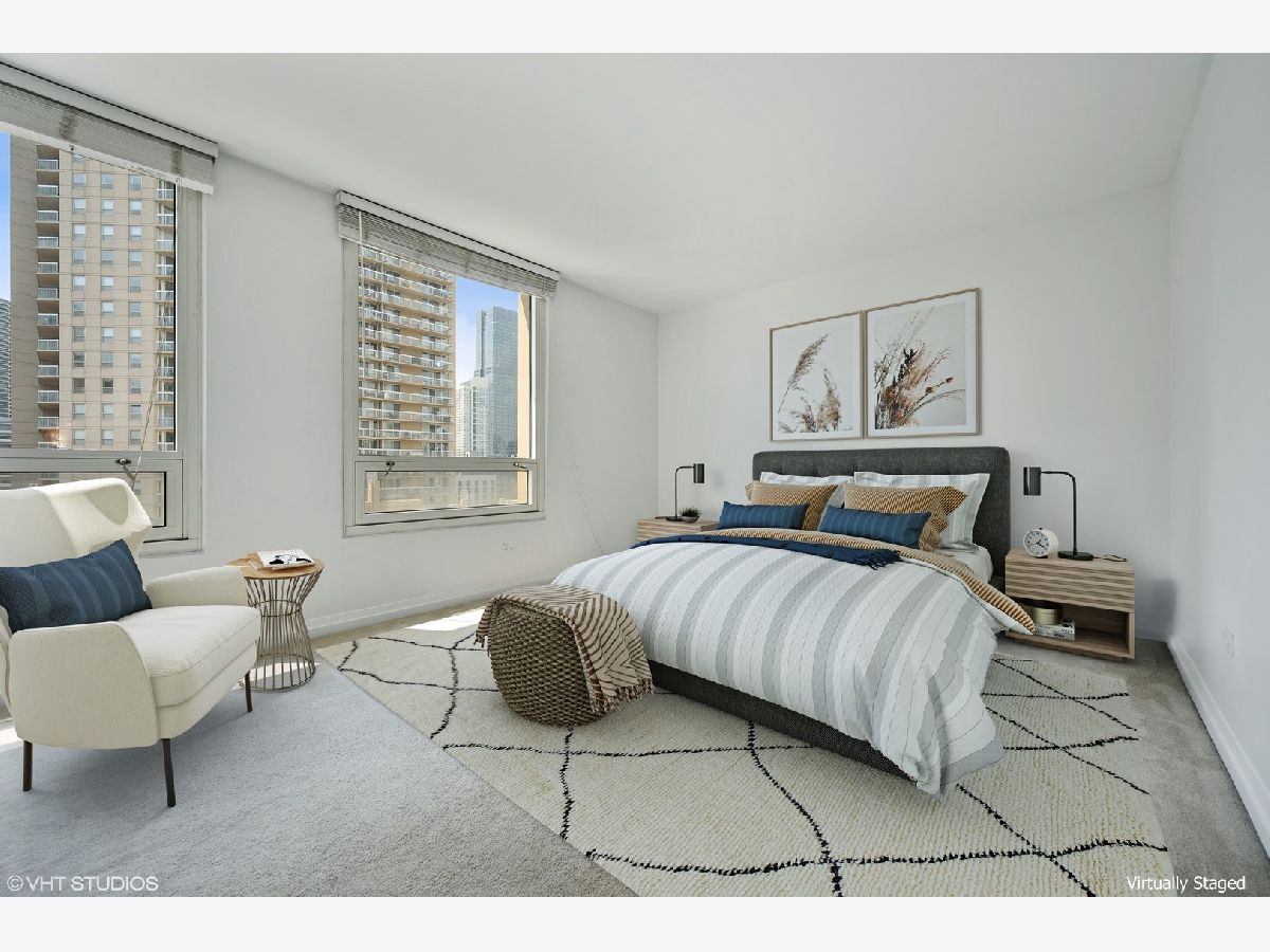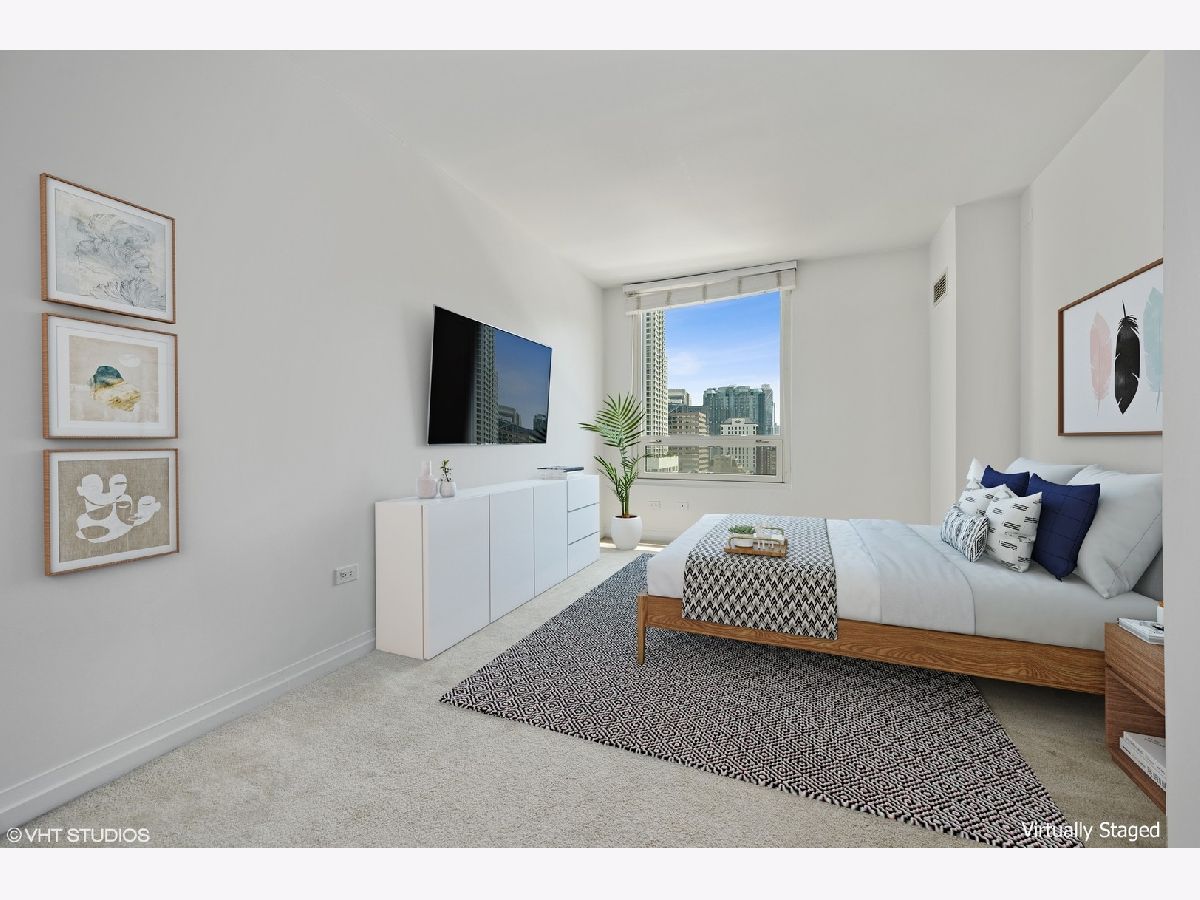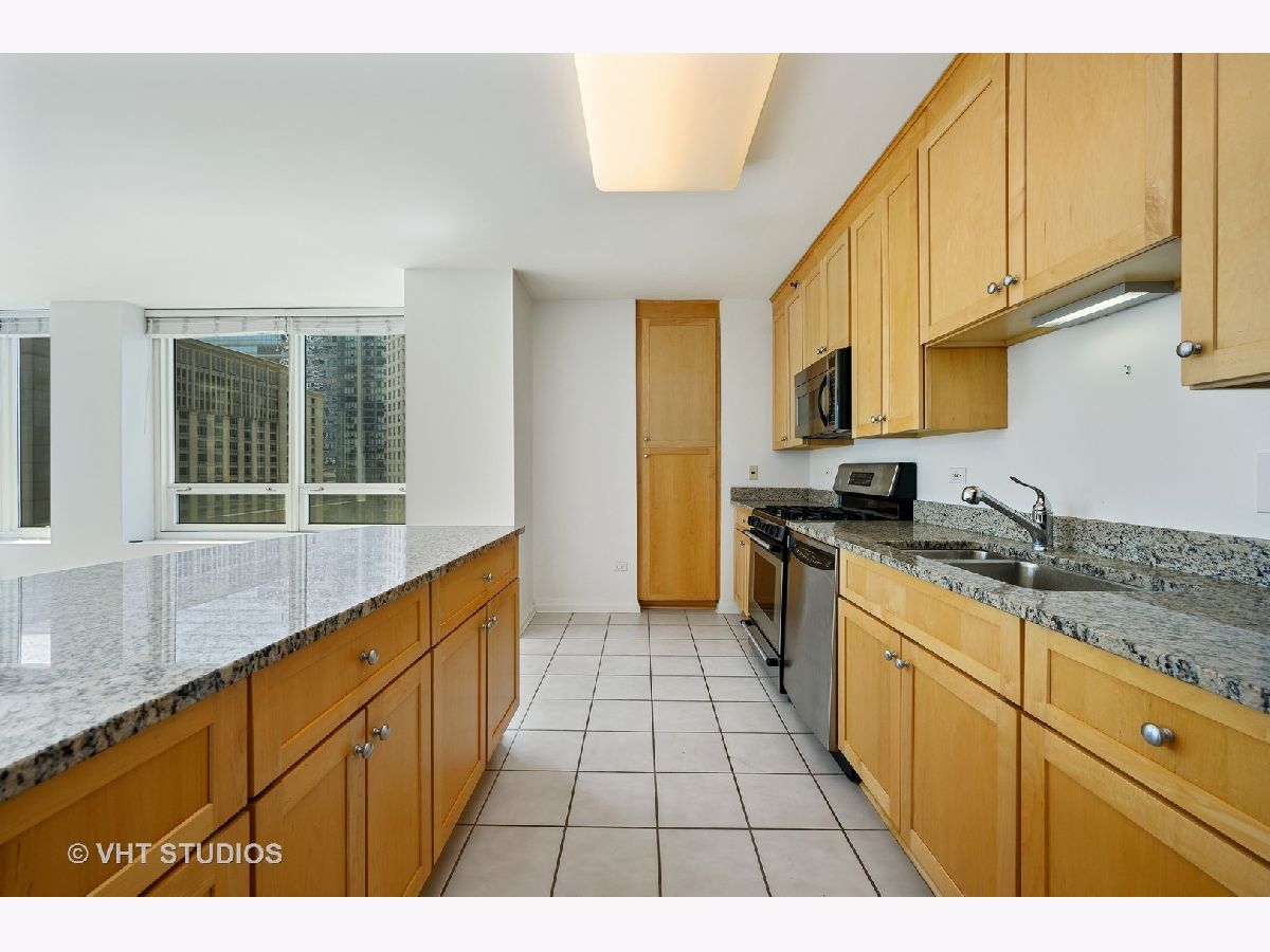 Immediately feel at home in this sunshine filled, spacious and highly desirable CORNER 2 bed/2 bath unit in fantastic full amenity building. Beautiful open city views on 2 sides (east and south). High ceilings and open floor plan. Split bedroom layout. Great for entertaining. Kitchen features stainless appliances, gas stove, granite counters, bonus pantry and huge island/breakfast bar. Large bedrooms, walk-in closet and additional storage unit. In-unit washer and dryer! Building has 24 hour door staff, fitness room, outdoor pool, sundeck/grills, party room and conference room. Enjoy Michigan Avenue shopping, Trader Joe's, Whole Foods, Jewel and delicious restaurants. Close to public transportation. Easy living- come check it out today!