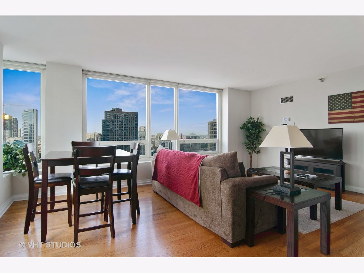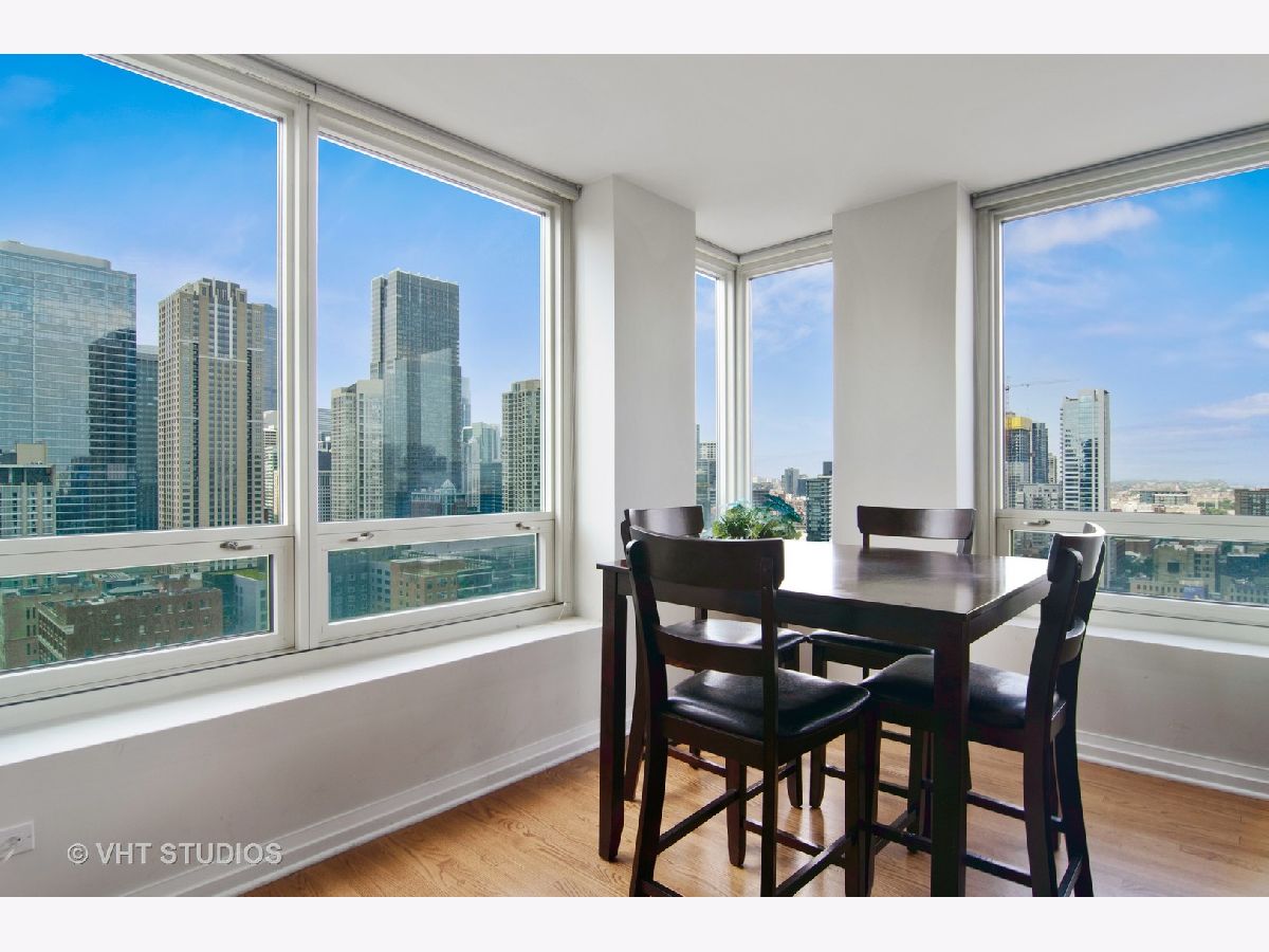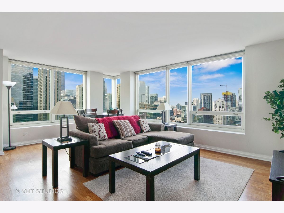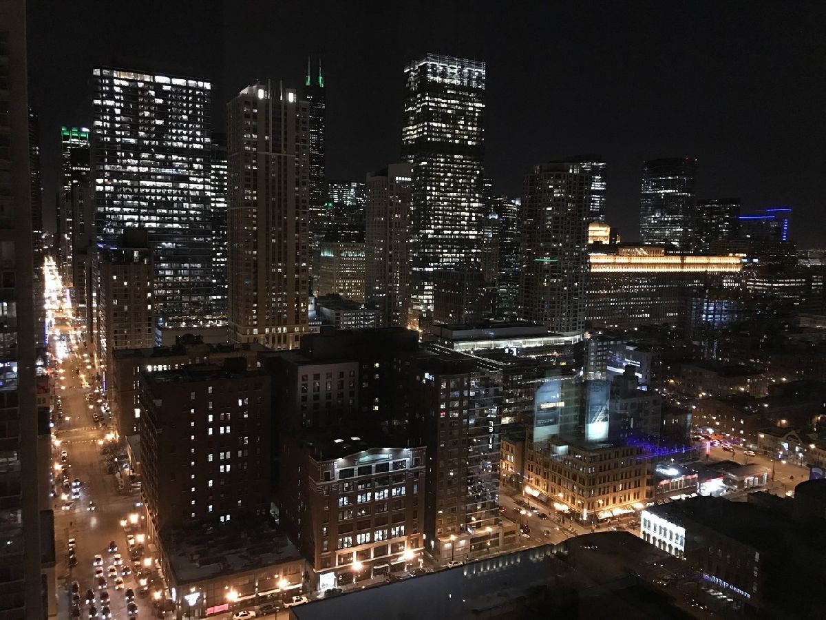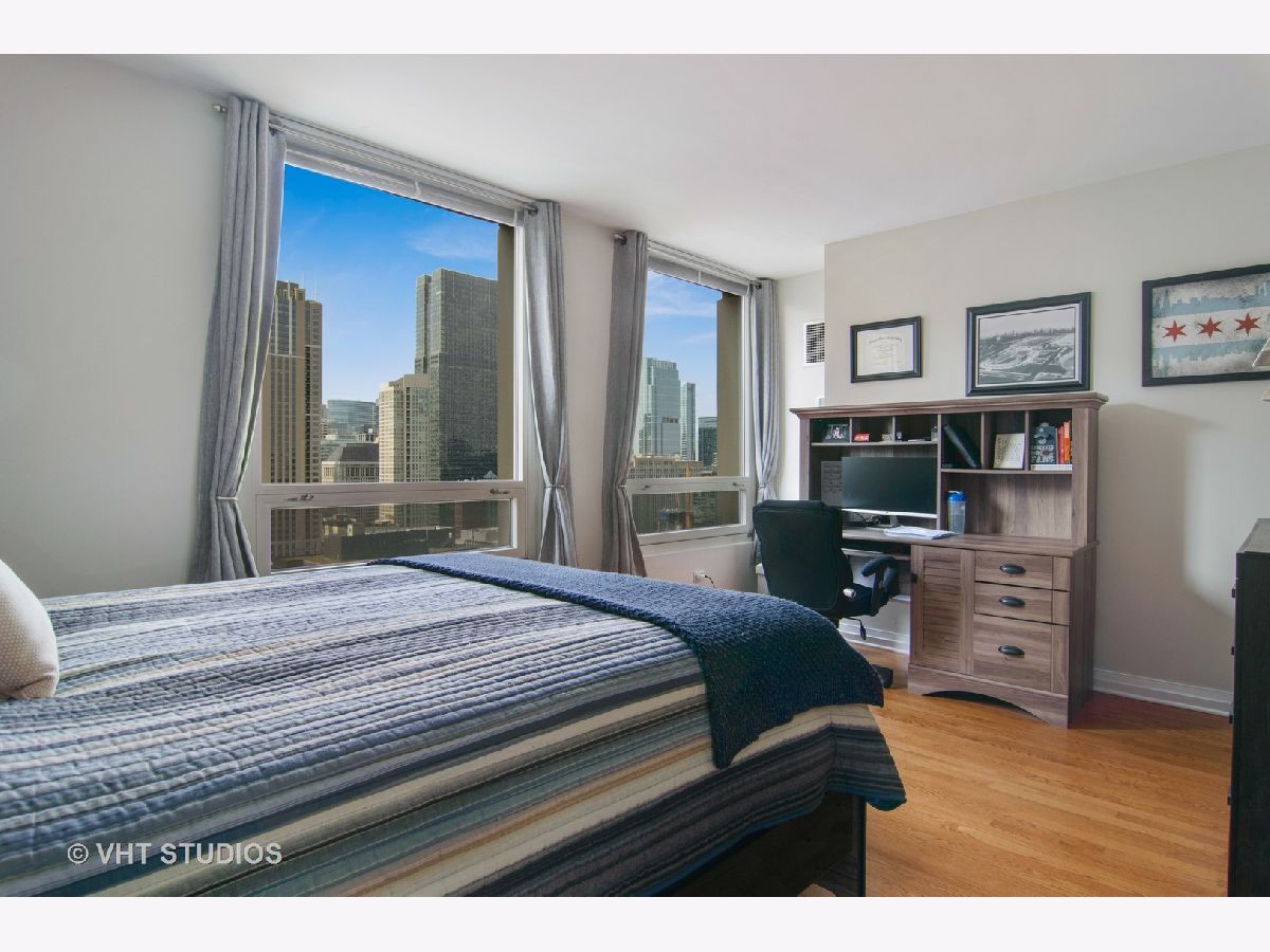 Gorgeous Corner Unit with South West View in the Heart of Downtown Chicago's River North Neighborhood. Daylight Sunshine and Breathtaking Sunsets. Condo Features: Mahogany Wood Entrance Door, Granite Entry Foyer, Hardwood Floors Throughout, Professional-grade Appliances, Granite Countertops, 42" Cherry Wood Cabinets, Garbage Disposal. In-unit Washer / Dryer. Primary Bedroom Has a South View, Plenty of Closet Space, 1 Walk-in Closet & a 2nd Standard Closet. Spacious Guest Bedroom with West View. Split Bedroom Layout. Enjoy the Highest Quality Designer Home with a Full-service Amenity Building Features: Outdoor Pool, Fitness Center, 24hr Door Person, Media Room, Storage & Dry Cleaners, Package In-Unit Delivery Service. All Within Walking Distance to the Best and Finest Chicago Has to Offer. Assessments Include Everything Except Electric. Parking available for an additional price.