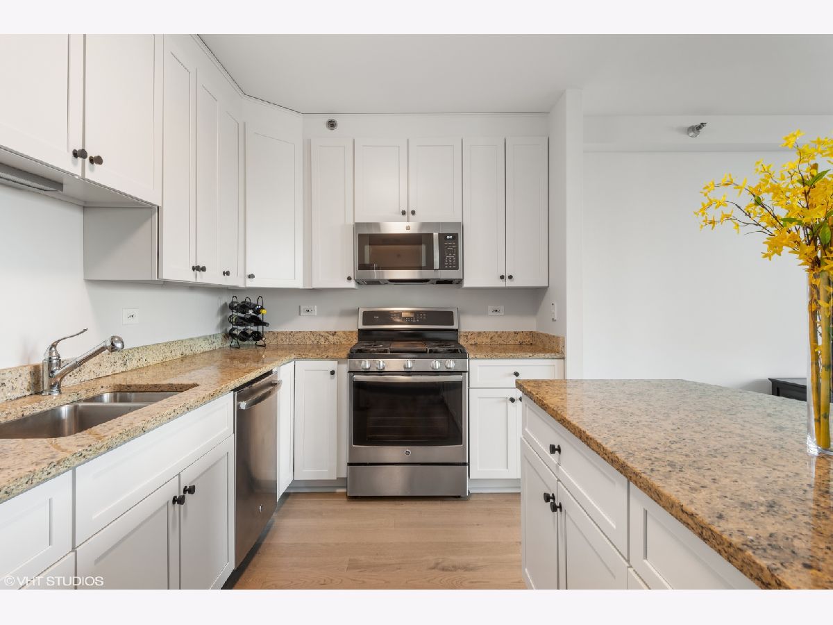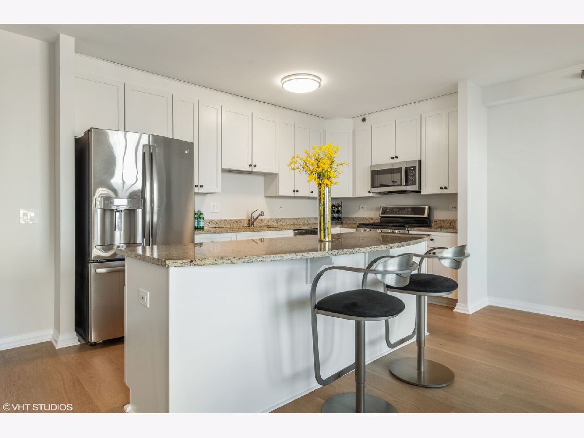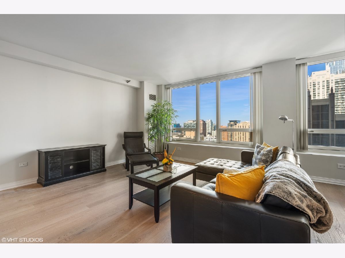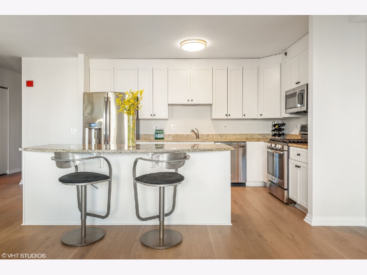 BRAND NEW GORGEOUS RENOVATION LOCATED in the HEART OF RIVER NORTH ! *** BRAND NEW RICH, NATURAL WHITE OAK HARDWOOD FLOORS THROUGHOUT !! ****** HIGH FLOOR, PANORAMIC, UNOBSTRUCTED, CITY VIEWS of ICONIC buildings ! *** OPEN KITCHEN is perfect for ENTERTAINING, with HUGE GRANITE ISLAND & GRANITE COUNTER TOPS, 42" PRISTINE/RENEWED WHITE CABINETS ARE TIMELESS - SOFT CLOSE WITH ITALIAN HARDWARE; NEWER STAINLESS STEEL APPLIANCES. OPEN FLOOR PLAN, with GENEROUS ROOM SIZES with OVER SIZED WINDOWS providing great NATURAL LIGHT and CITY VIEWS from every room. This MOVE-IN READY home is FRESHLY PAINTED ! SPACIOUS MASTER BEDROOM SUITE with HUGE WALK-IN CLOSET plus additional REACH IN CLOSET & LINEN CLOSET. EN-SUITE MASTER BATH with DOUBLE VANITY and OVERSIZED SOAKING TUB. Newer IN-UNIT FULL SIZE FRONT LOADING WASHER/DRYER, HIGH 9 foot CEILINGS, custom LIGHTING, tons of closet space. Exceptionally managed, FULL SERVICE and FULL AMENITY building with 24-HOUR DOORMAN, FITNESS CENTER, POOL/SUNDECK WITH GAS GRILLS, CONFERENCE & PARTY ROOMS, receiving room with PACKAGE DELIVERY SERVICE TO YOUR DOOR. Assessment INCLUDES HEAT/AC, GAS, STORAGE CAGE, BUILDING AMENITIES. Truly an A+ RIVER NORTH LOCATION is STEPS TO MICHIGAN AVE/ LAKEFRONT/ RIVER WALK/ LOOP/ 3 GROCERIES/ TRANSPORTATION/ RESTAURANTS. STRONG BUILDING RESERVES and no rental cap in place. GARAGE PARKING SPACE available for additional.
